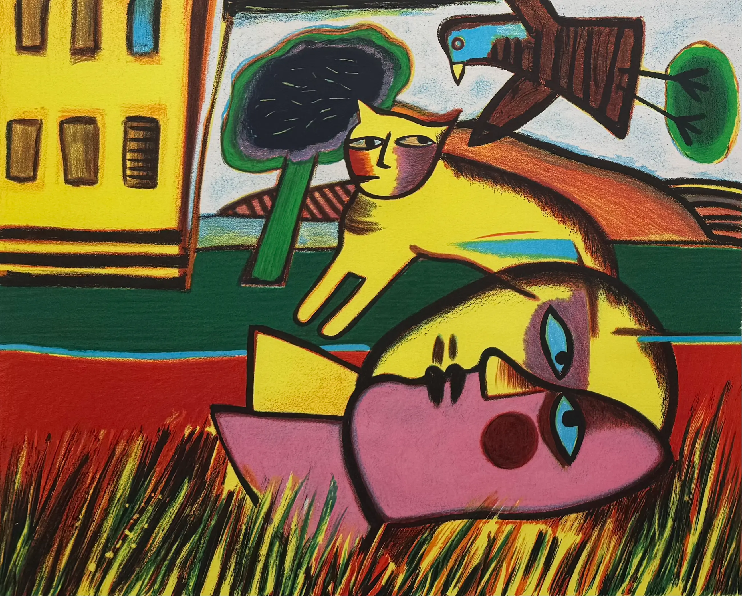 Corneille - handgesigneerde kleurenlitho | 'La maison jaune' | 2002 (INGELIJST)