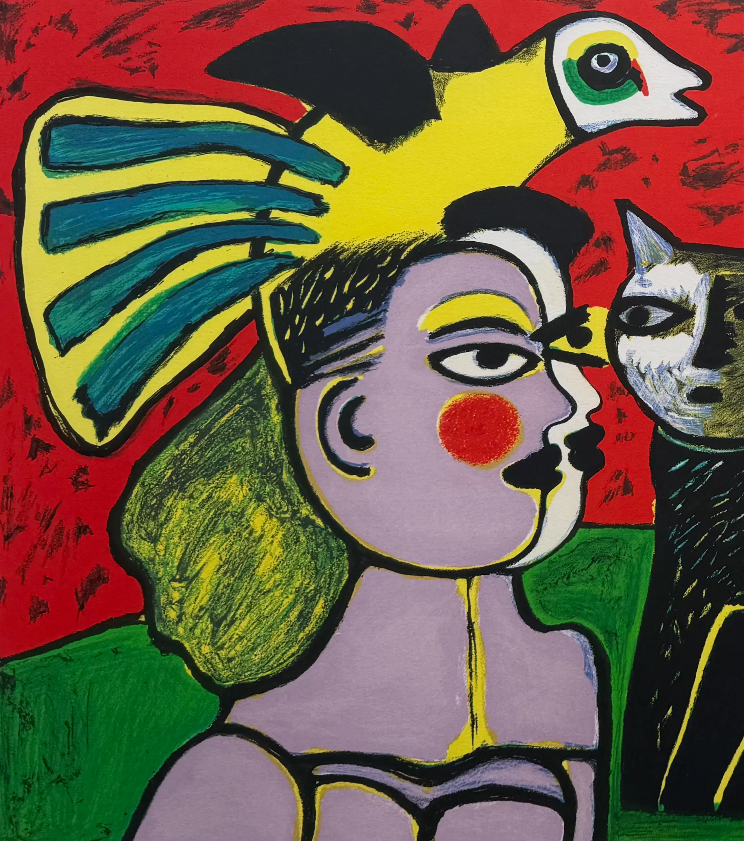 Typische beeldelementen die Corneille vaak gebruikte. Mooi van compositie en van kleur.