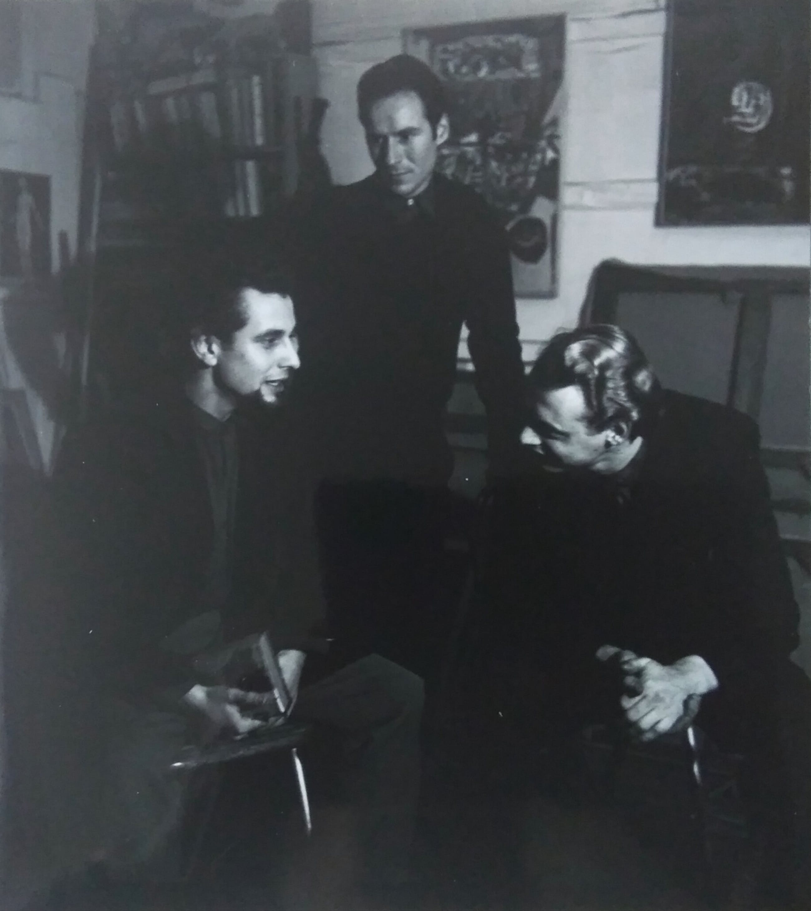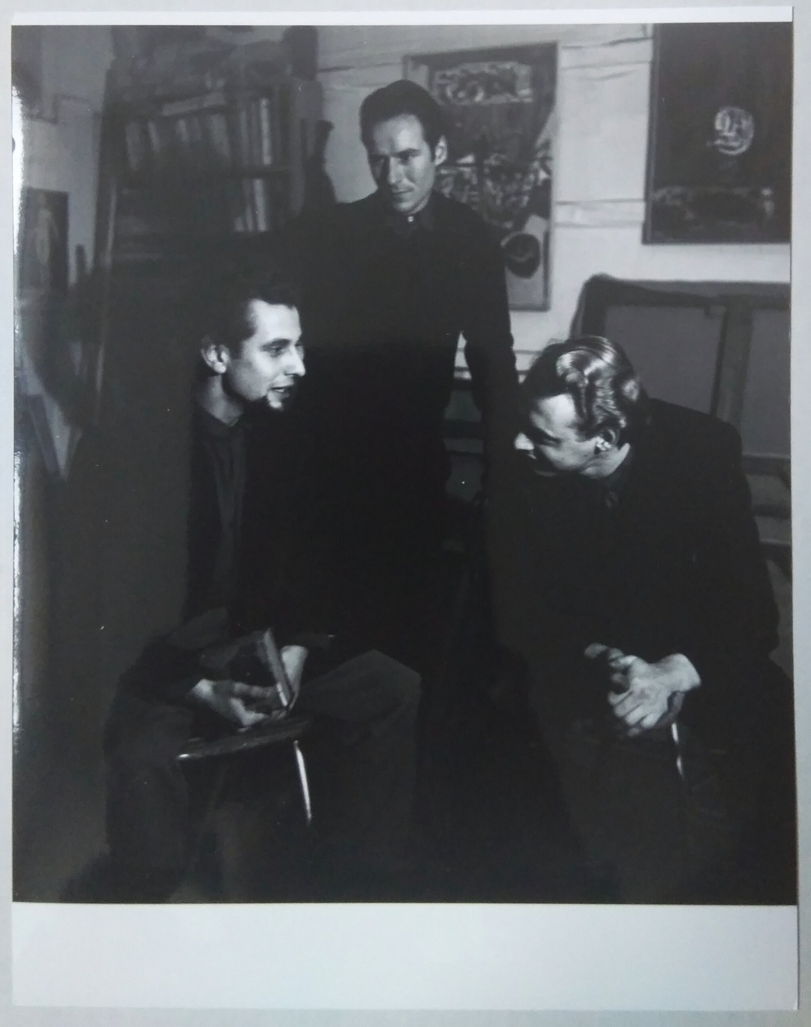 Henny Riemens Fotograaf. Fotoportret Corneille en Simon Vinkenoog (3e persoon helaas onduidelijk) Afmetingen 24 x 30,5 cm. Zeer redelijke staat. Vintage afdruk jaren 90.