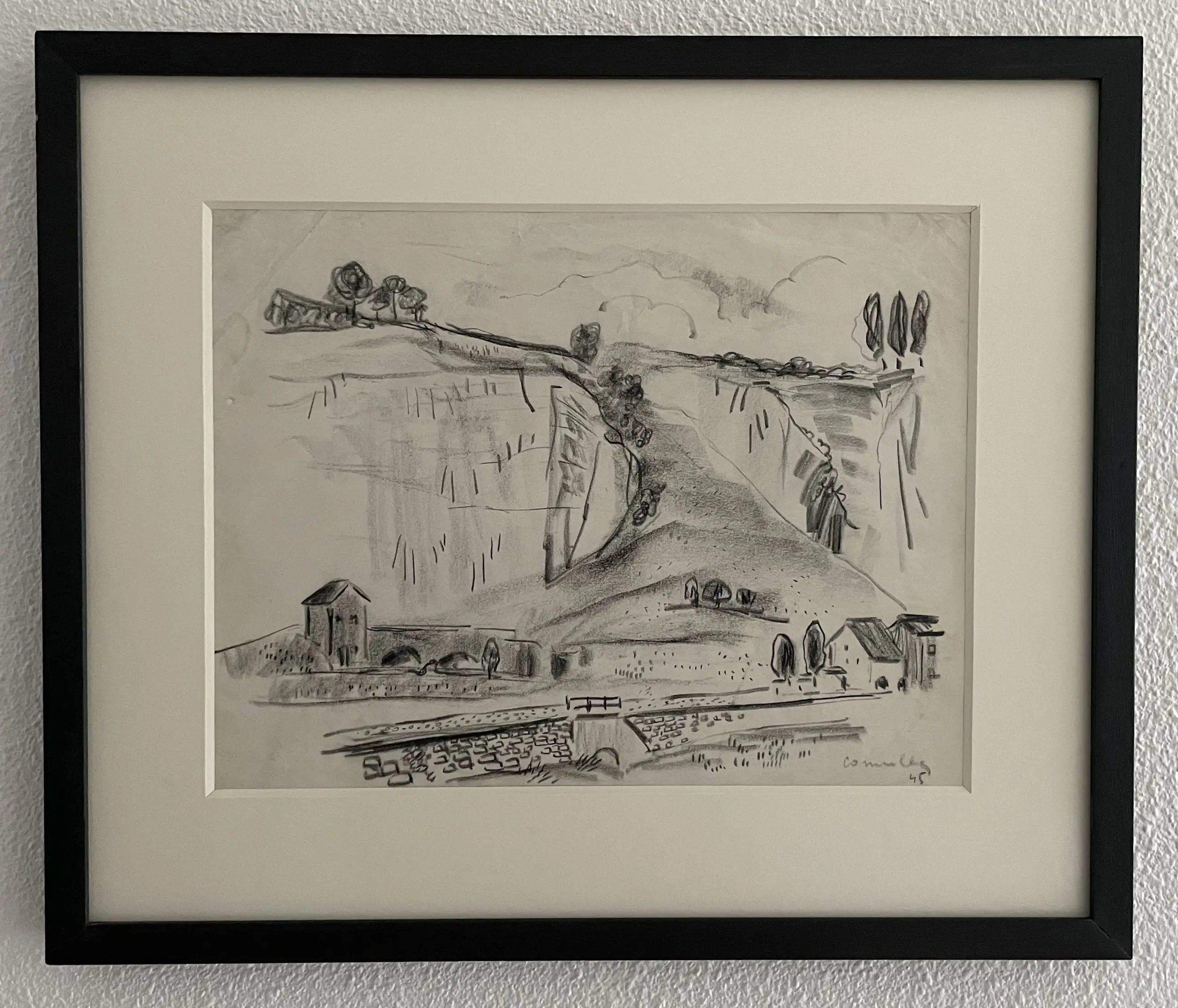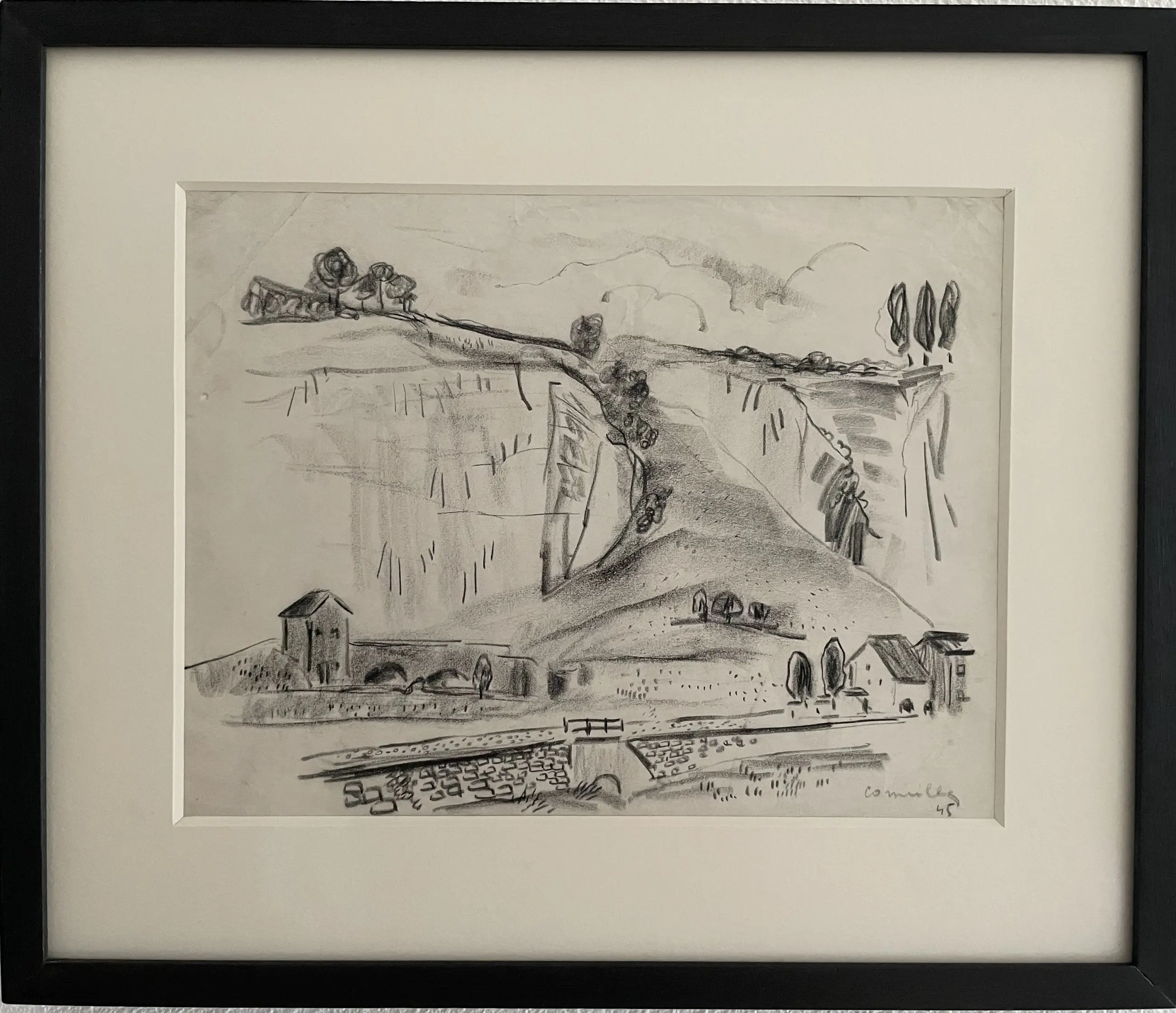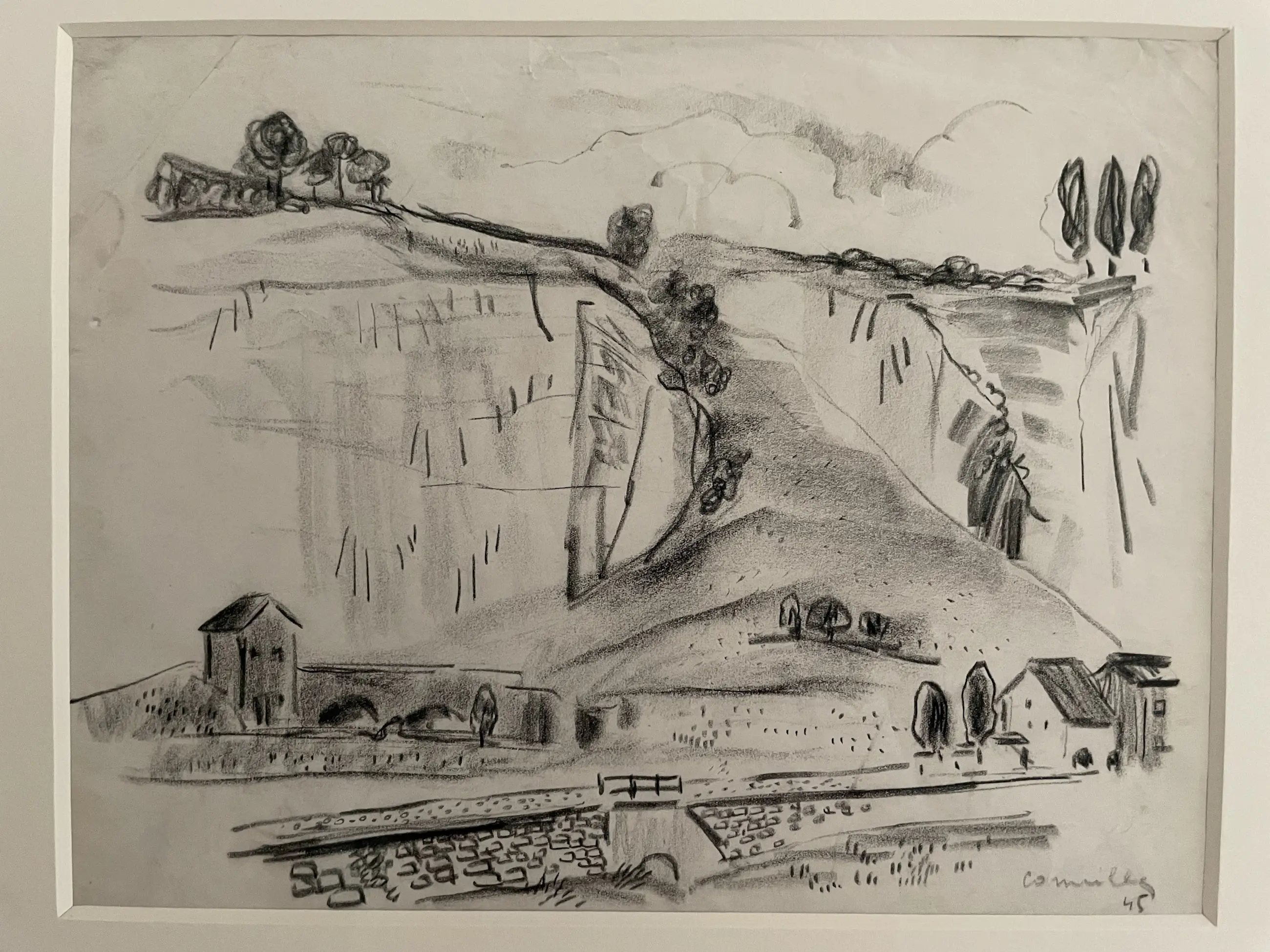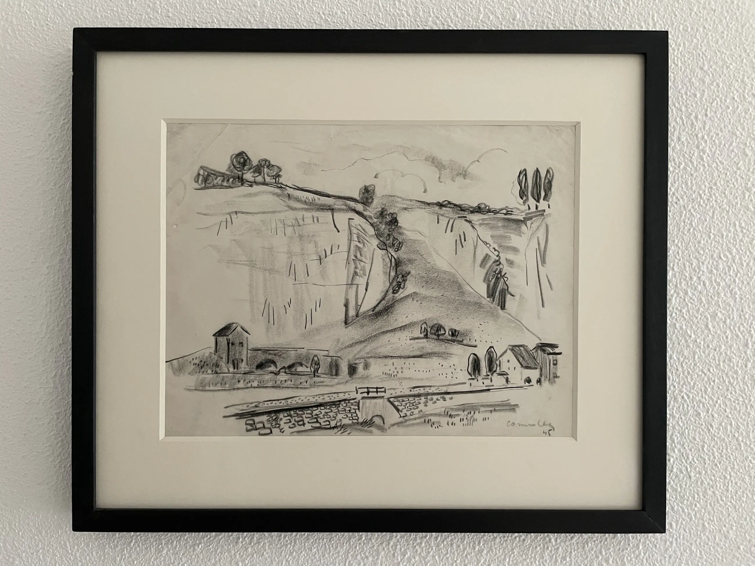 Eventuele verzending zou aangetekend en met (extra) verzekering plaats vinden. Wel op risico van de koper. Direct na de oorlog ging Corneille samen met zijn vriend Karel Appel die hij had leren kennen aan de rijksacademie in Amsterdam terug naar zijn geboorte streek Luik waar hij verschillende plekken uit zijn jeugd bezoekt. Hiervan maakt Corneille dan verschillende “stadsgezichten en landschappen” tekeningen waaronder dit werk. Nadat Corneille en Karel Appel in 1946 weer terug zijn in Amsterdam gaf Corneille na eerst een solotentoonstelling te hebben gegeven samen met Karel Appel een expositie.