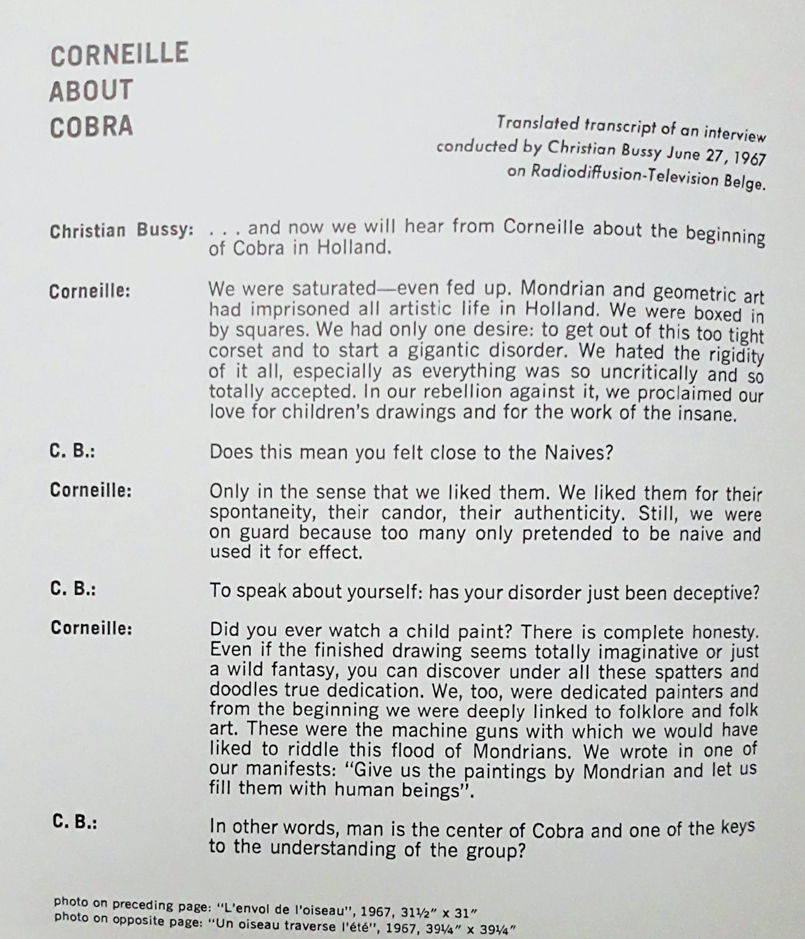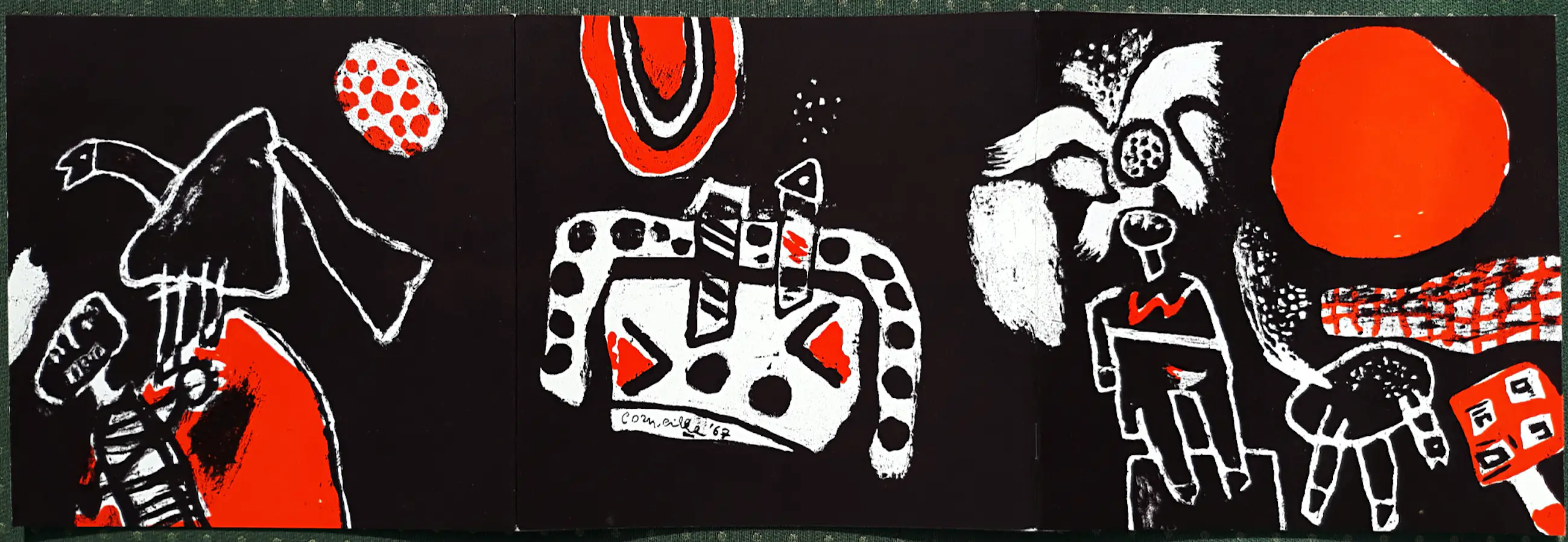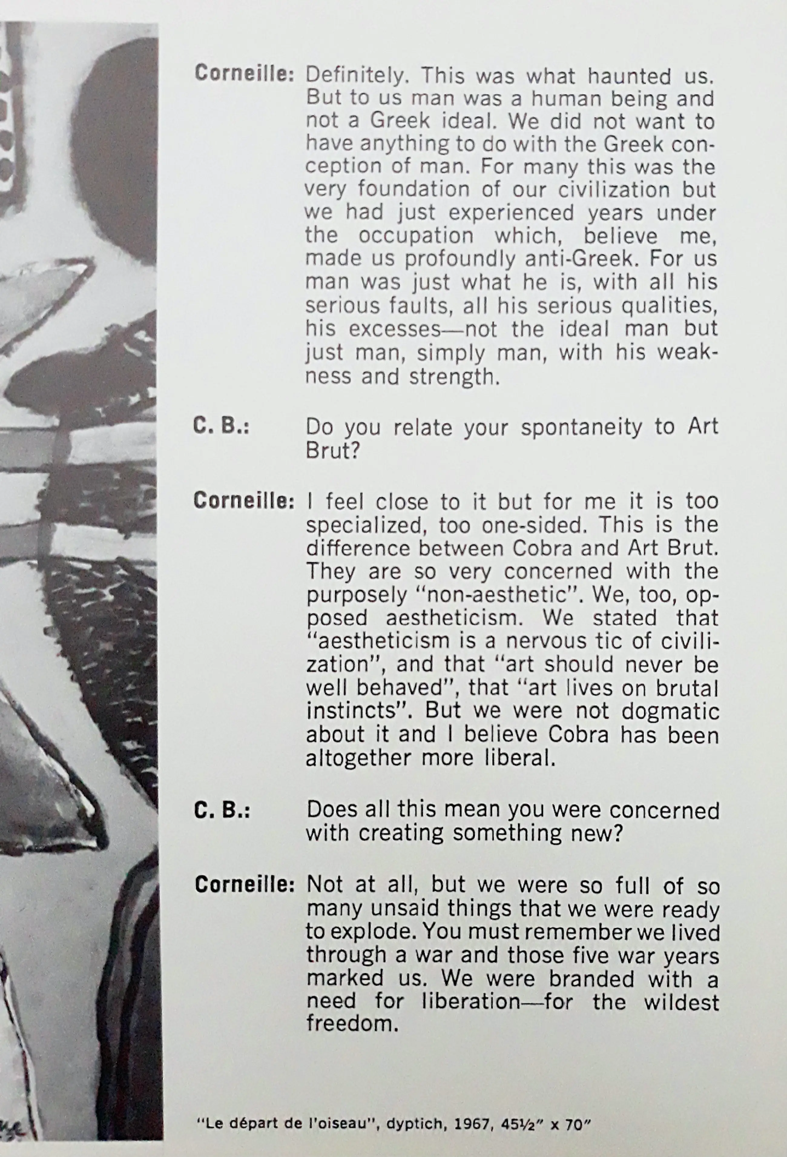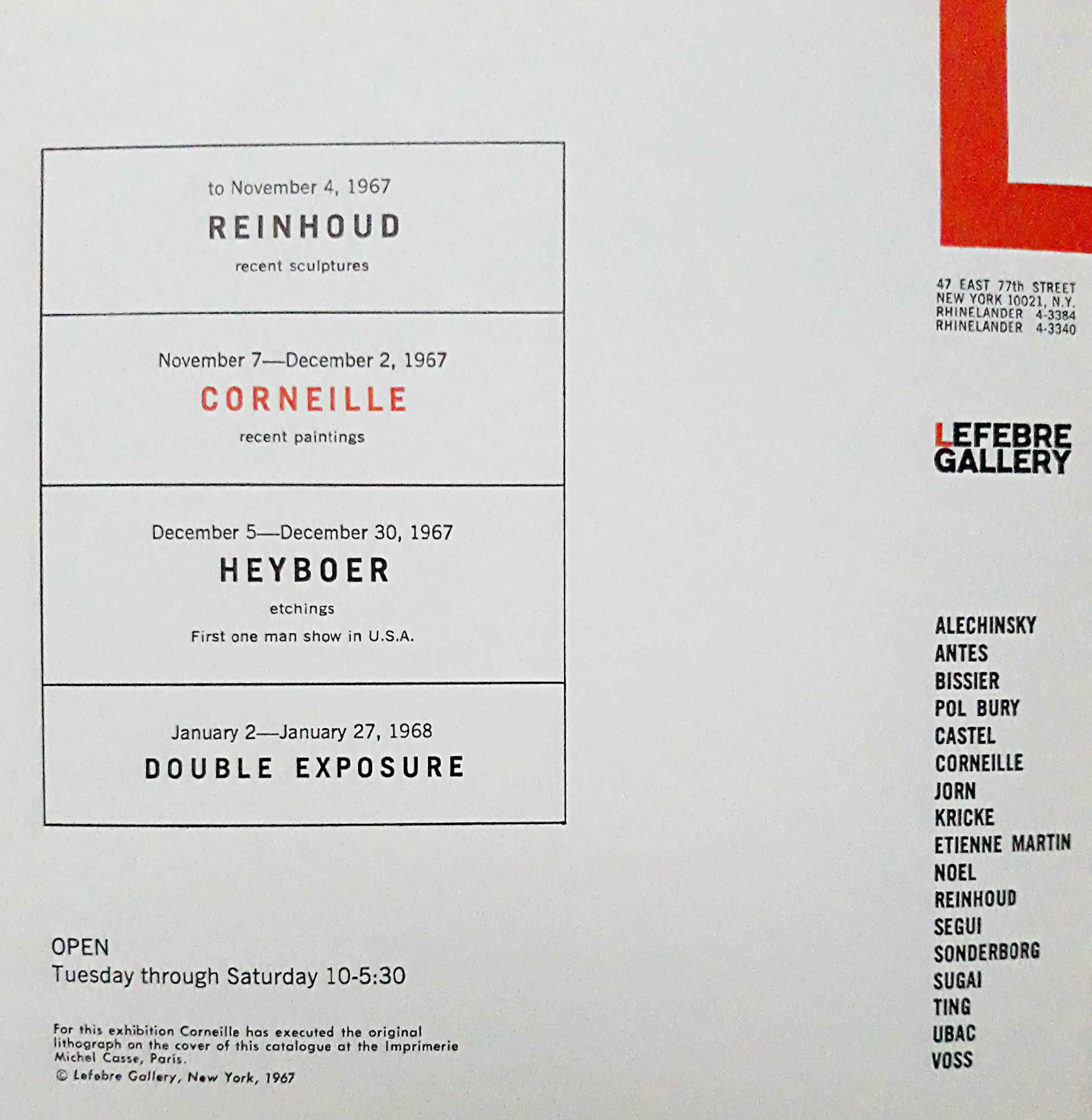 Complete publicatie met een uitklapbare litho ter gelegenheid van een expositie met recent werk in Galerie Lefebre (New York). Met een korte interview tekst van Corneille in gesprek met Christian Bussy. In uitstekende conditie. Literatuur: Donkersloot 199 (voetnoot)