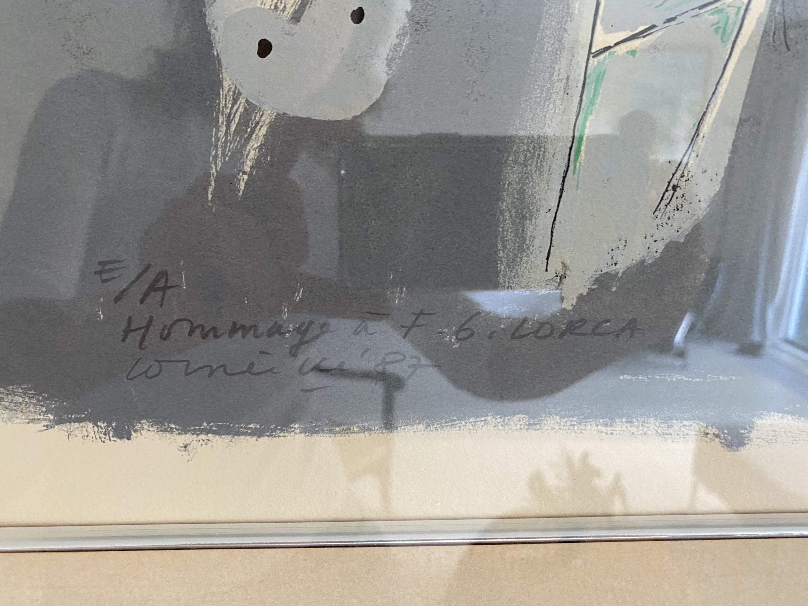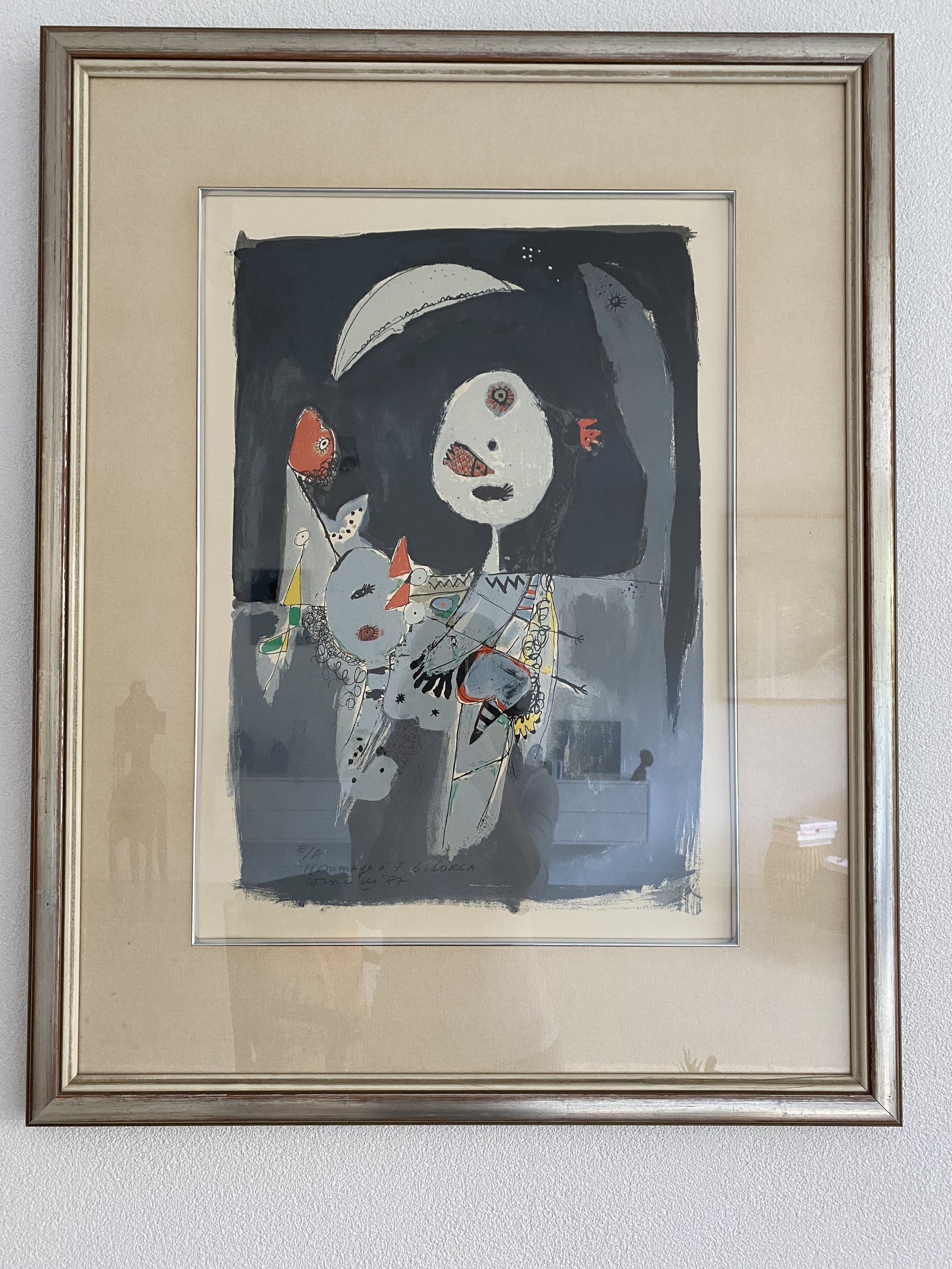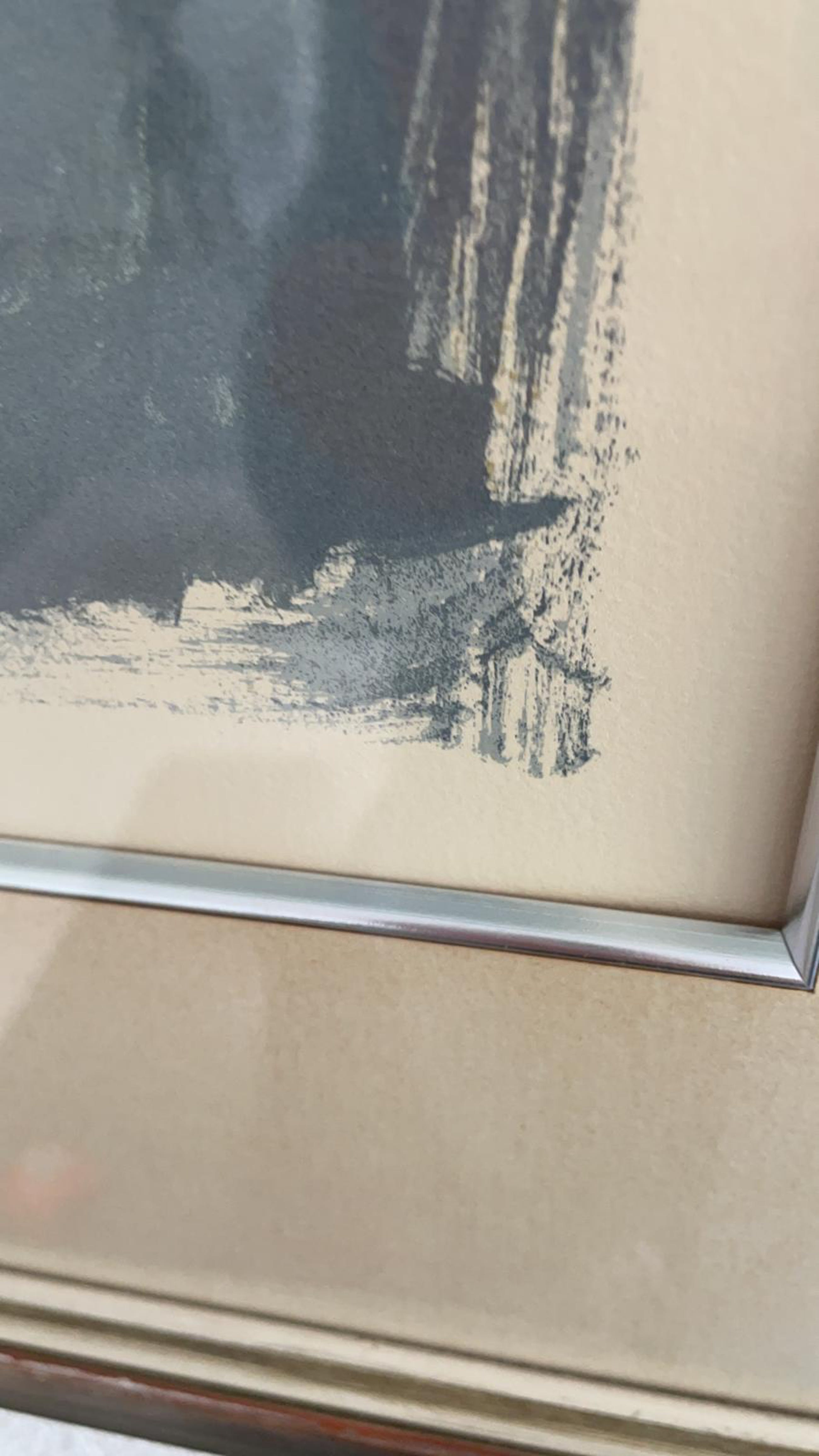 Mooie litho in zeer goede staat. Passepartout heeft een zilveren randje, goed passend bij de kleuren van de litho en de lijst.