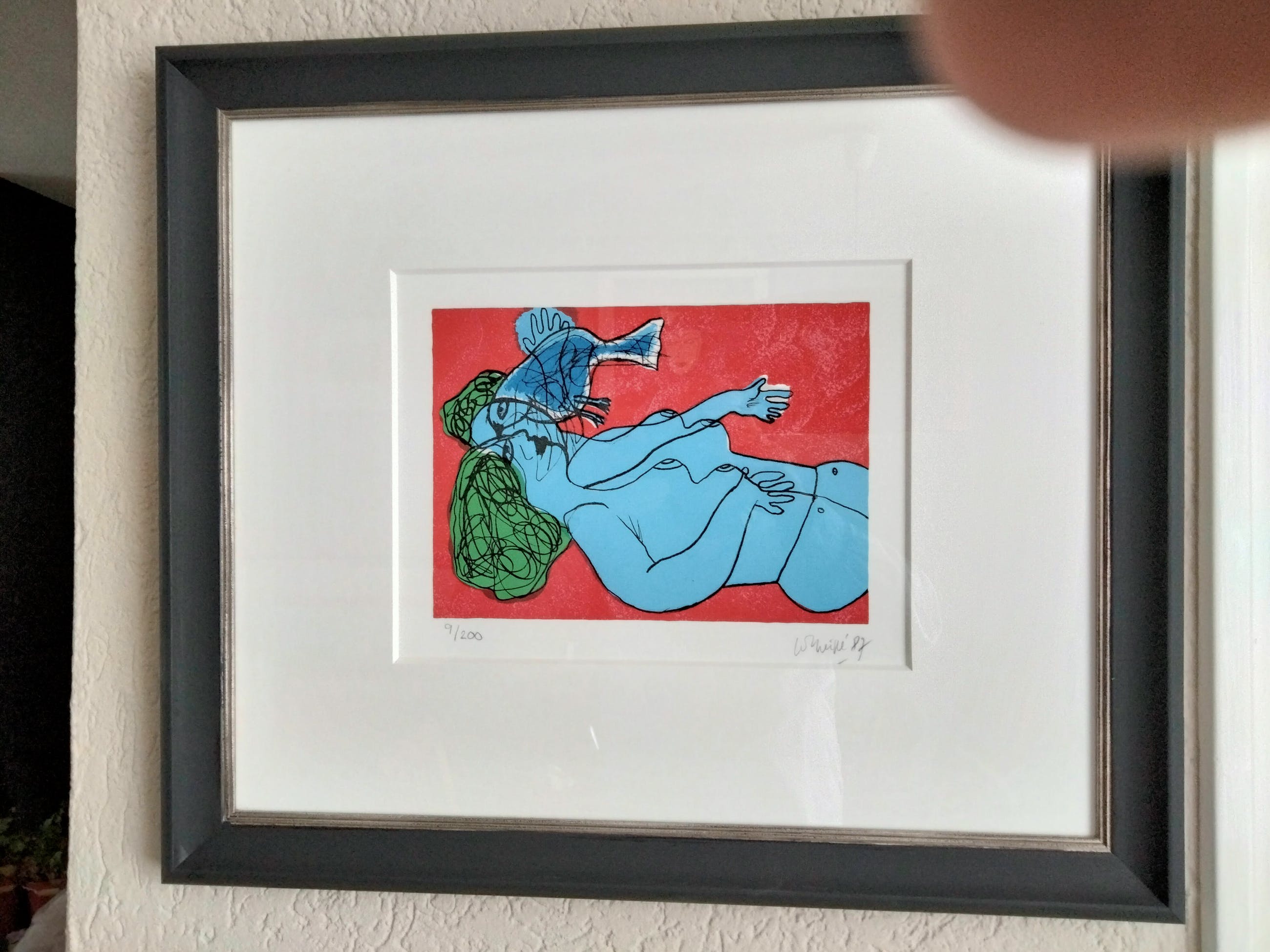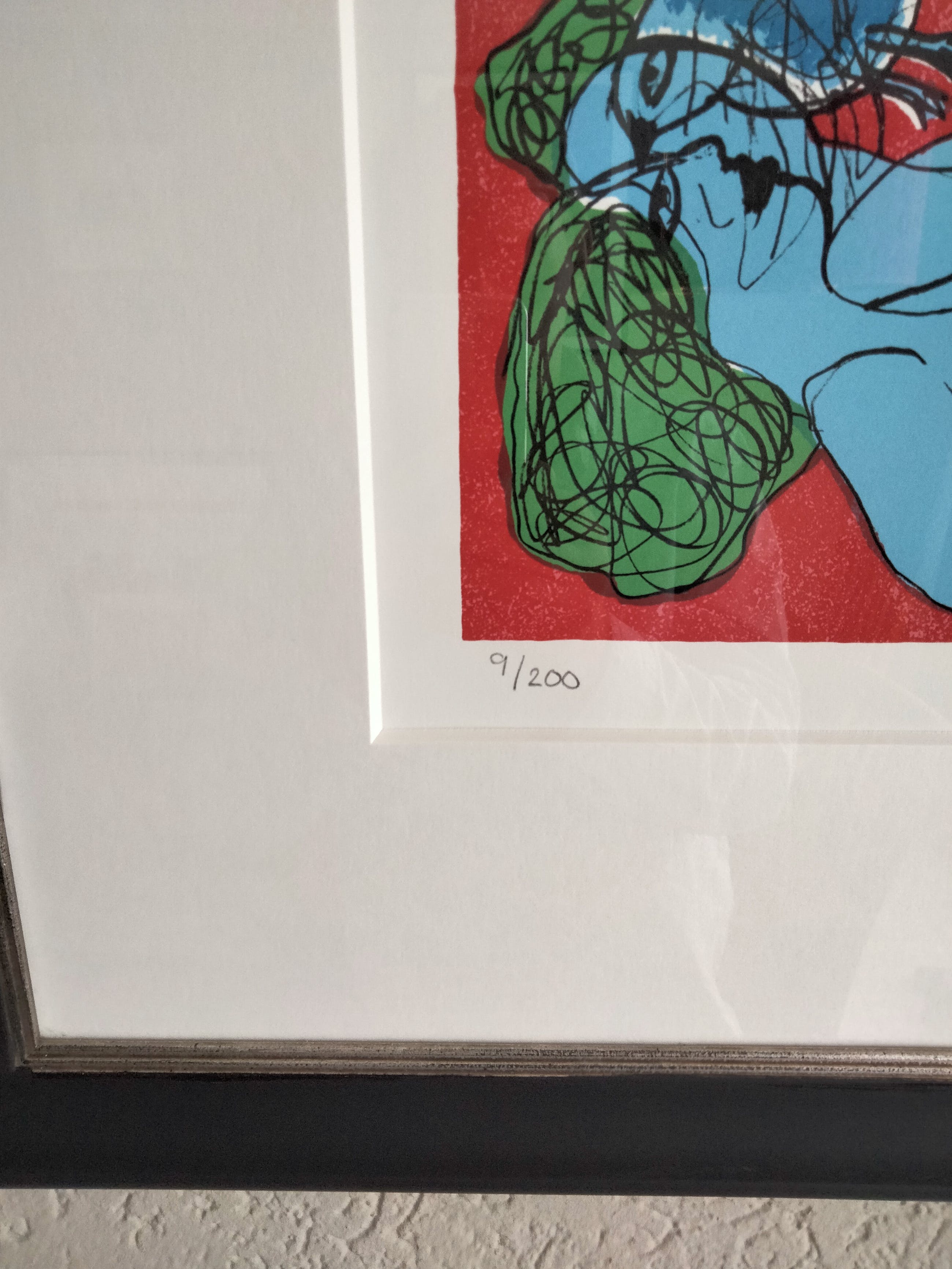 Fraaie zeefdruk uit de portofolio:Hymne a la ete uit 1987 Oplage nummer:9/200 Uiteraard potlood gesigneerd,gedateerd en genummerd door Corneille Zeer mooi ingelijst met dikke passe partout Ophang klaar.