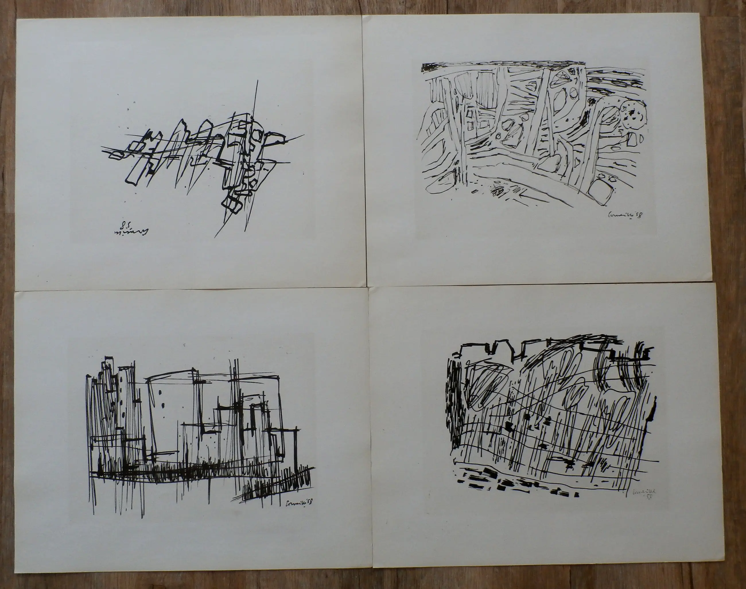 16 litho's uit de map "Images de New York" van Corneille uit 1958. De totale oplage was 80 stuks. Het voorblad uit deze map is niet aanwezig. Het betreft alleen de 16 litho's en de blauwe map. De litho's zijn allen in de druk gesigneerd, zoals uitgegeven.Literatuur: Donkersloot, blz 87 t/m 90. Nummer 56 t/m 71.De verzendkosten zijn iets hoger i.v.m. het te verzekeren bedrag bij verzending.
