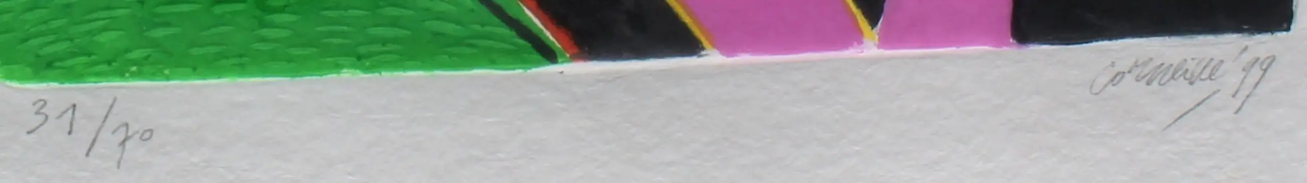 Ingelijste aquagravure van Corneille uit 1999. Oplage: 31/70. Afmetingen incl lijst: H101 x b114cm. Afmetingen voorstelling: H33 x b44cm. Het werk is rechts onder gesigneerd en gedateerd door de kunstenaar. De authenticiteit van dit werk wordt volledig gegarandeerd. Een certificaat kan, op aanvraag, worden gemaild.