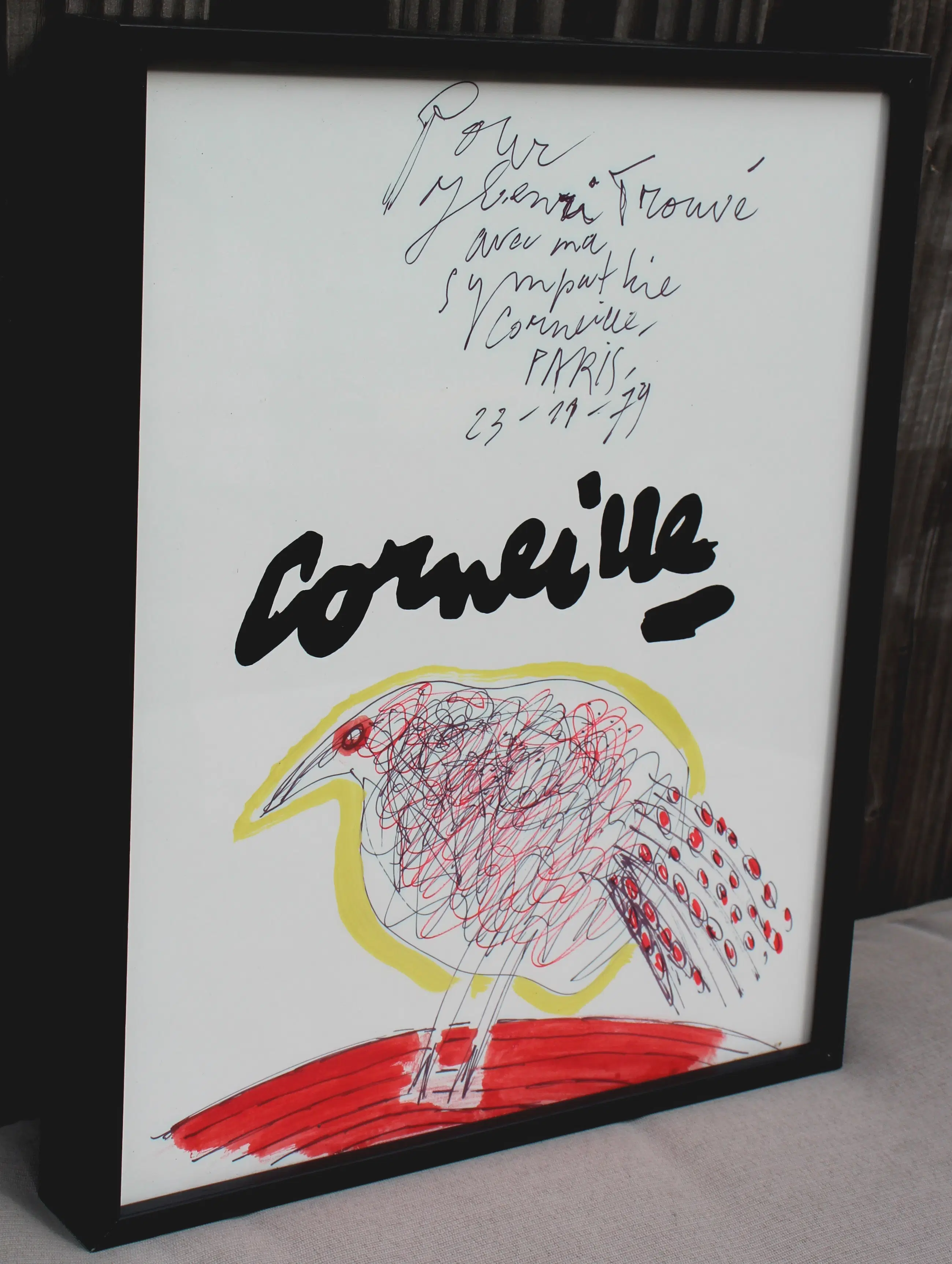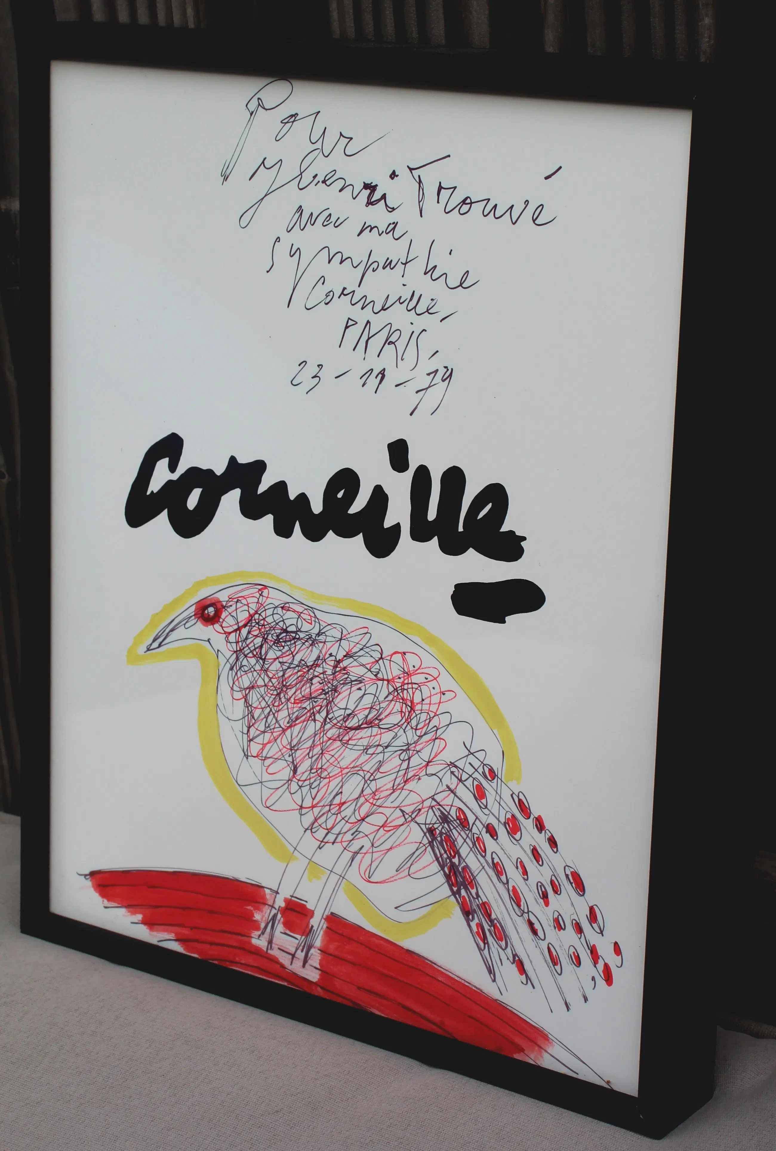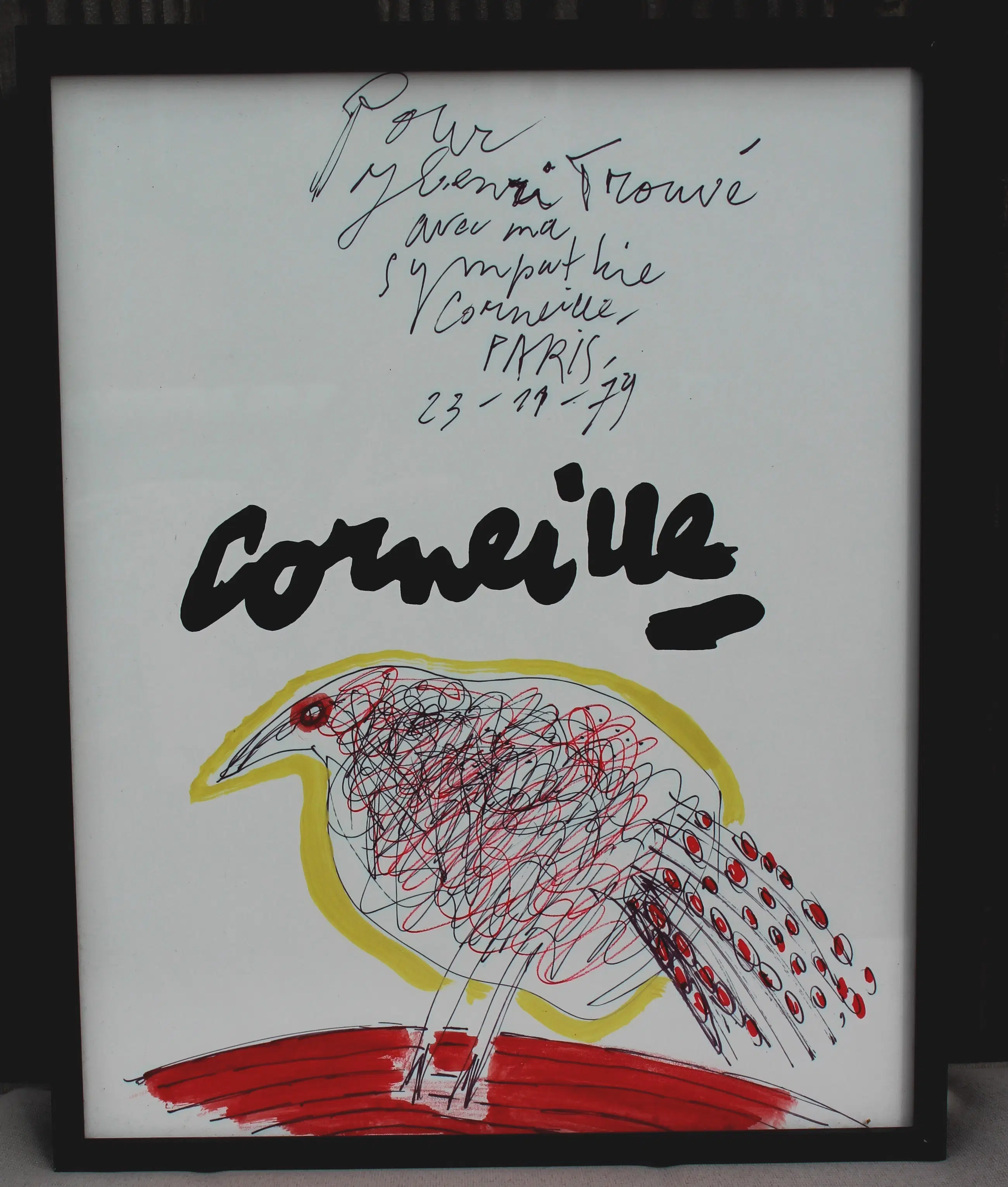 Ingelijste gemengde techniek, van Corneille uit 1979. Afmetingen incl lijst: H31 x b25cm. Afmetingen voorstelling: H29 x b22cm. Het werk is, in het midden, gesigneerd door de kunstenaar met stift. De authenticiteit van het aangeboden werk wordt volledig gegarandeerd. Een certificaat van echtheid kan, op aanvraag, worden gemaild.