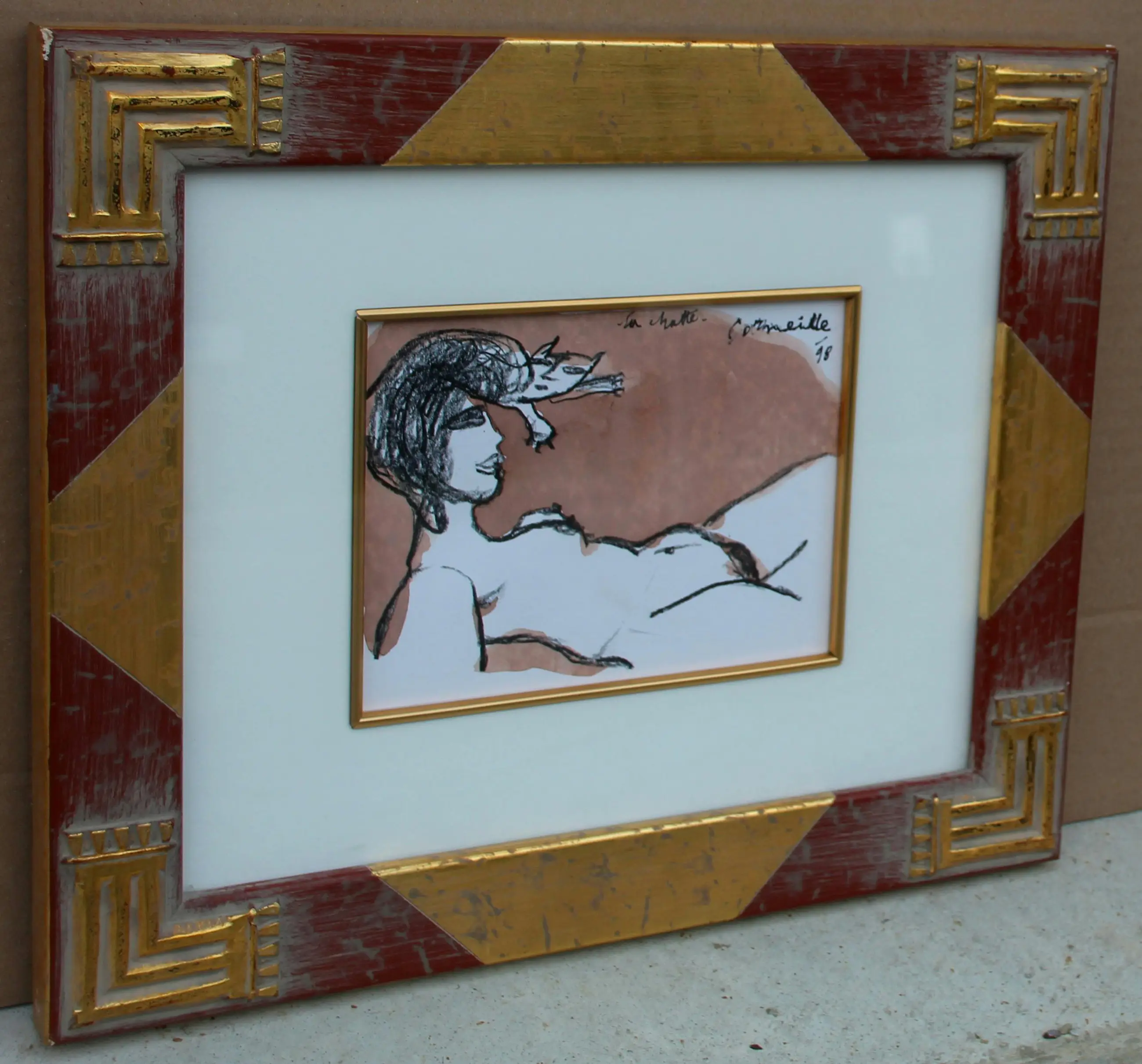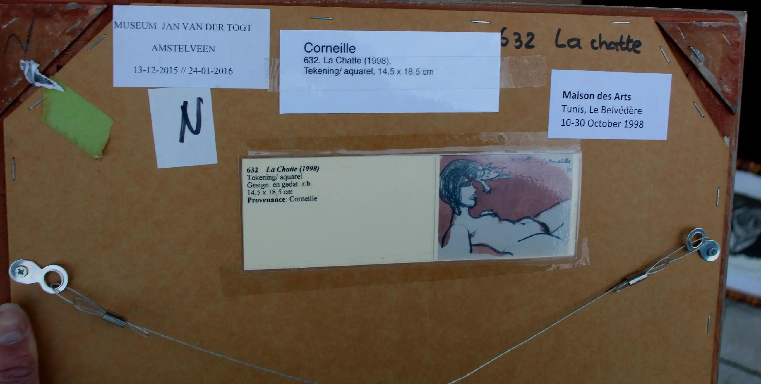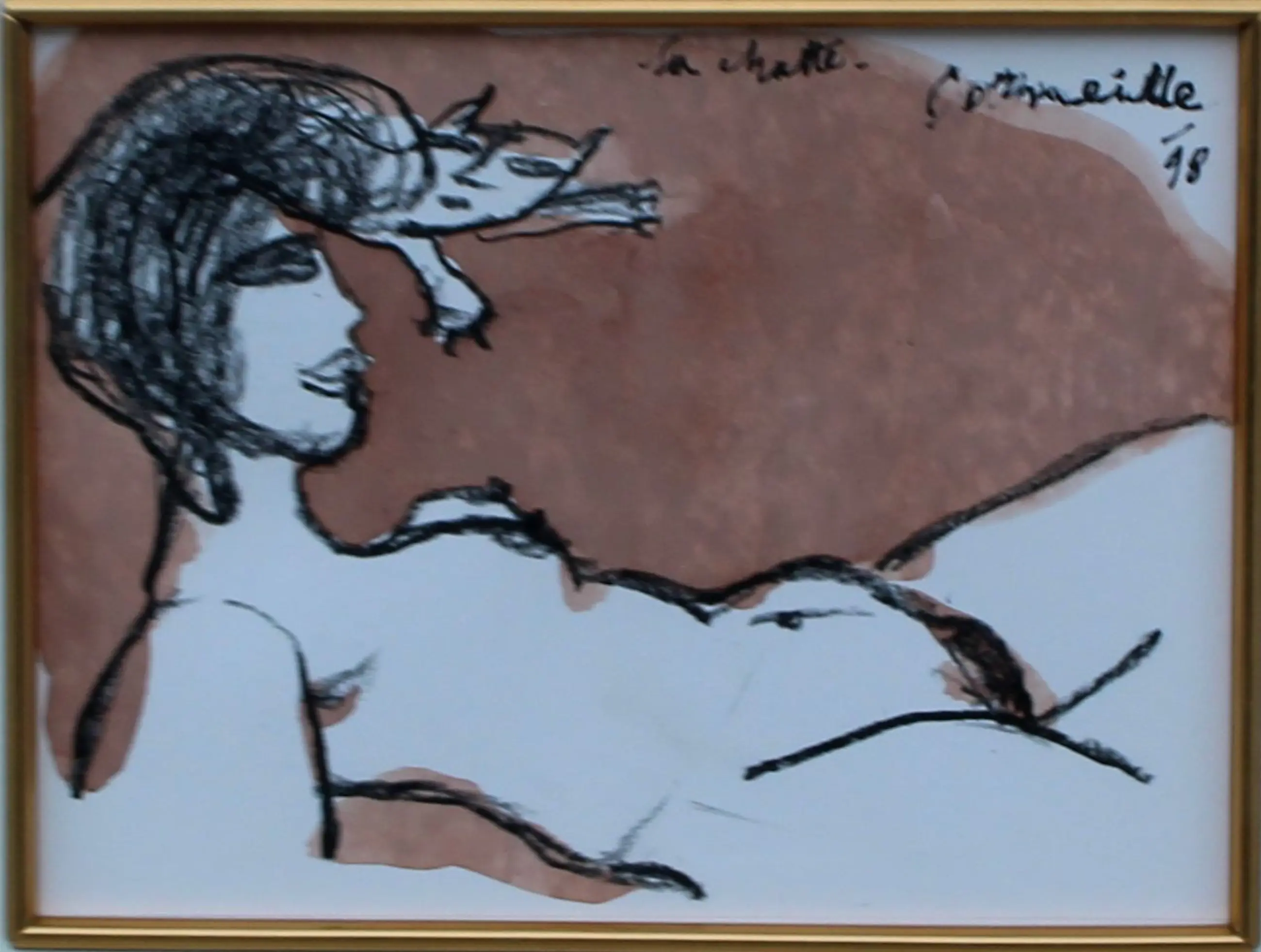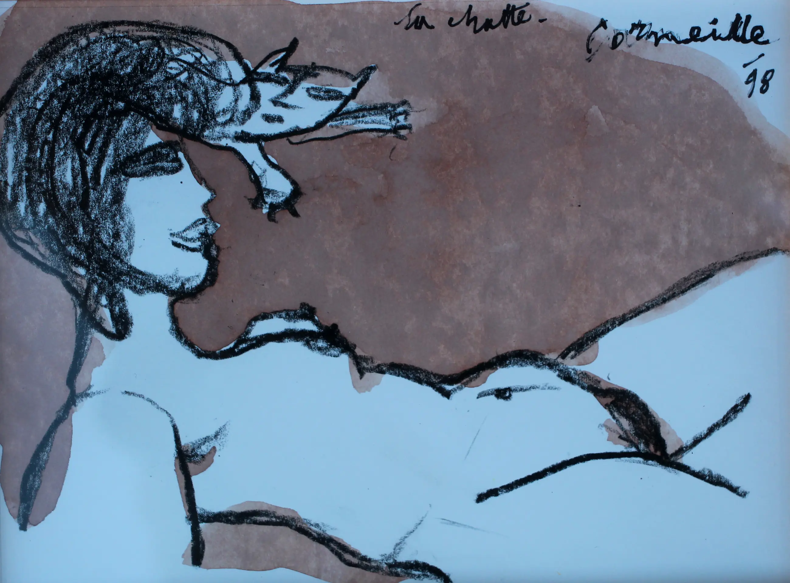 Ingelijste tekening/aquarel op papier van Corneille. Titel: La chatte. Jaar: 1998. Afmetingen incl lijst: H31 x b37cm. Afmetingen voorstelling: H13.5 x b17cm. Het werk is rechts onderaan, gesigneerd en gedateerd door de kunstenaar. De authenticiteit van het aangeboden werk wordt volledig gegarandeerd. Een certificaat van echtheid kan, op aanvraag, worden gemaild. Herkomst: collectie kunsthandel Elisabeth den Bieman de Haas, Amsterdam. Tentoonstellingen: Museum Jan van der Togt Amstelveen 2015/2016; Maison des Arts Tunis, Le Belvédère 10-30 oktober 1998