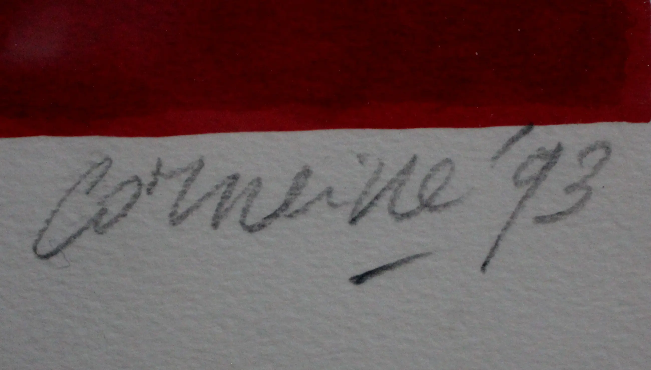 Het werk is, rechts onderaan, gesigneerd door de kunstenaar. De authenticiteit van het aangeboden werk kan volledig worden gegarandeerd. Een certificaat van echtheid kan, op aanvraag, worden gemaild.