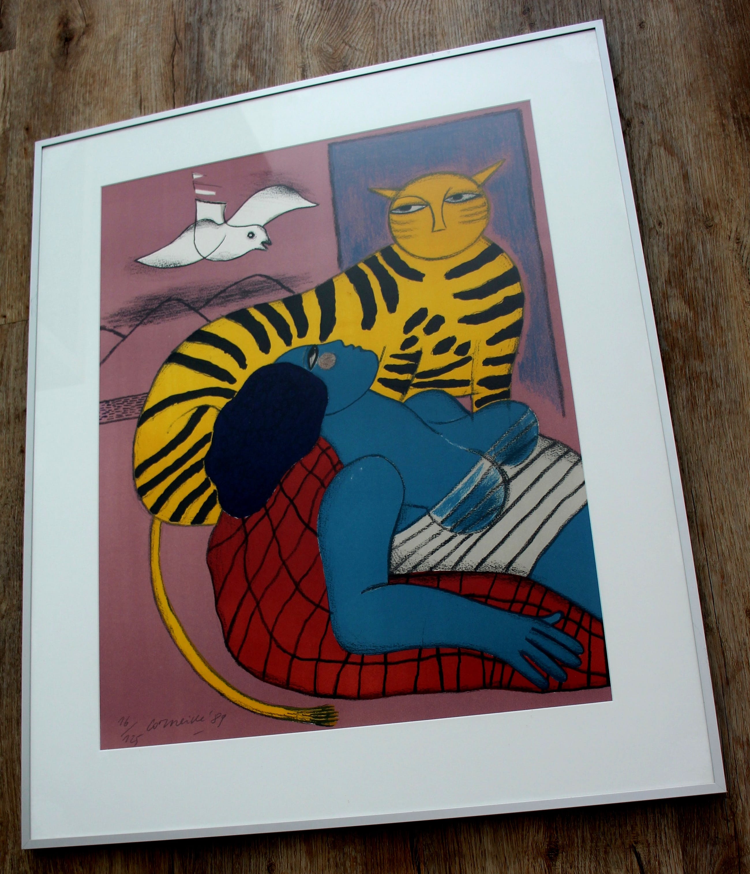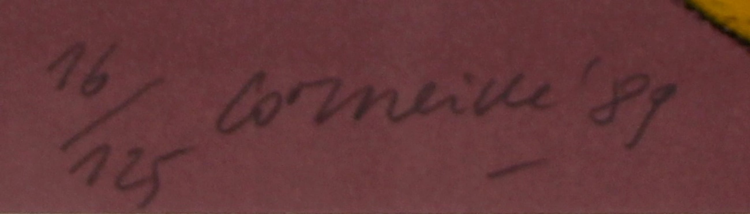 Ingelijste litho van Corneille. Nummer: 16/125. Jaar: 1989. Afmetingen incl lijst: H81 x b66 cm. Afmetingen voorstelling: H64 x b48.5 cm. Het werk is links onder aan gesigneerd door de kunstenaar. De authenticiteit van het, aangeboden, werk wordt volledig gegarandeerd. Een certificaat van echtheid kan, op aanvraag, worden gemaild.