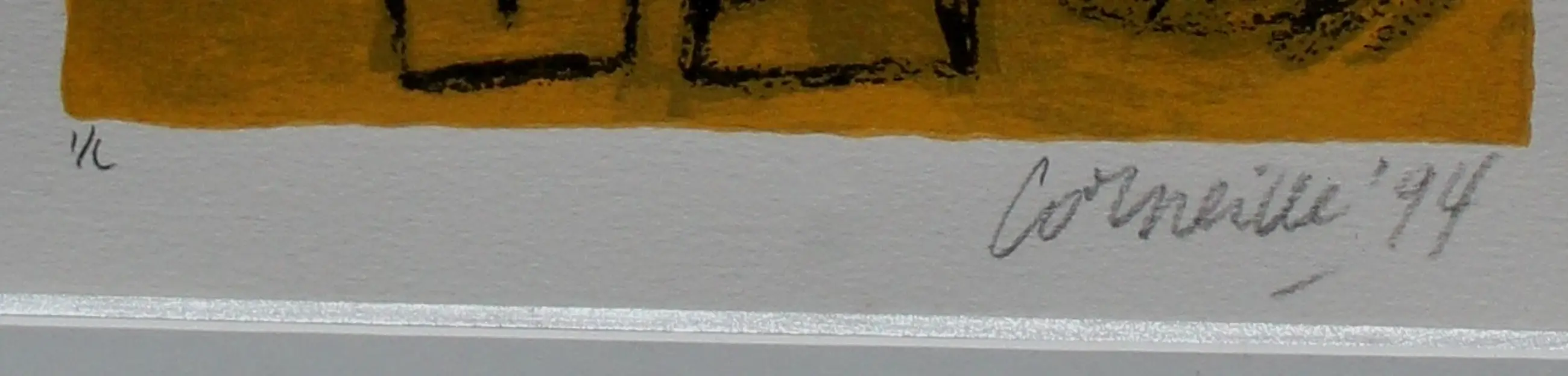 Ingelijste litho van Corneille. Compositie van speelse figuren. Afmetingen incl lijst: H54 x b45cm. Afmetingen voorstelling: H26.5 x b19.5cm. Het werk is rechtsonder gesigneerd door de kunstenaar. De authenticiteit van het aangeboden werk wordt volledig gegarandeerd. Een certificaat van echtheid kan, op aanvraag, worden gemaild.