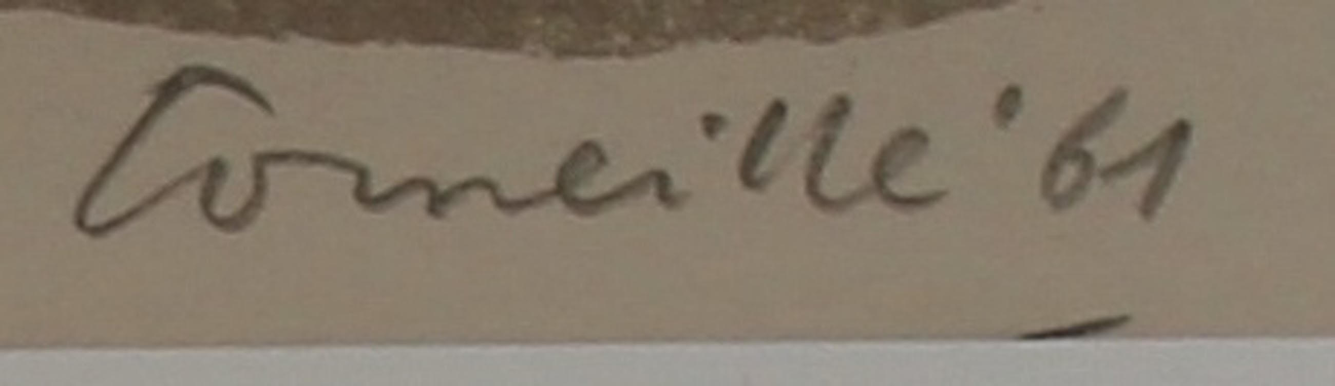Ingelijste litho van Corneille. Nummer: 16/25. Titel: Entre jour et nuit II. Jaar: 1961. Afmetingen incl lijst: H67 x b53 cm. Afmetingen voorstelling: H23 x b16.5 cm. Het werk is rechtsonder aan gesigneerd door de kunstenaar. Literatuur: Donkersloot nummer: 99, blz 111. De authenticiteit van het, aangeboden, werk wordt volledig gegarandeerd. Een certificaat van echtheid kan, op aanvraag, worden gemaild.