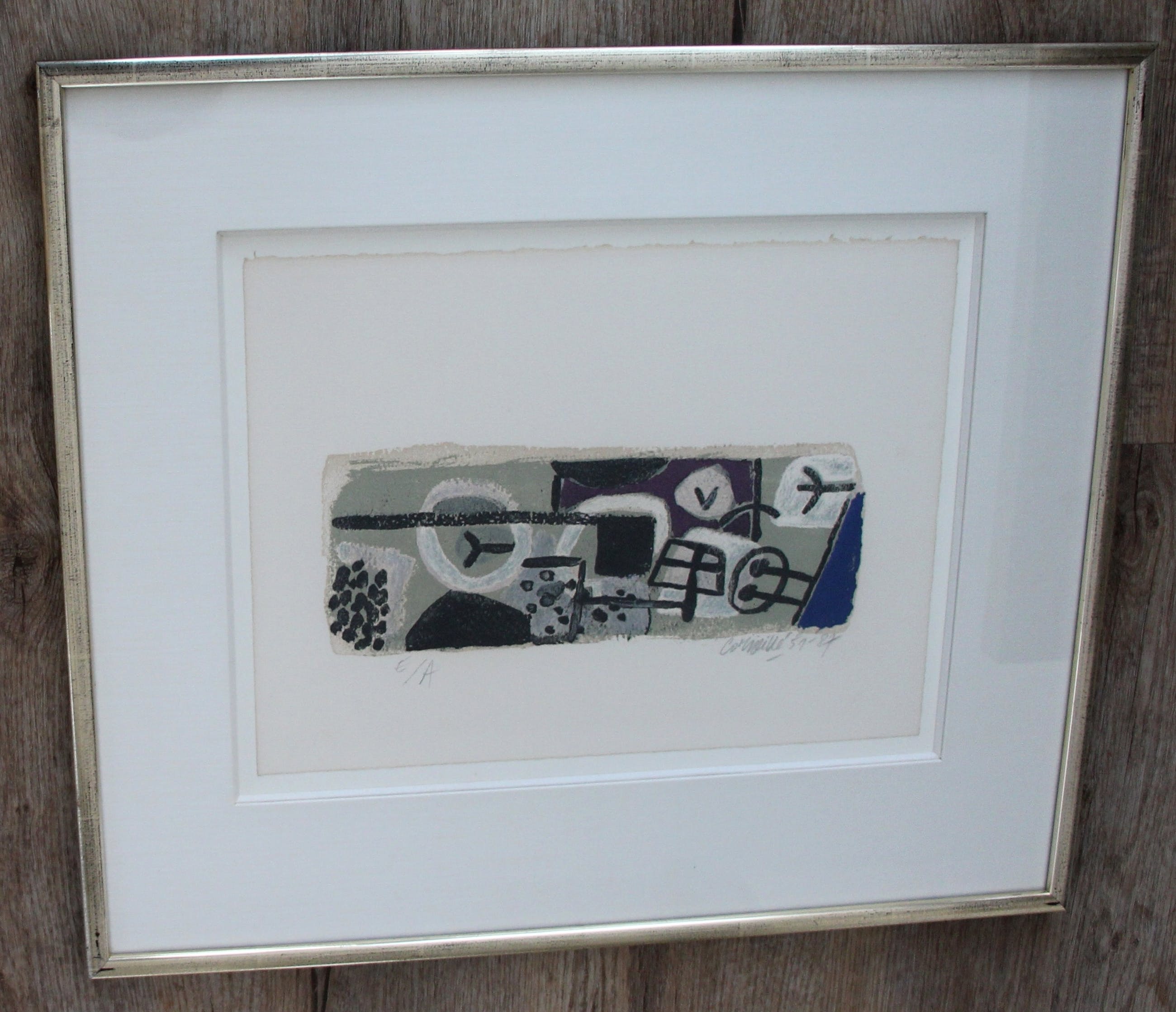 Ingelijste litho van Corneille. Jaar: 1987. Nummer: E/A. Afmetingen incl lijst: H50 x b58cm. Afmetingen voorstelling: H10 xb27cm. Het werk is rechts onderaan, gesigneerd, door de kunstenaar. De authenticiteit van het aangeboden werk wordt volledig gegarandeerd. Een certificaat van echtheid kan, op aanvraag, worden gemaild.