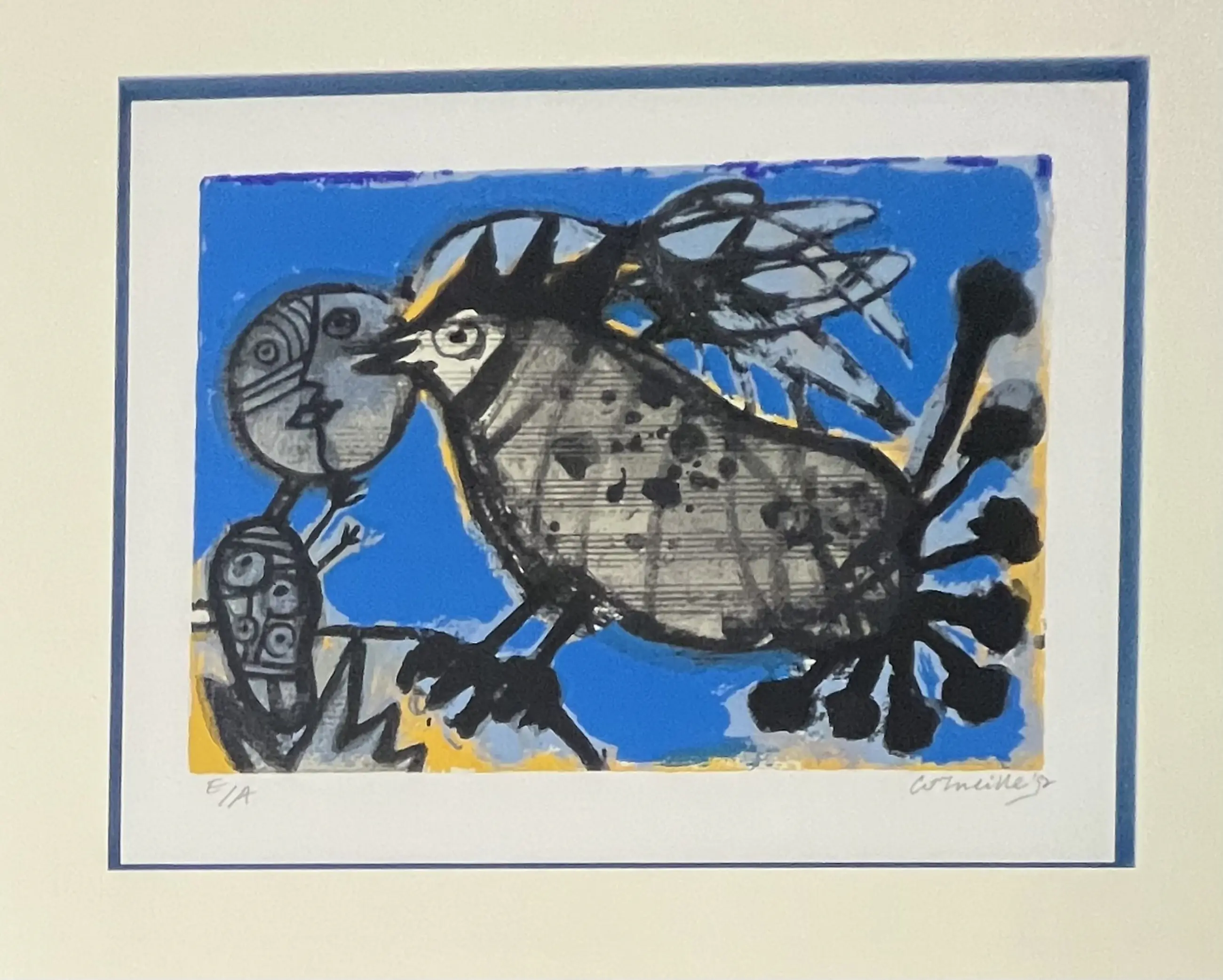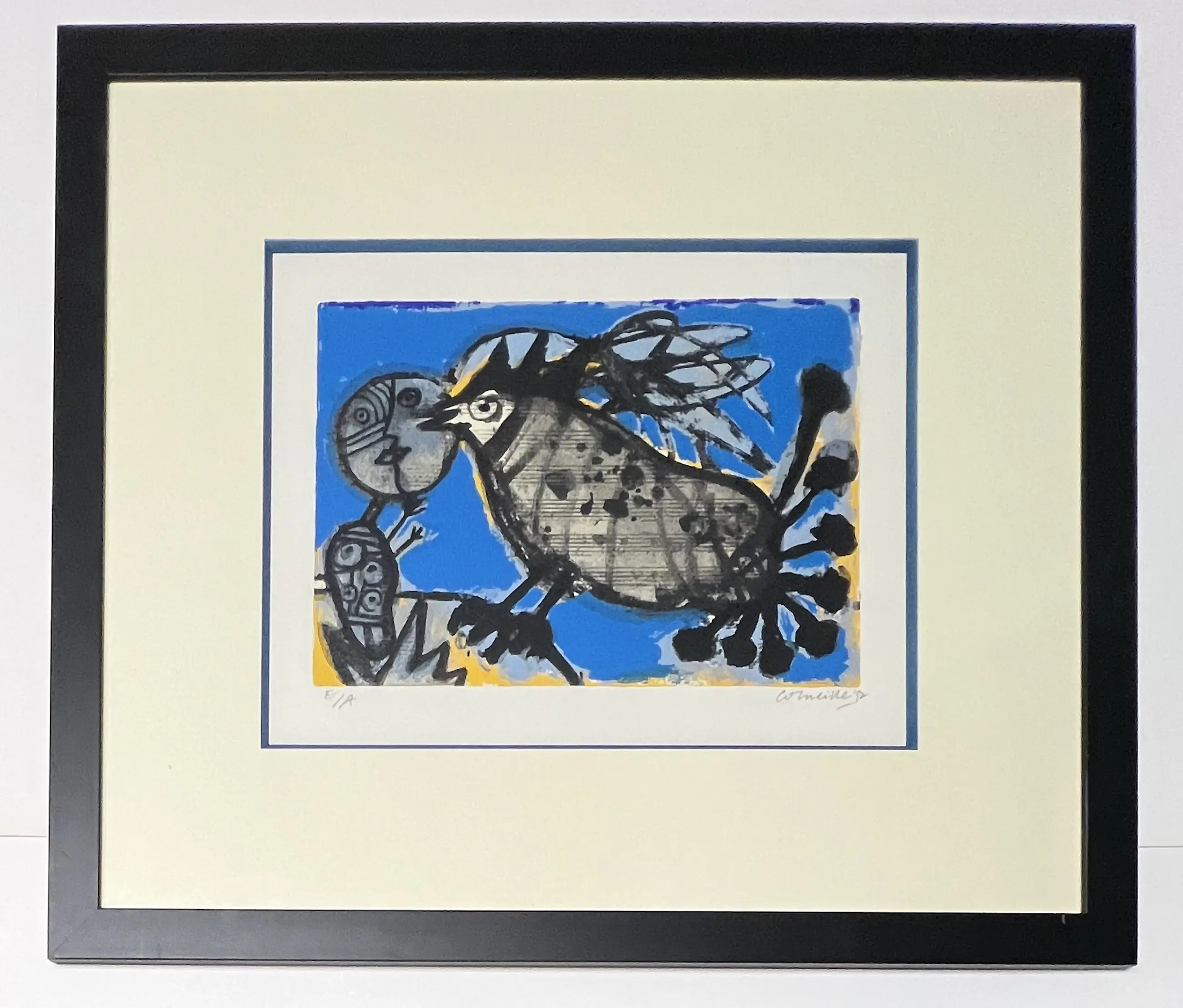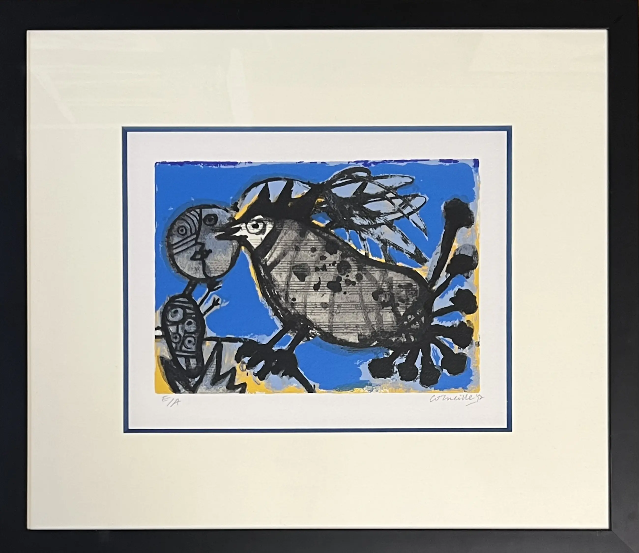 Originele ingelijste lithografie van de schilder Guillaume Corneille (1922-2010), geboren in Luik uit Nederlandse ouders, stichtend lid van de Cobra-beweging, samen met Karel Appel, Constant, Asger Jorn, Dotremont, Joseph Noiret, Lucebert en Alechinsky.