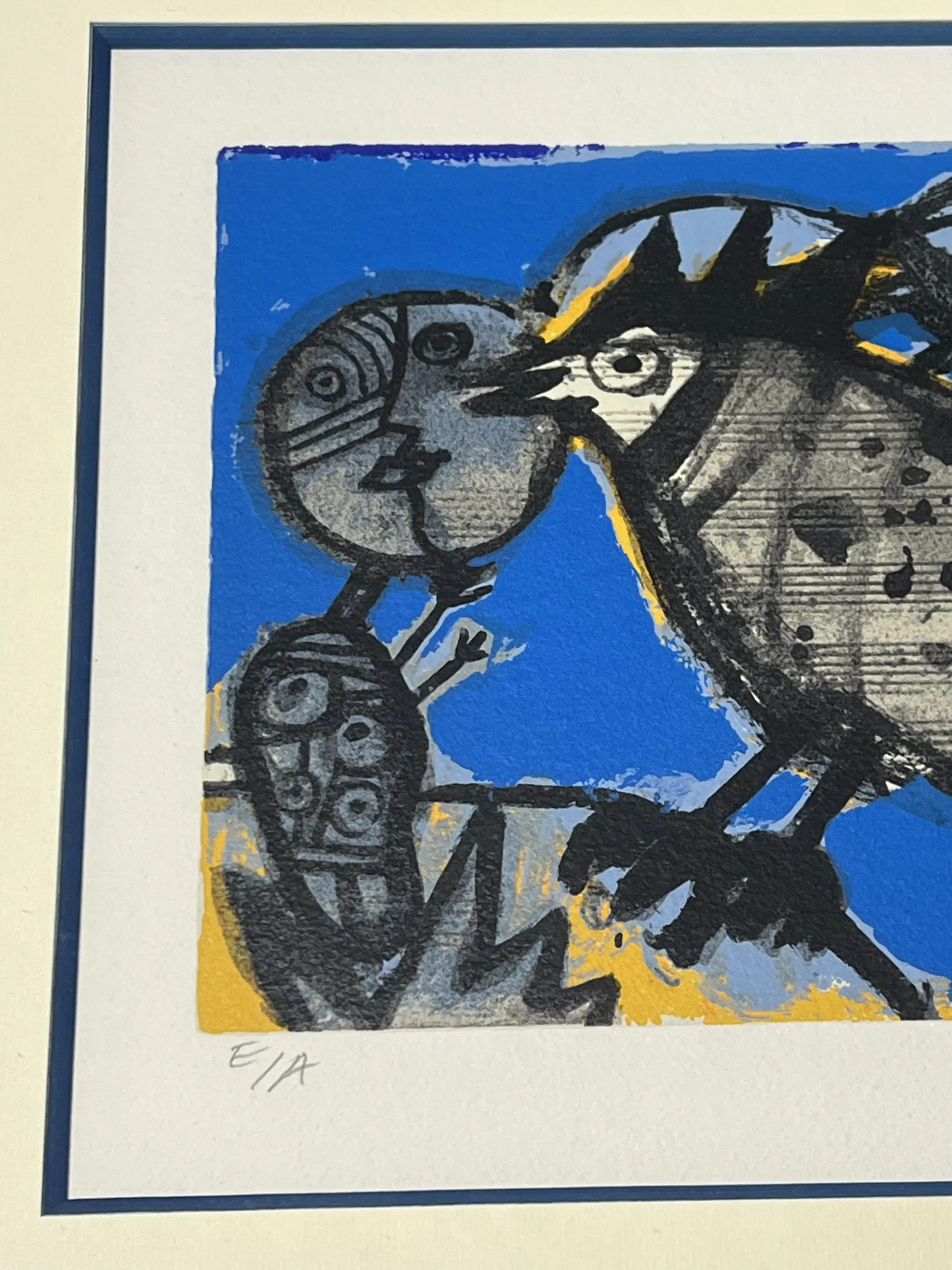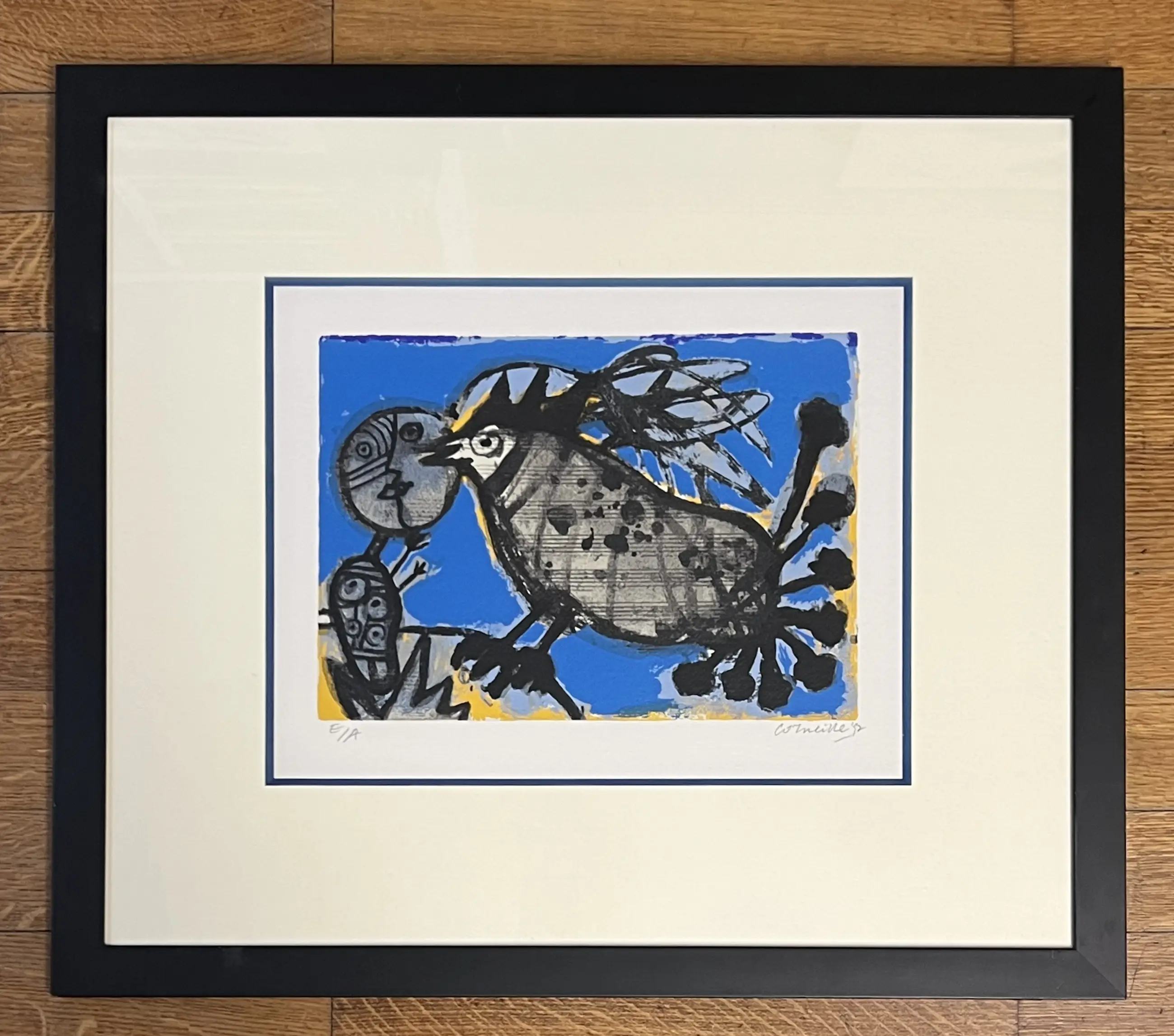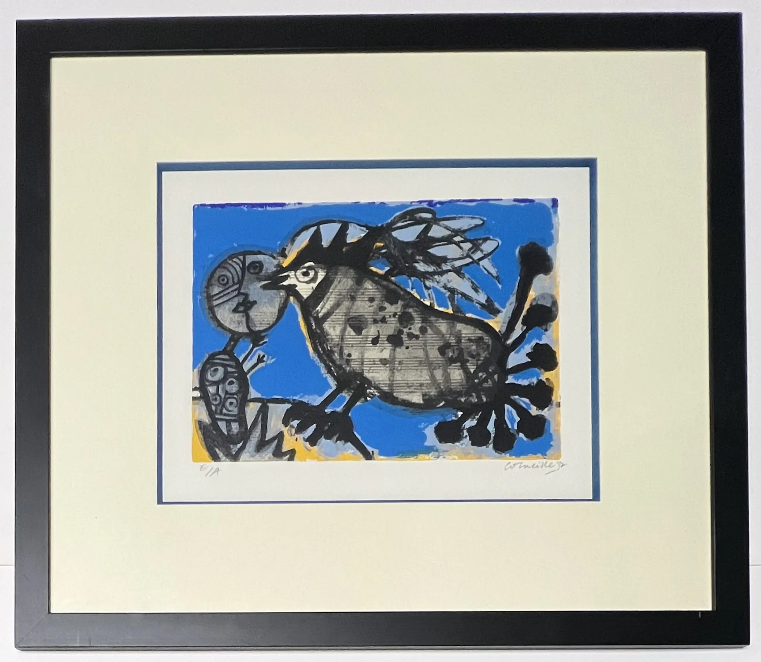 Originele ingelijste lithografie van de schilder Guillaume Corneille (1922-2010), geboren in Luik uit Nederlandse ouders, stichtend lid van de Cobra-beweging, samen met Karel Appel, Constant, Asger Jorn, Dotremont, Joseph Noiret, Lucebert en Alechinsky.