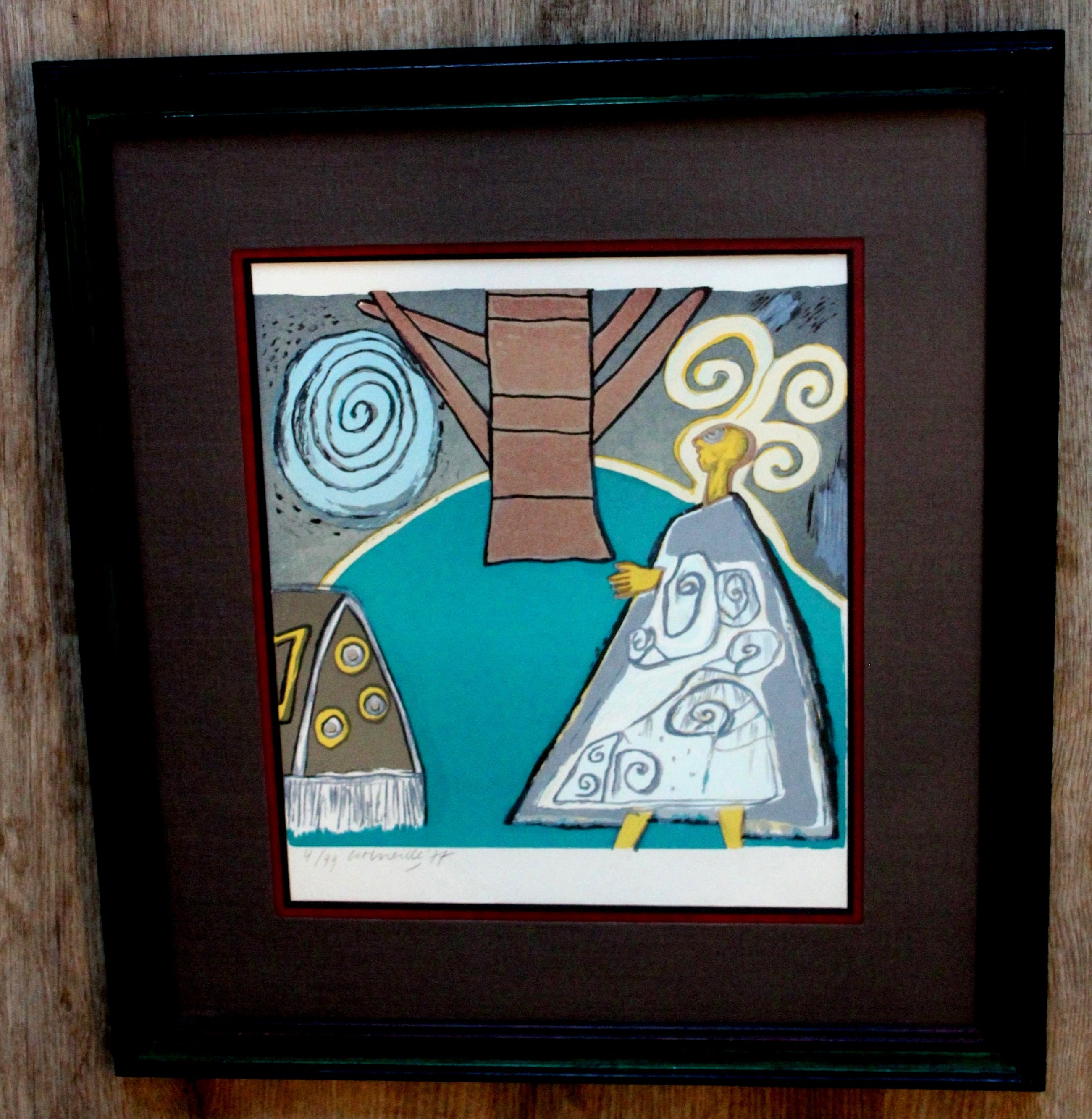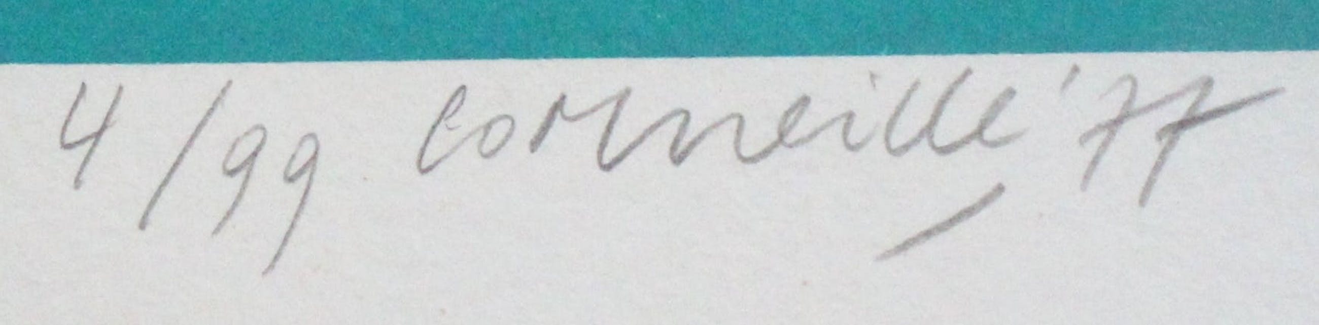 Ingelijste zeefdruk van Corneille. Jaar: 1977. Nummer: 4/99. Afmetingen incl lijst: H59 x b53cm. Afmetingen voorstelling: H32 x b32cm. Het werk is links onderaan gesigneerd door de kunstenaar. De authenticiteit van dit werk wordt volledig gegarandeerd. Een certificaat van echtheid kan, op aanvraag, worden gemaild.