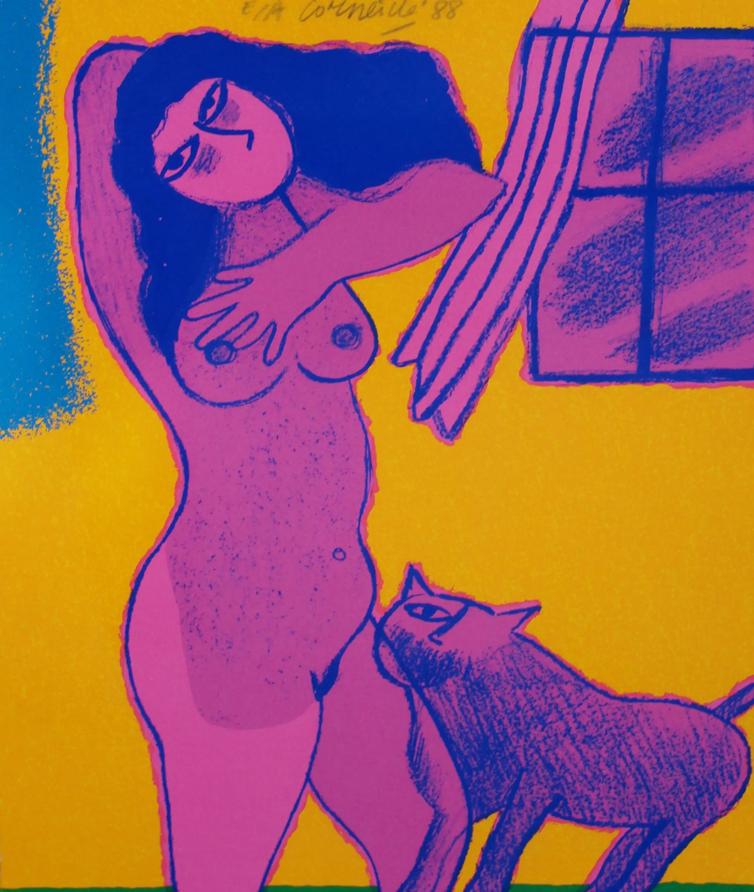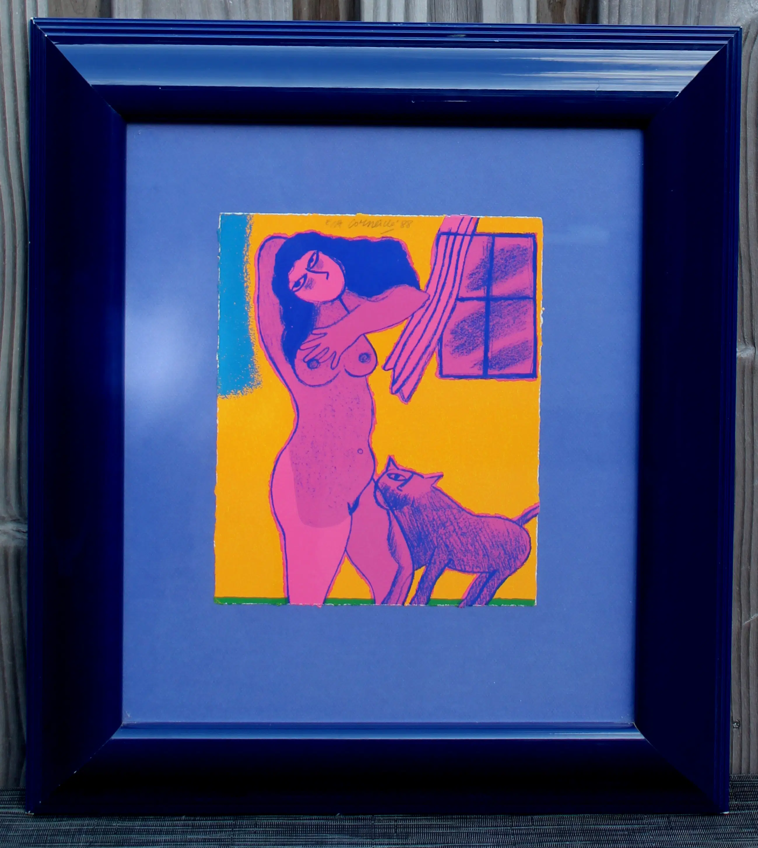 Ingelijste zeefdruk van Corneille. Jaar: 1988. Oplage: E.A. Afmetingen incl lijst: H60.5 x b53cm. Afmetingen voorstelling: H29.5 x b24cm. Het werk is bovenaan gesigneerd door de kunstenaar. De authenticiteit van het, aangeboden, werk wordt volledig gegarandeerd. Een certificaat van echtheid kan, op aanvraag, worden gemaild.