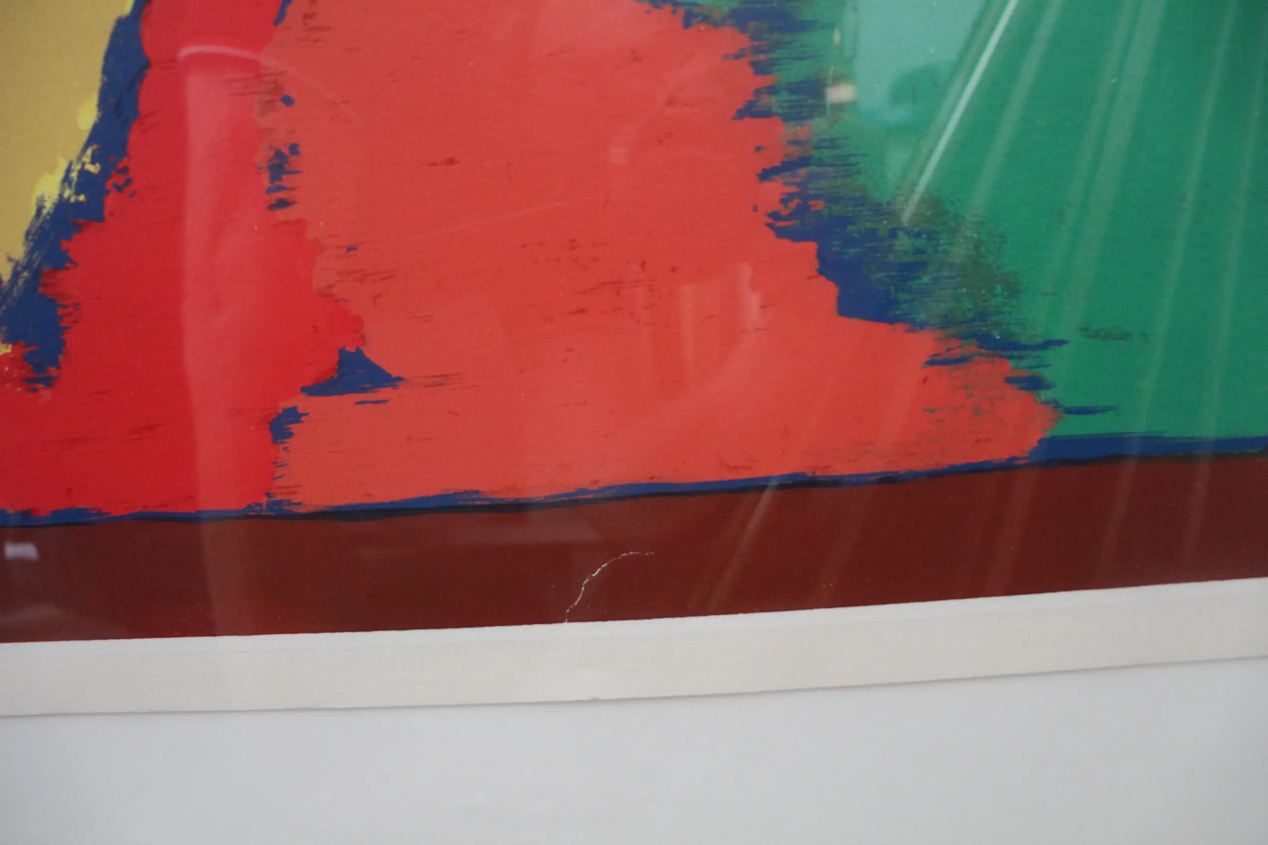 Lijsten: Beschadigingen aan lijsten worden niet beschreven. Indien een werk achter glas is ingelijsten het glas is kapot, zal dit wel vermeld worden. Bij foto's van ingelijste werken kan spiegeling zichtbaar zijn.
