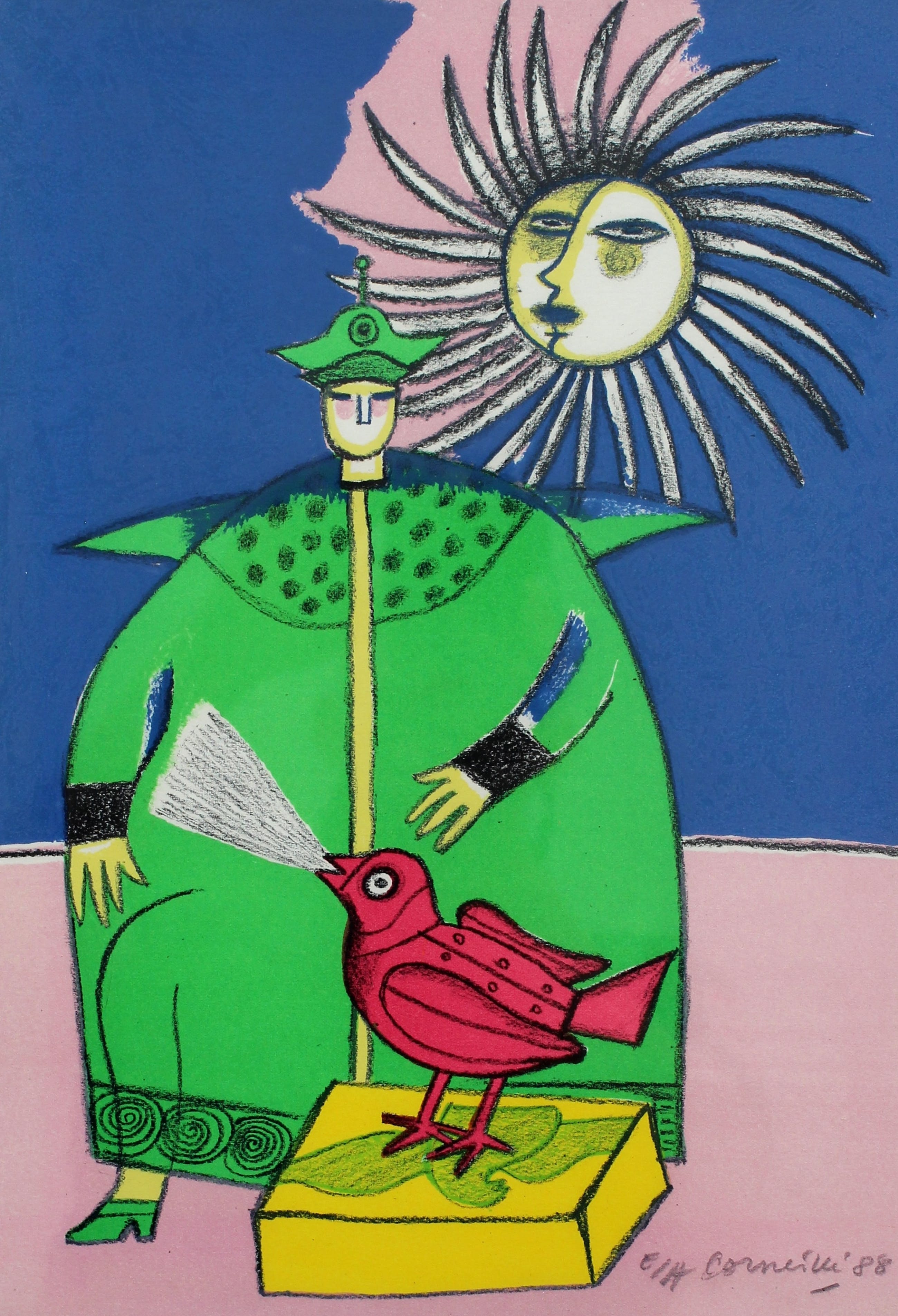 Ingelijste zeefdruk van Corneille uit 1988. Titel: de Chinese Nachtegaal. Nummer: E.A. De authenticiteit van het aangeboden werk wordt volledig gegarandeerd. Een certificaat van echtheid kan, op aanvraag worden gemaild.