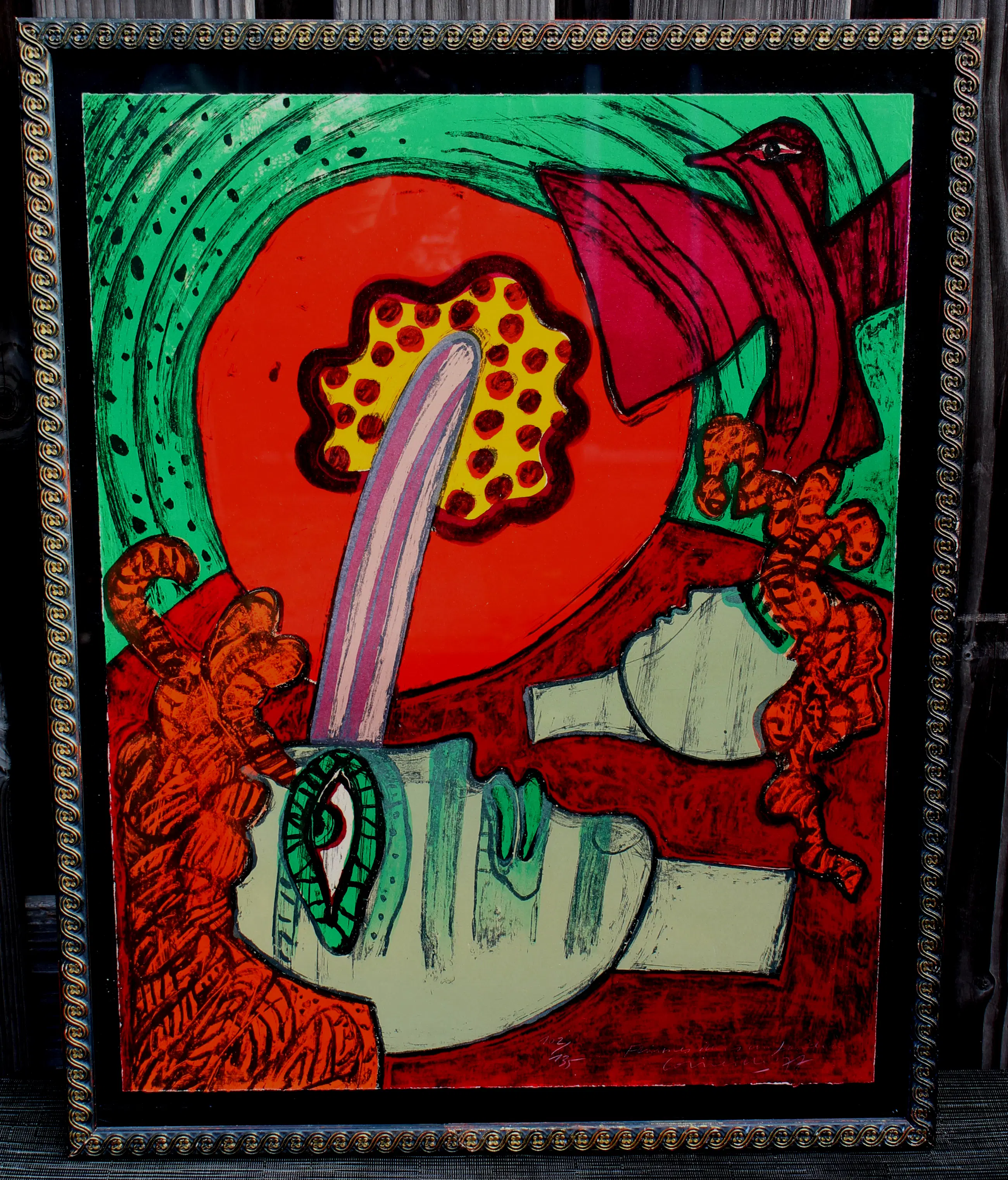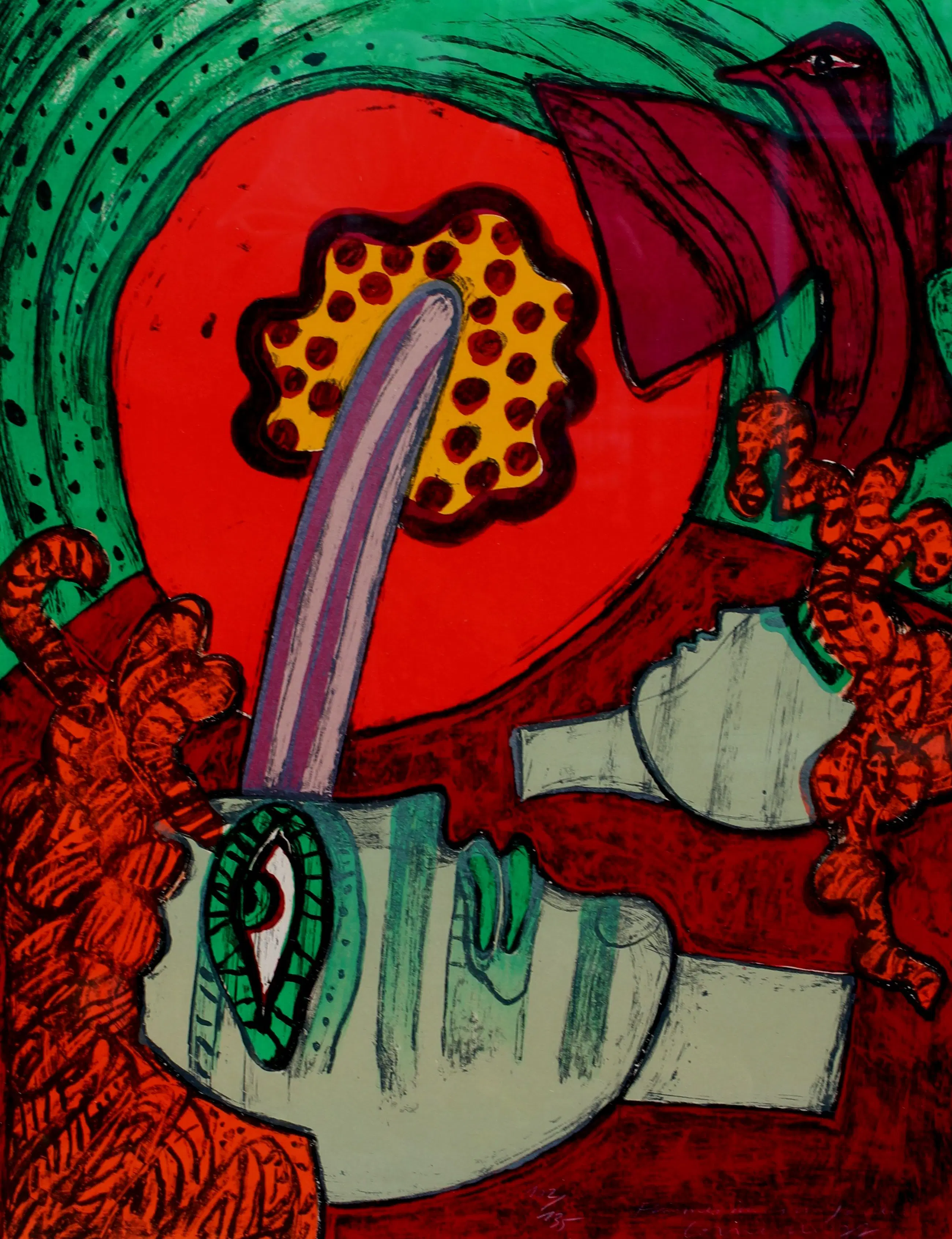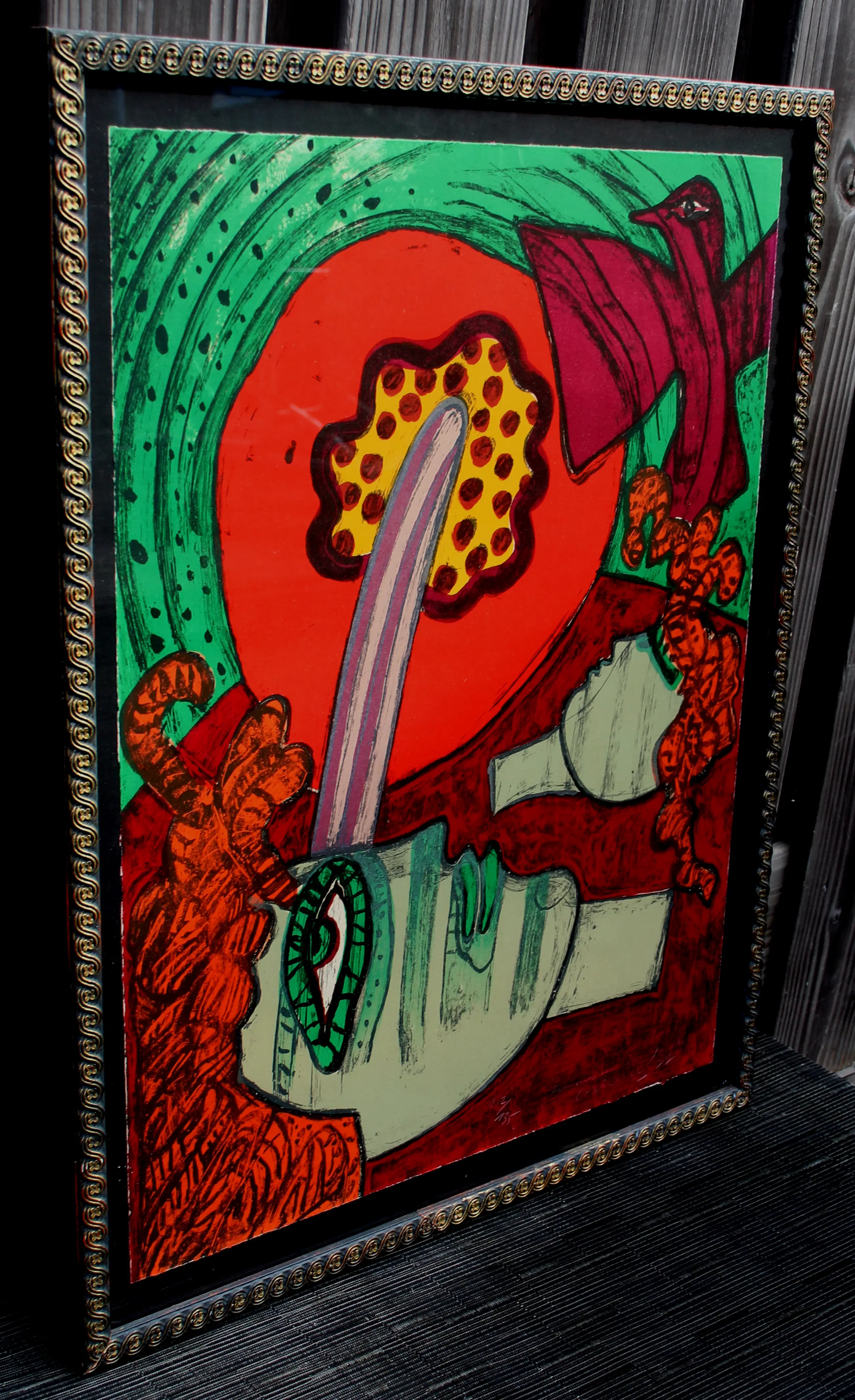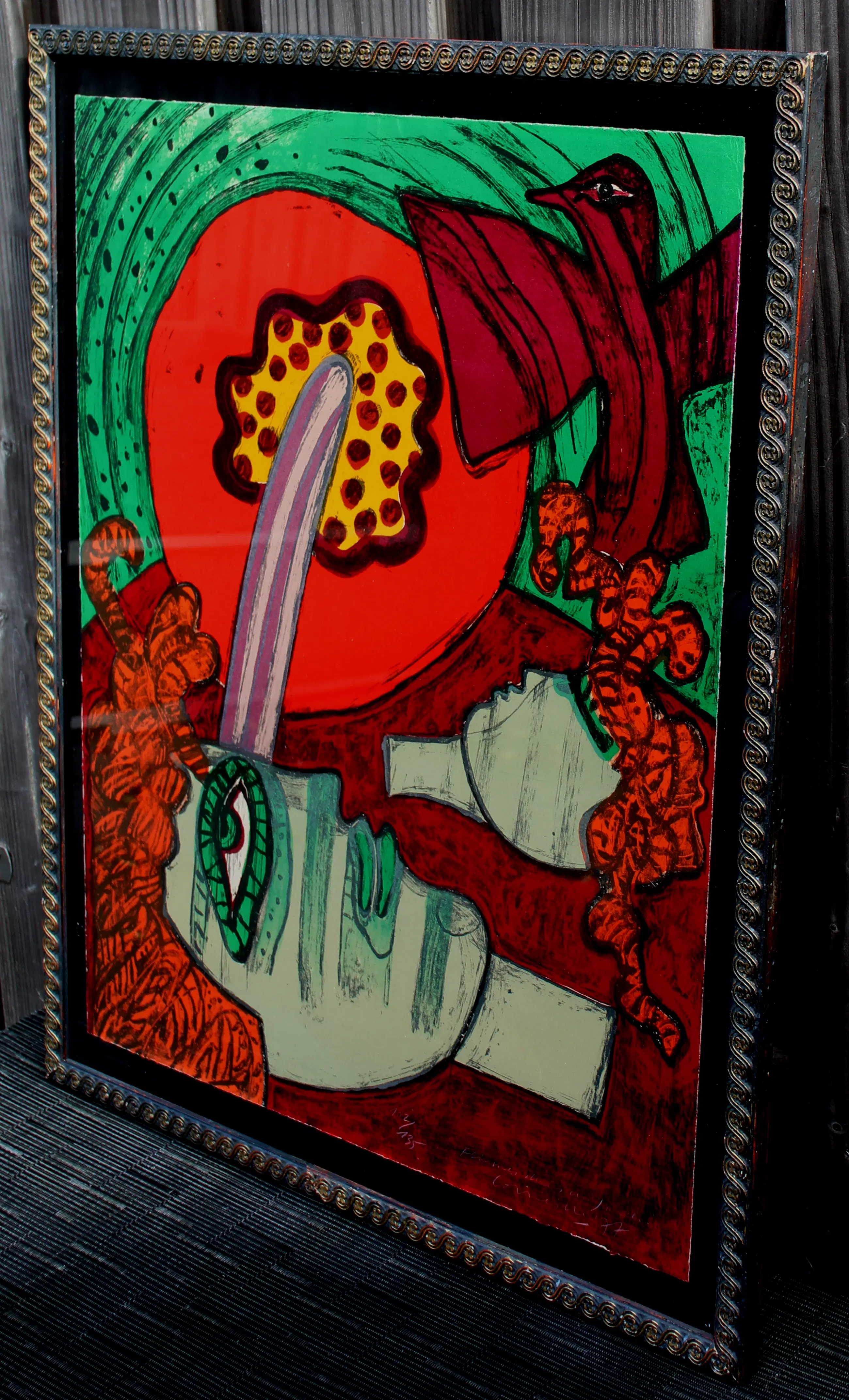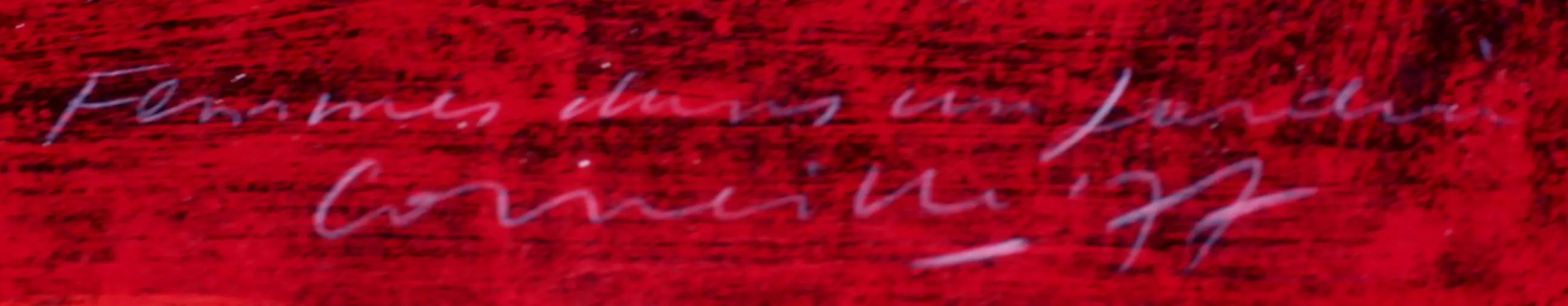 Ingelijste zeefdruk van Corneille. Titel: 'Femmes dans un jardin'. Jaar: 1977. Oplage: 102/135. Afmetingen incl. lijst: H80 x B66cm. Afmetingen voorstelling: H65 x b51cm.
