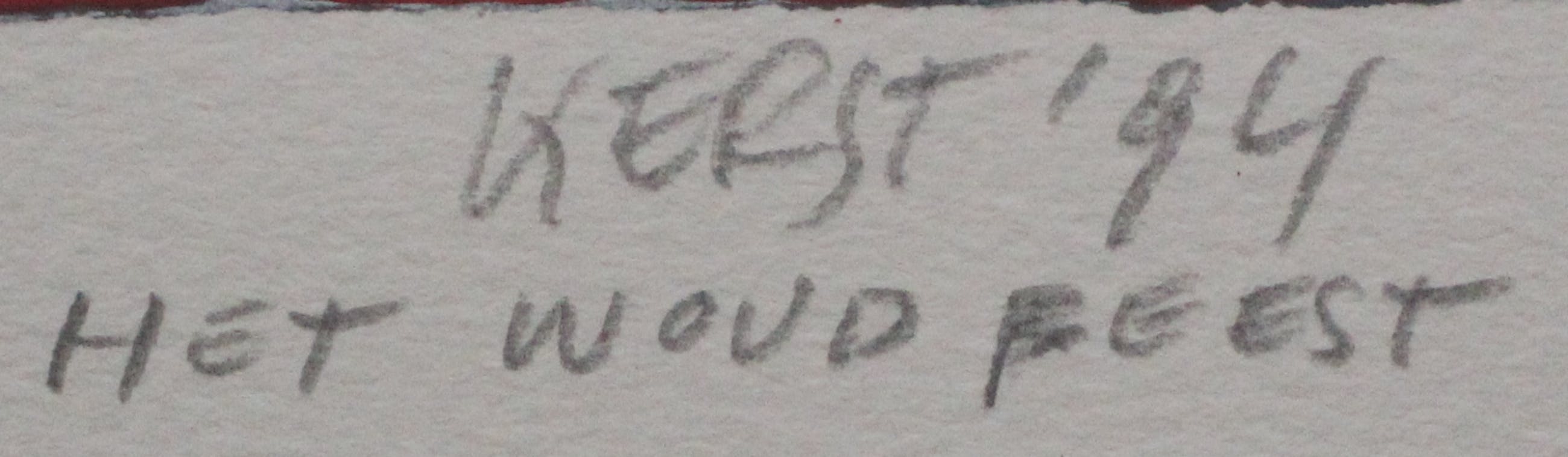 Ingelijste zeefdruk van Corneille. Titel: Kerst '94, het woud feest. Jaar: 1994. Nummer: E.A. Afmetingen incl lijst: H53 x b51cm. Afmetingen voorstelling: H31 x b31cm. Het werk is rechts onderaan, gesigneerd en gedateerd door de kunstenaar. De authenticiteit van het werk wordt volledig gegarandeerd. Een certificaat van echtheid kan, op aanvraag, worden gemaild.