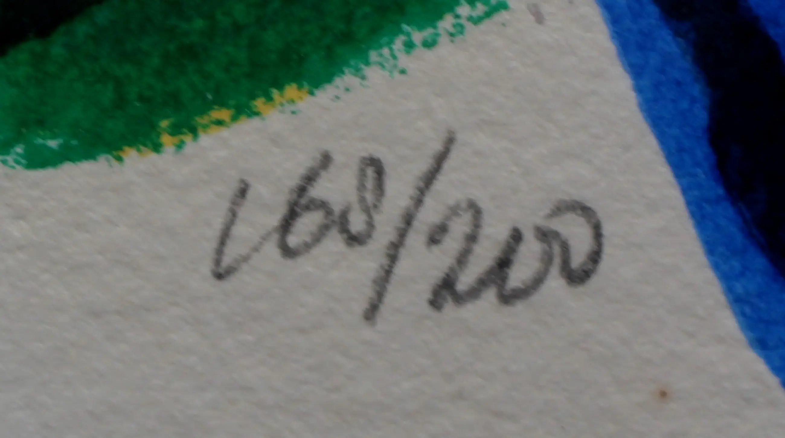 Ingelijste zeefdruk van Corneille. Titel: l' Oiseau rouge et soleil. Jaar: 1990. Oplage: 168/200. Afmetingen incl lijst: H77 x b77cm. Afmetingen voorstelling: H59 x b59cm. Het werk is onderaan met potlood, gesigneerd door de kunstenaar. De authenticiteit van het aangeboden werk wordt volledig gegarandeerd. Een certificaat van echtheid kan, op aanvraag, worden gemaild.