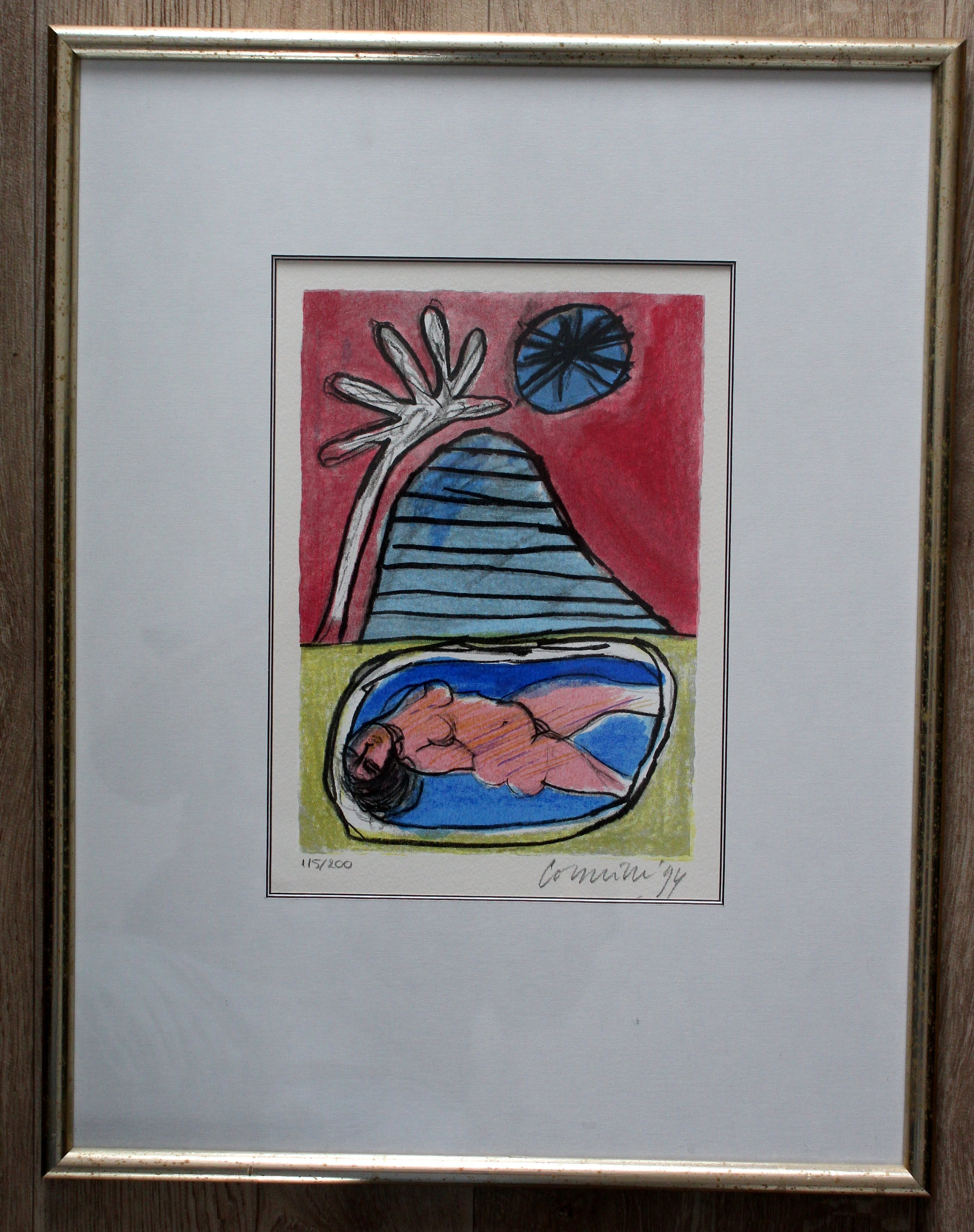 Ingelijste zeefdruk van Corneille uit 1994. Naakt. Afmetingen incl lijst: H50.5 x b39.5. Afmetingen afbeelding: H28 x b20cm. Het werk is rechtsonderaan, met potlood, gesigneerd door de kunstenaar.