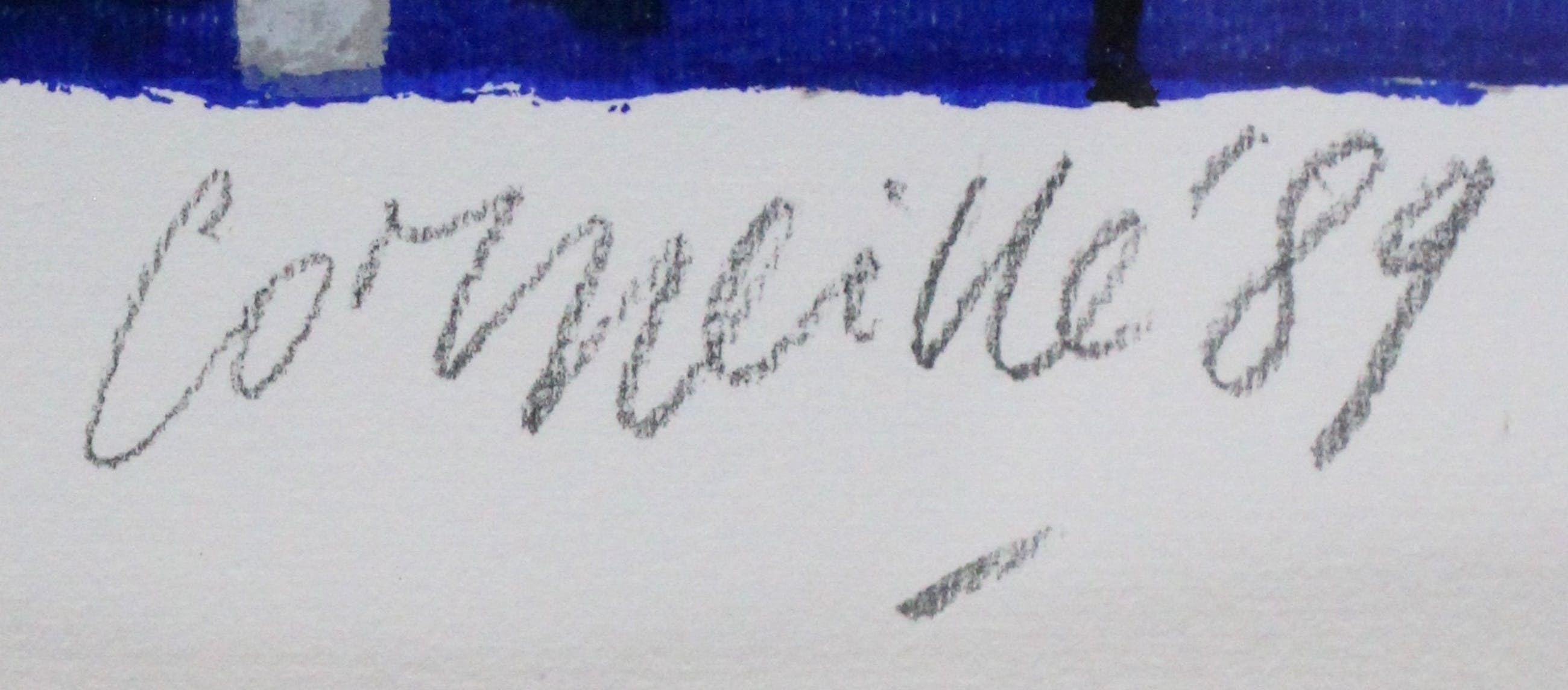 Ingelijste litho van Corneille. Jaar: 1989. Nummer: XXVII/XXX Afmetingen incl lijst: H85 x b74cm. Afmetingen voorstelling: H44 x b35,5cm. Het werk is rechtsonder gesigneerd door de kunstenaar. De authenticiteit van dit werk wordt volledig gegarandeerd. Een certificaat van echtheid kan, op aanvraag, worden gemaild.
