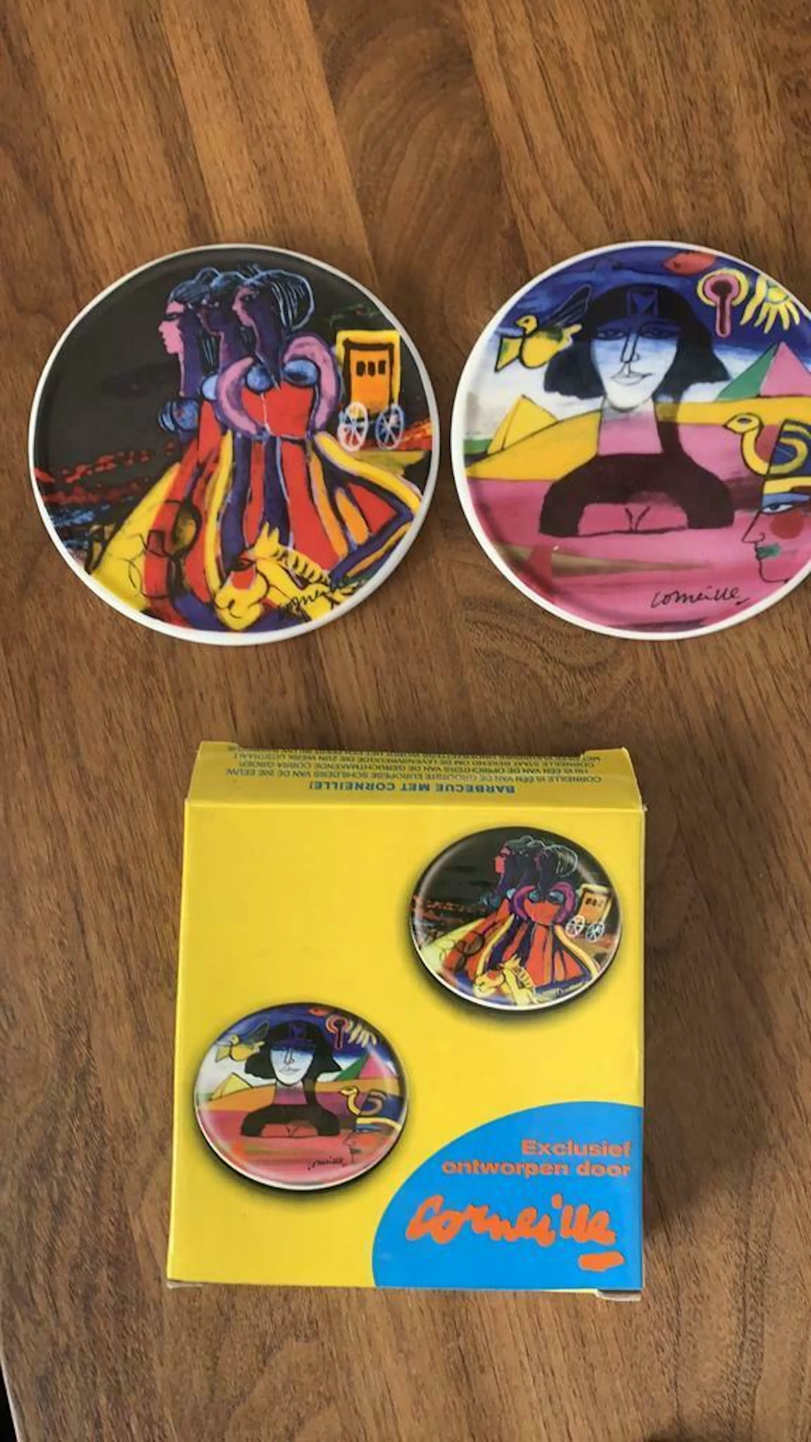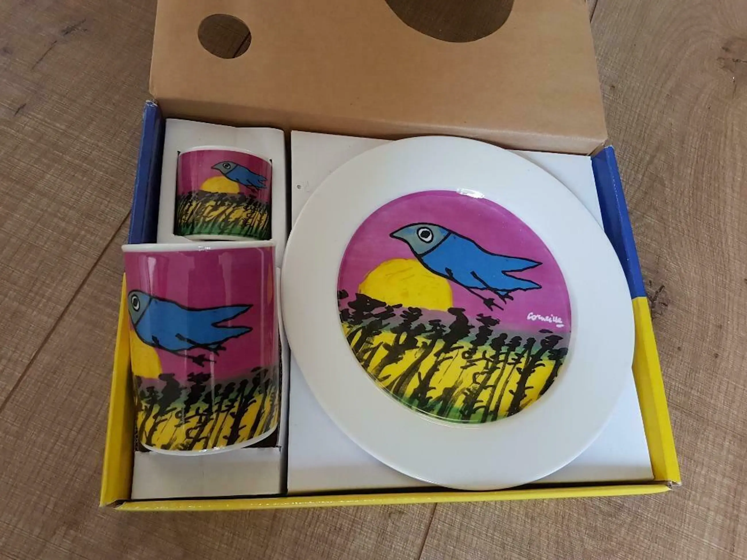 1 ontbijtset in originele doos / nooit gebruikt de catalogus van de tentoonstelling in Papendrecht van de werken van Corneille