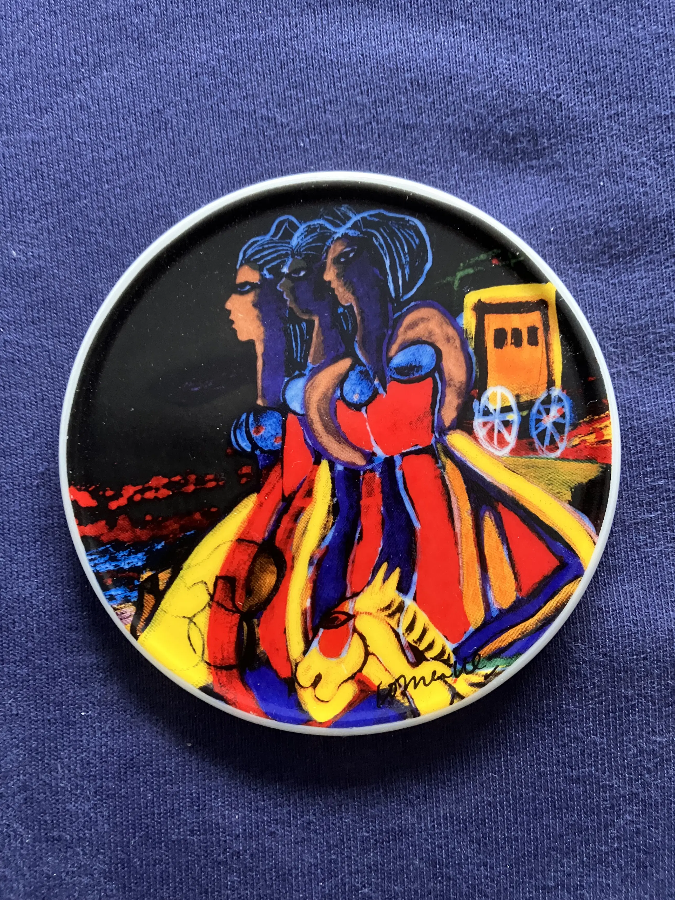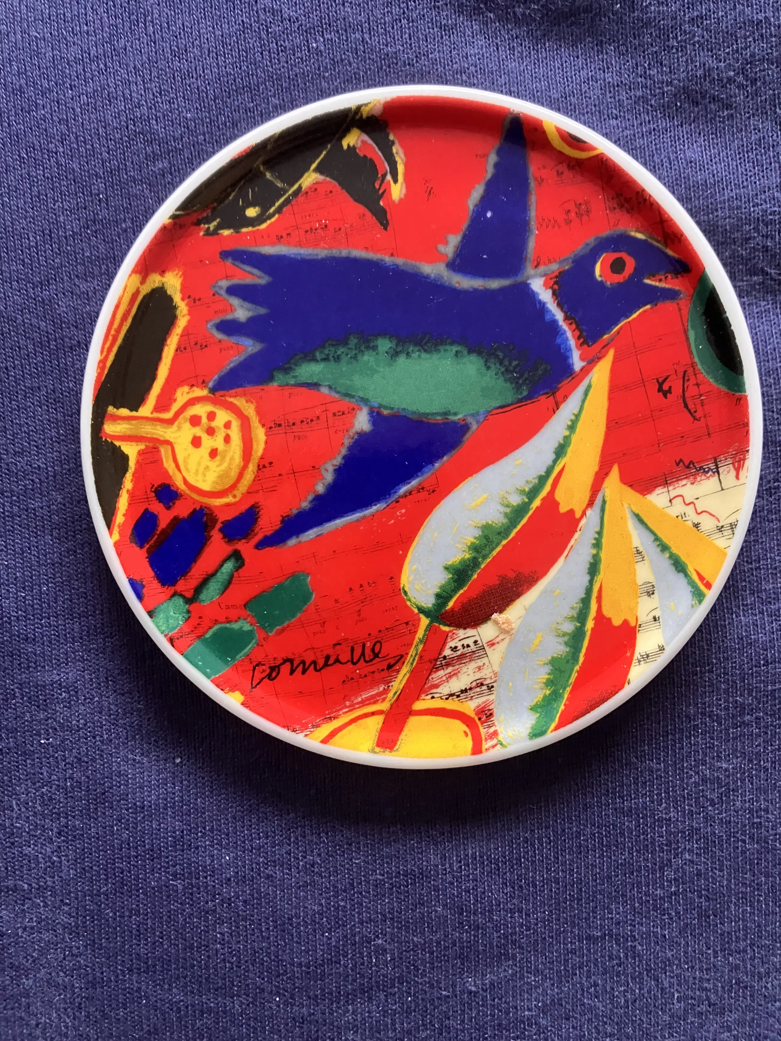 Corneille - Keramiek bord De vuurvogel en 5 verschillende onderzetters