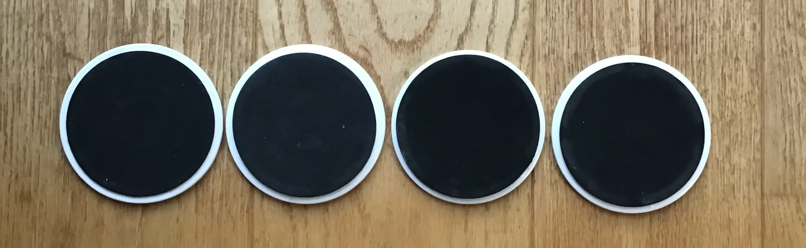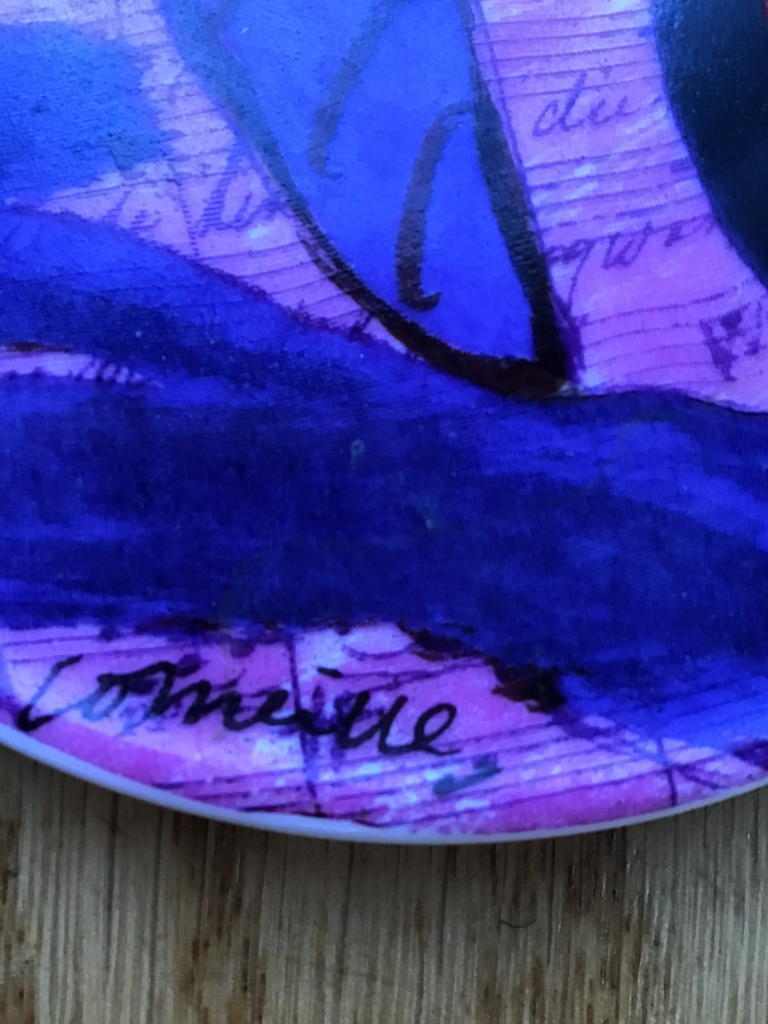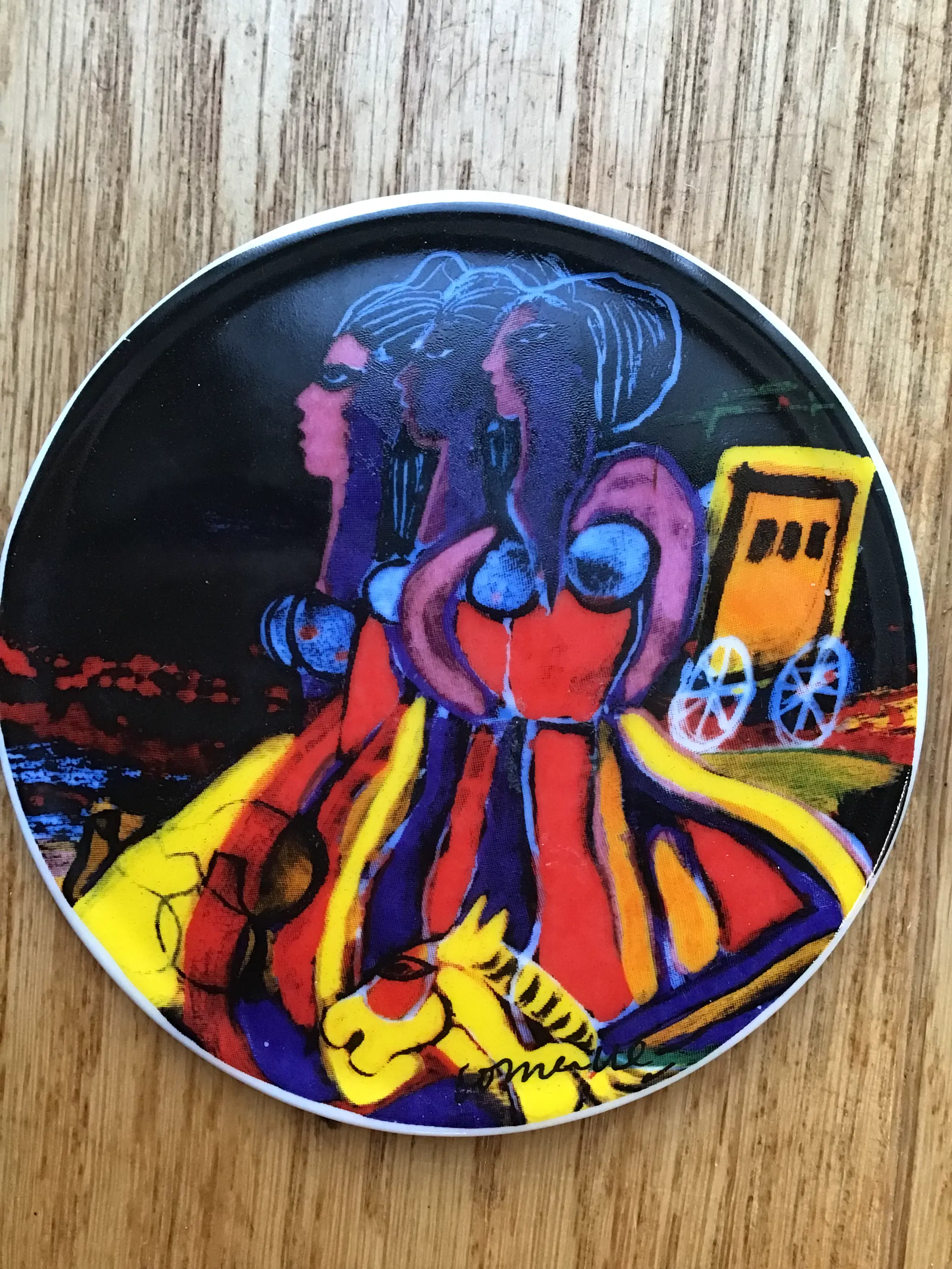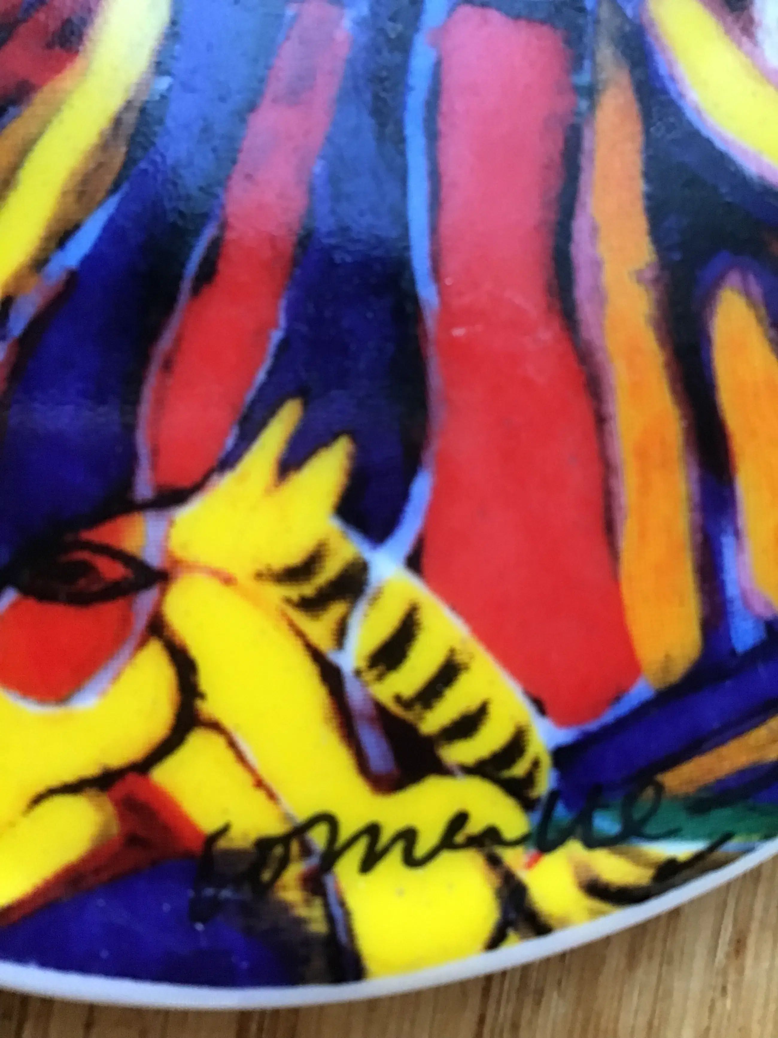 4 onderzetters keramiek van Corneille, Gesigneerd in de druk Doorsnee 10,5 cm Onderkant voorzien van rubber laagje Conditie uitstekend