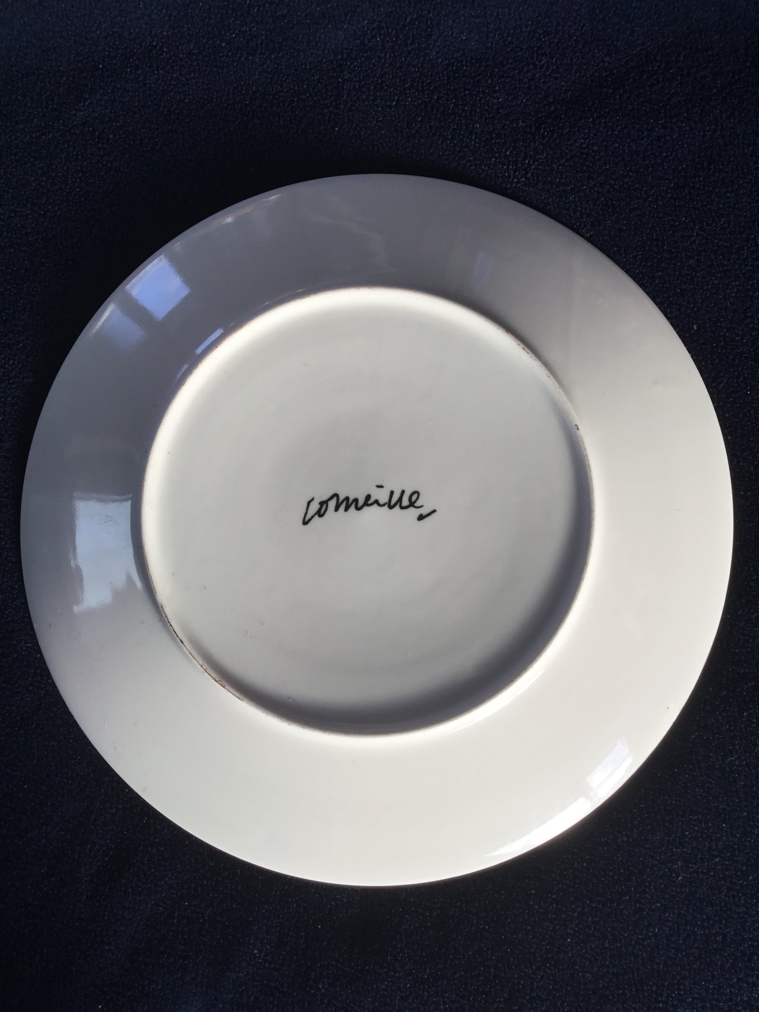 Mooi en kleurrijk keramisch bord van de kunstenaar Corneille, gedecoreerd met een rode vuurvogel. Doorsnede rond 30cm, weegt ruim een Kilo.