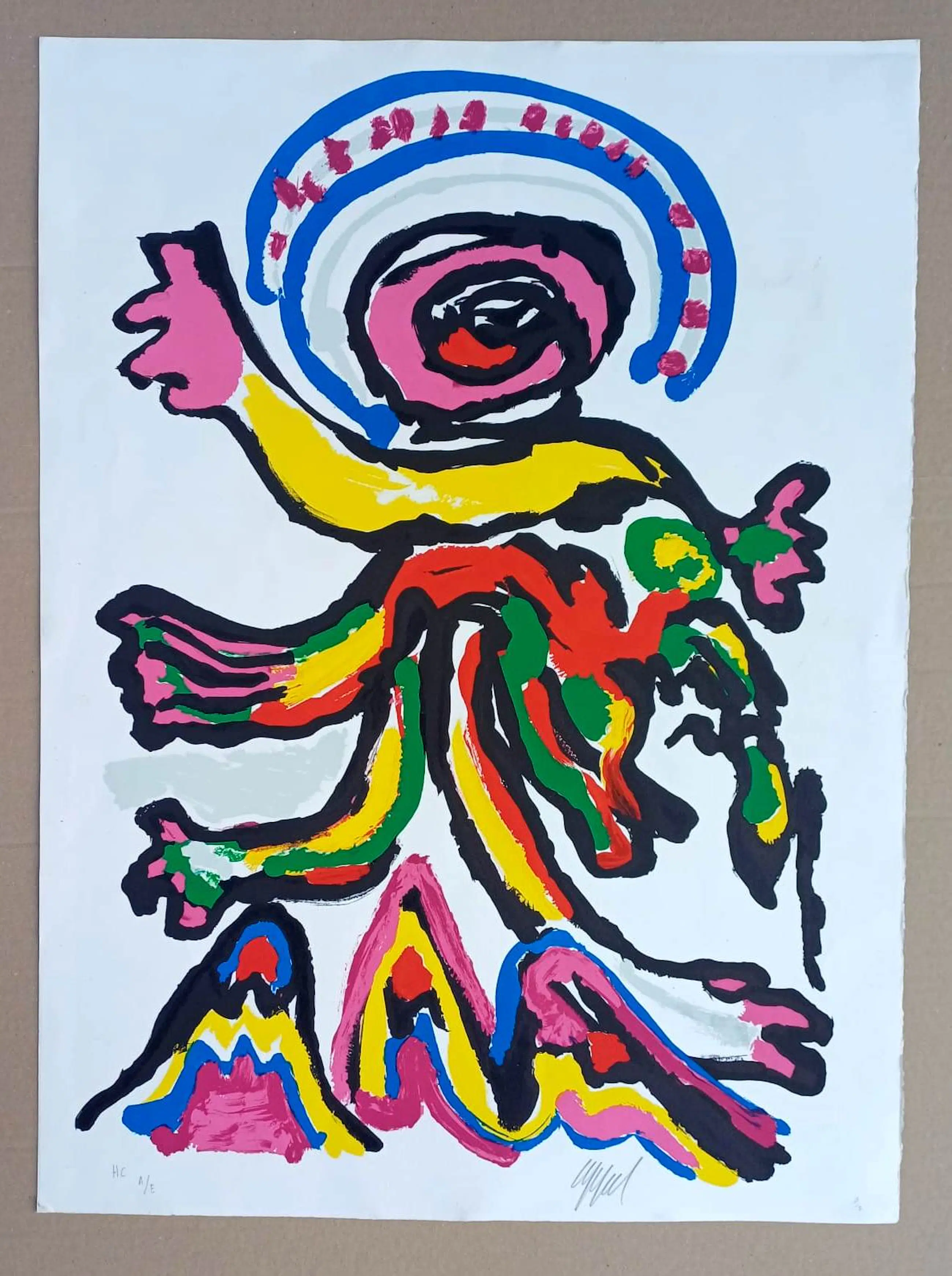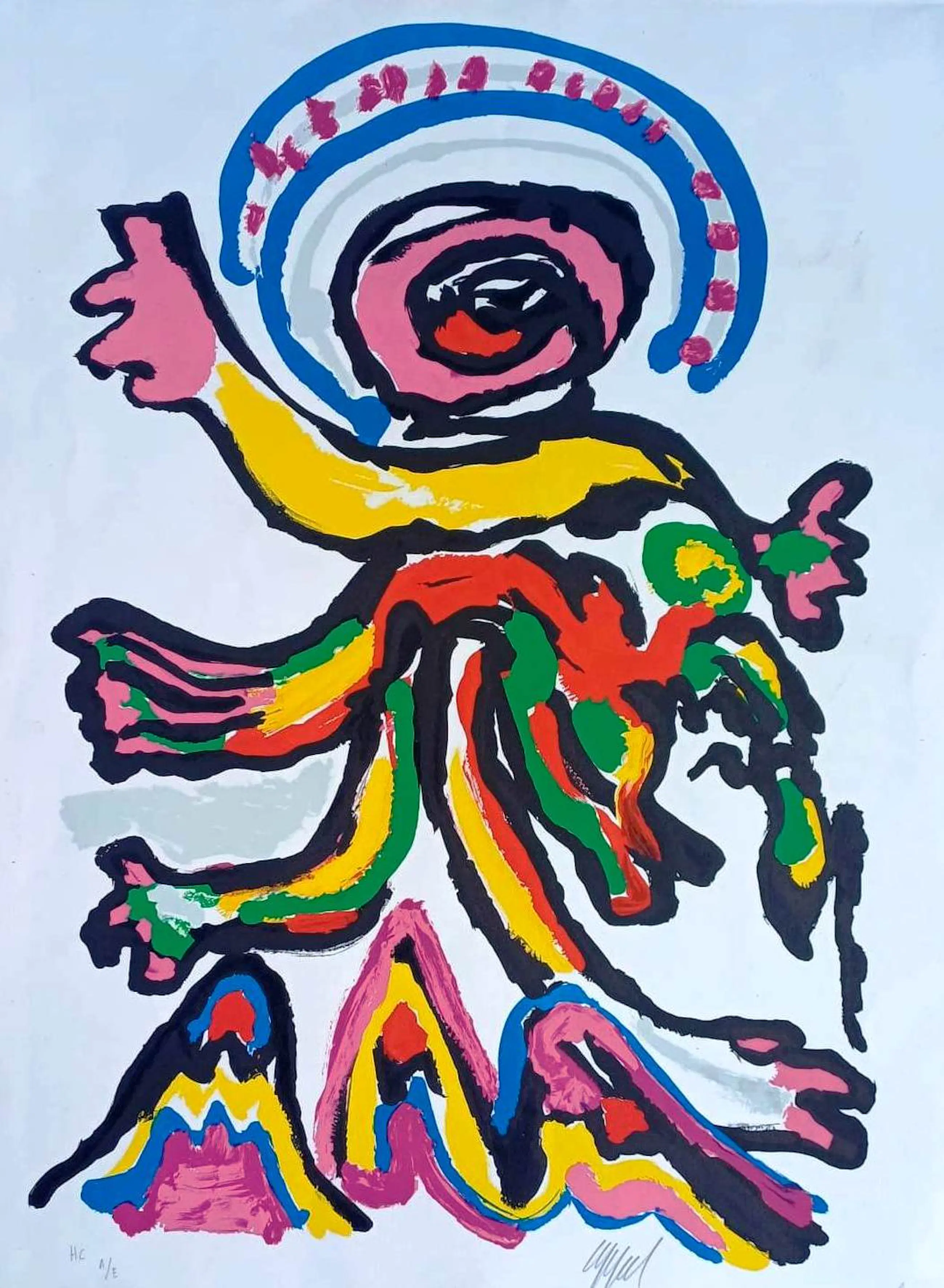 Kleurenlitho van Karel Appel. Titel: Tantrika. Oplage: H.C/E.A. Afmetingen blad: H71 x b51cm. Afmetingen voorstelling: H71 x b56cm. Het werk is, rechtsonder, gesigneerd door Karel Appel. De authenticiteit van het aangeboden werk wordt volledig gegarandeerd. Een certificaat van echtheid kan, op aanvraag, worden gemaild.