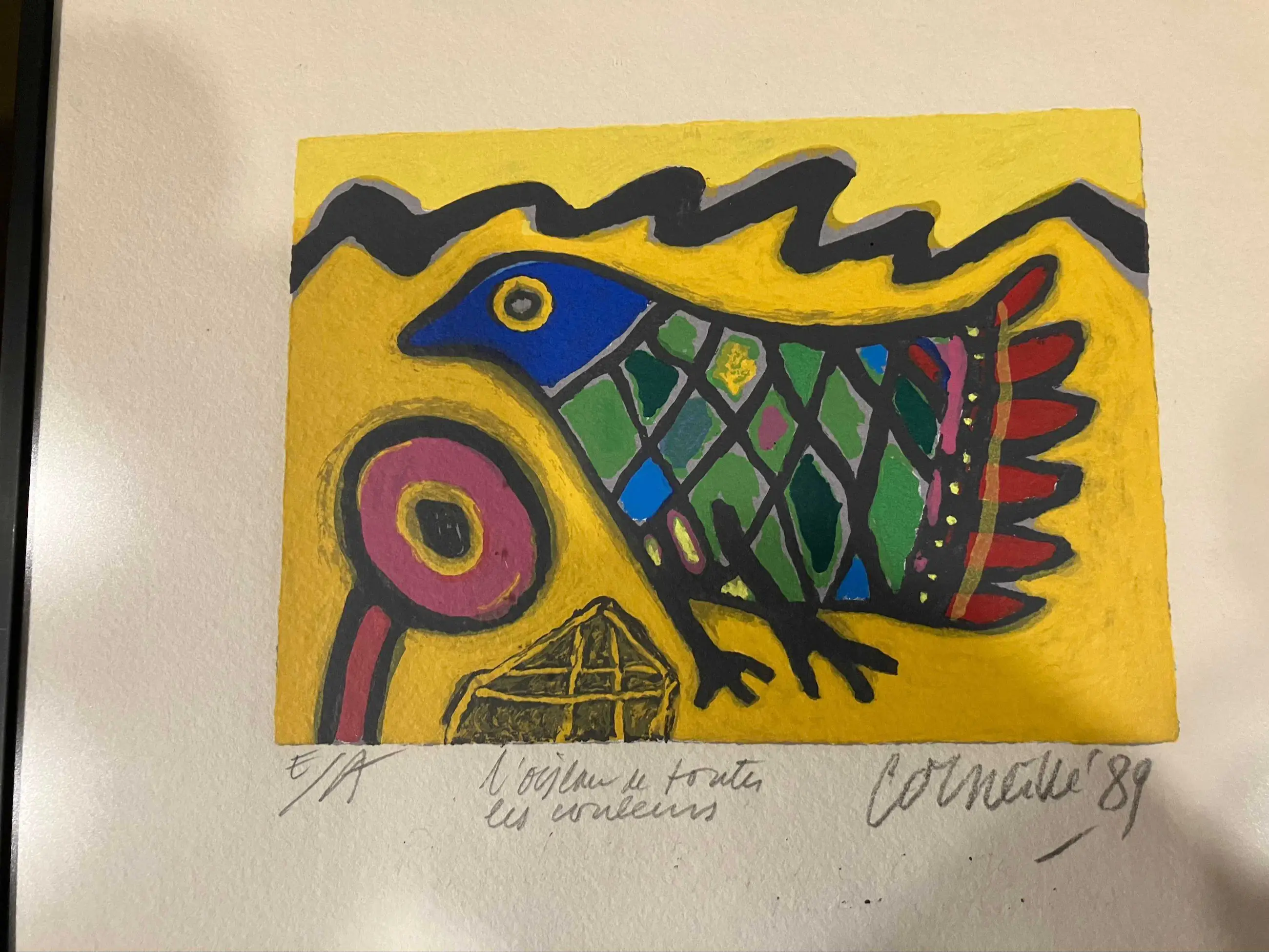 Mooi kleurrijk handgesigneerd werk van Corneille uit 1989.
