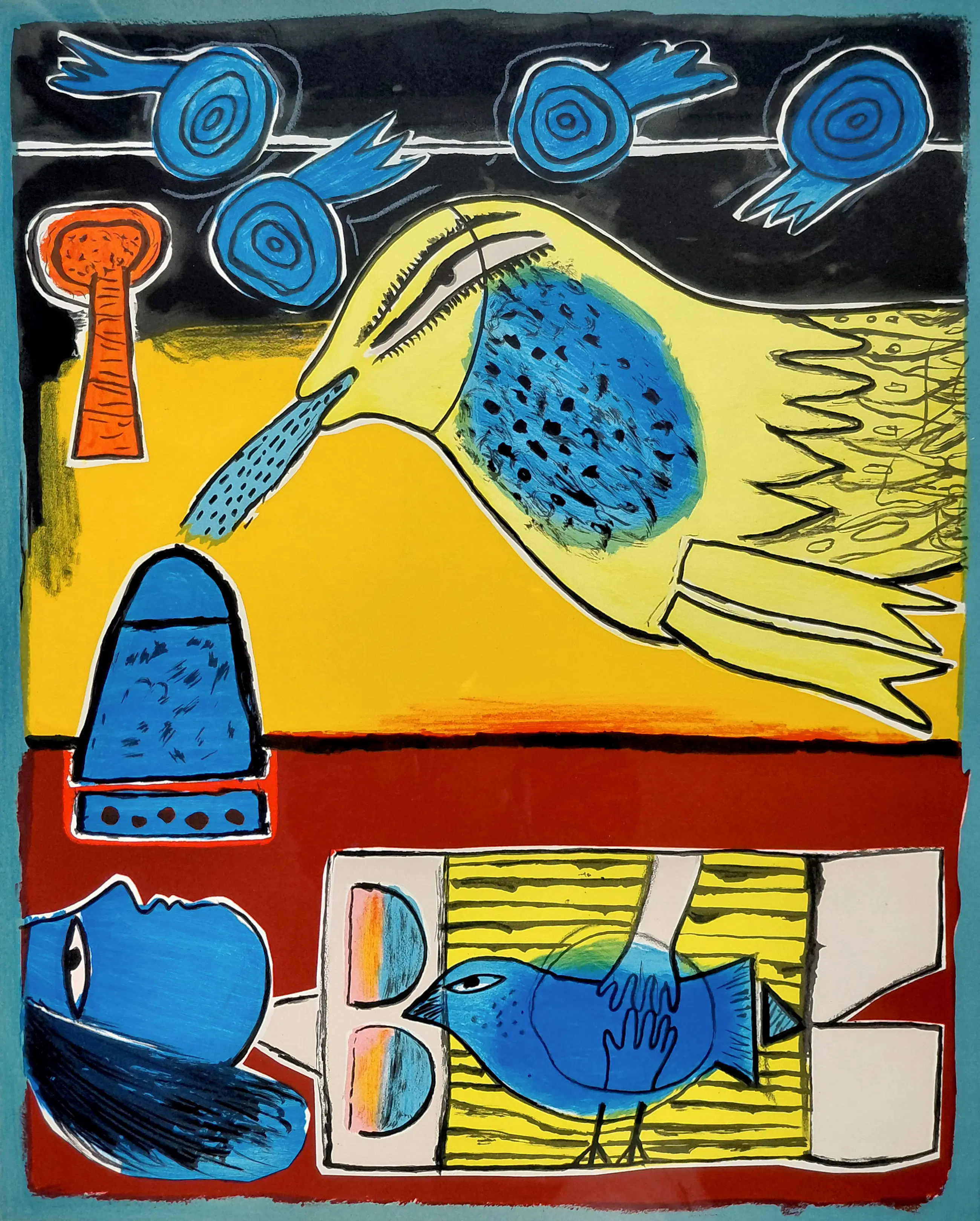 Corneille - La venue du grand oiseau, zeefdruk (mooi ingelijst)