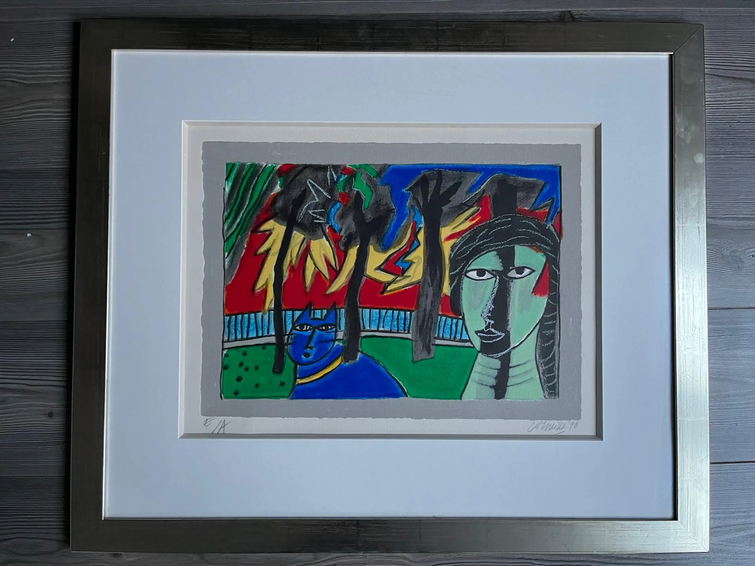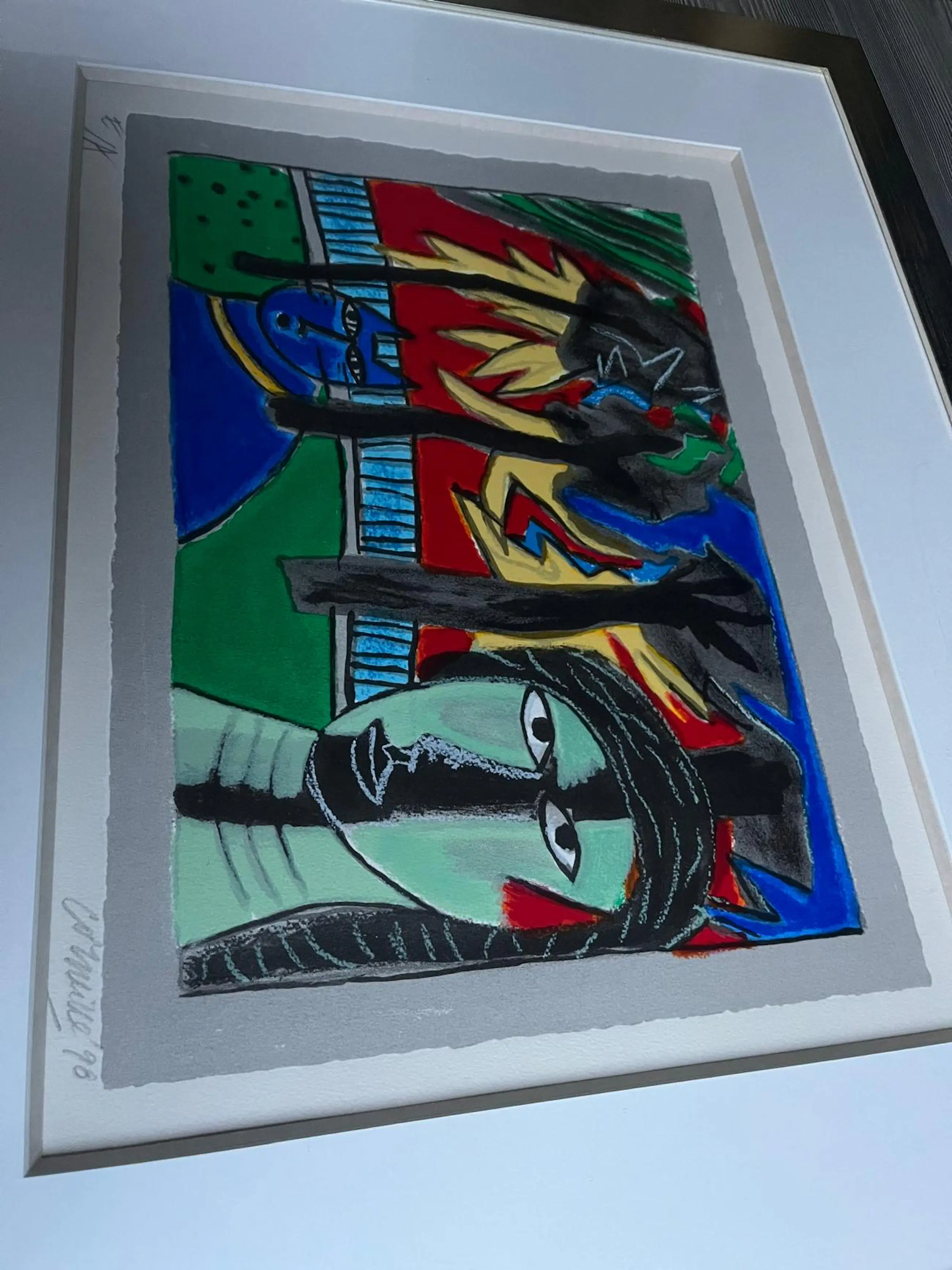 Het werk belichaamt de spontane geest en de kleurrijke intensiteit die zo kenmerkend zijn voor zijn stijl en vormt een levendige toevoeging aan iedere moderne kunstcollectie.