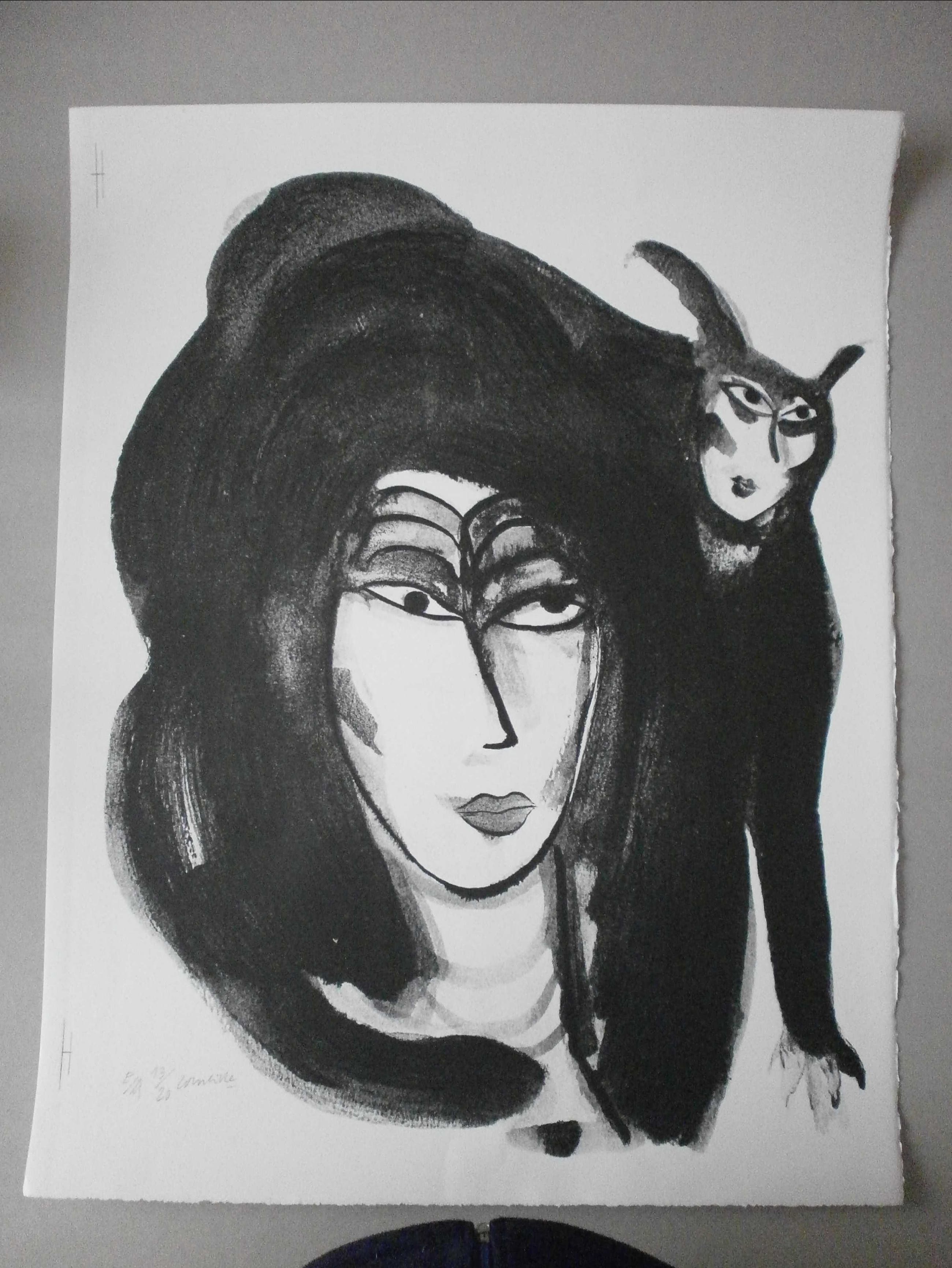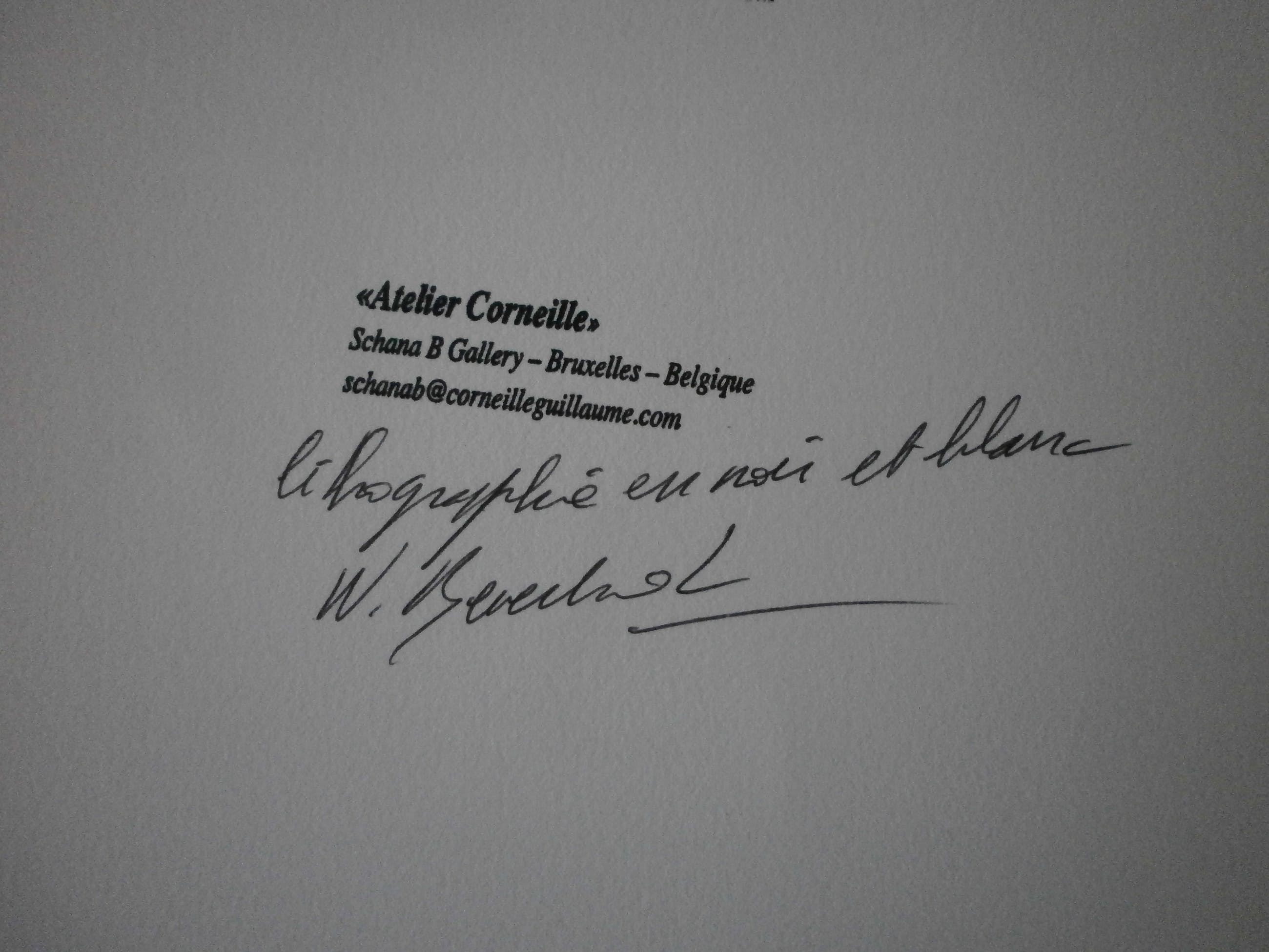 Zeer mooie grote zeefdruk van corneille uit 1998. In werkelijke nieuwstaat,nog nooit ingelijst geweest. Oplagenummer:E/A 13/20 [ Epruve d 'Artist.' Op de achterkant stempel van de corneille foundation.Handgeschreven:Lithographie noir et blanc. Voorzien van de handtekening in pen van Mevrouw van Beverloo Uiteraard gesigneerd en genummerd in potlood door Corneille. Nog nooit ingelijst geweest.