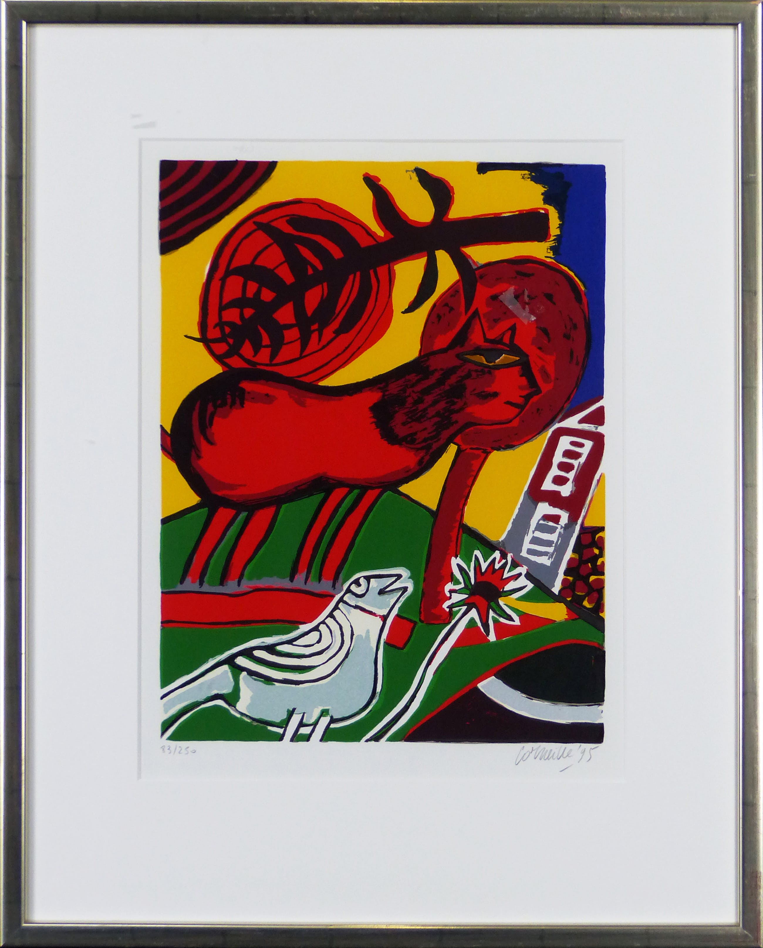 Prachtige Mooie litho uit 1995 Huit chats Afmeting blad +/- 60x50 incl lijst +/- 70 x 57 cm Gesigneerd rechtsonder en gedateerd 1995 links oplage nr 83/250 Ingelijst in mooie zilveren omlijsting onder zuurvrij passé partout Ready to hang