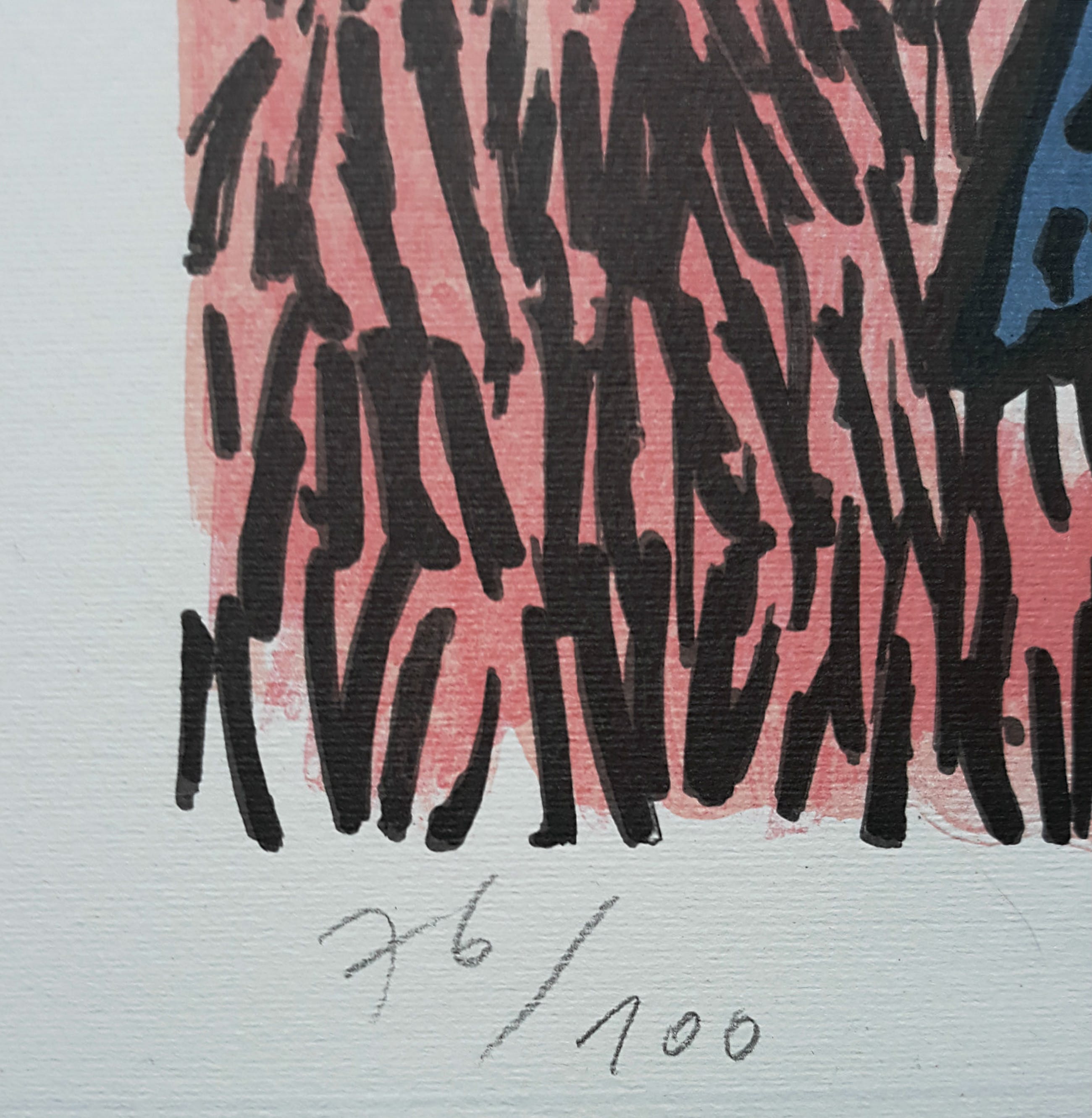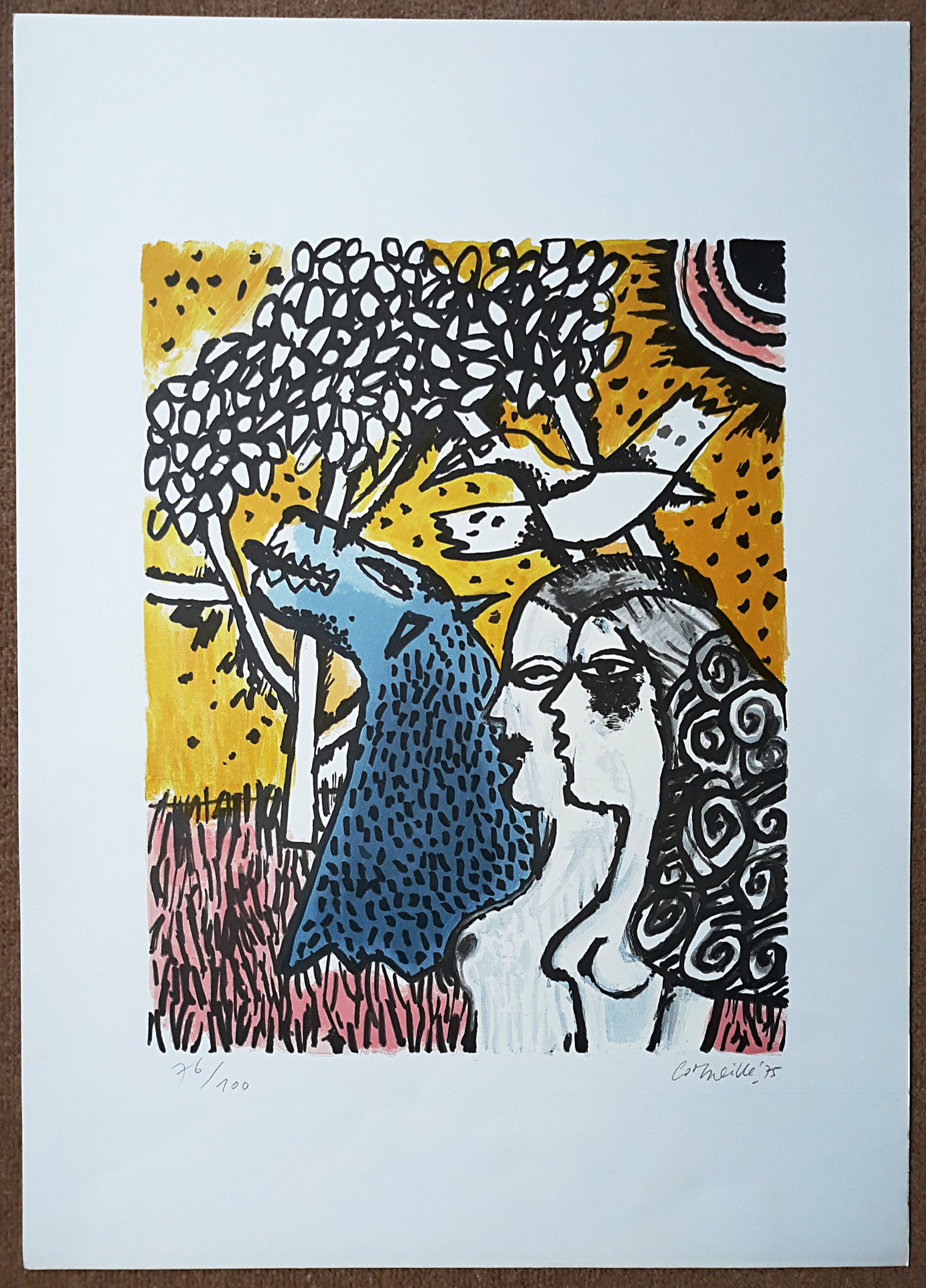 Karakteristiek werk van Corneille uit 1975. Zeefdruk op Fabriano papier, met potlood gesigneerd, gedateerd en genummerd (76/100). In uitstekende conditie. Literatuur: Donkersloot 423.