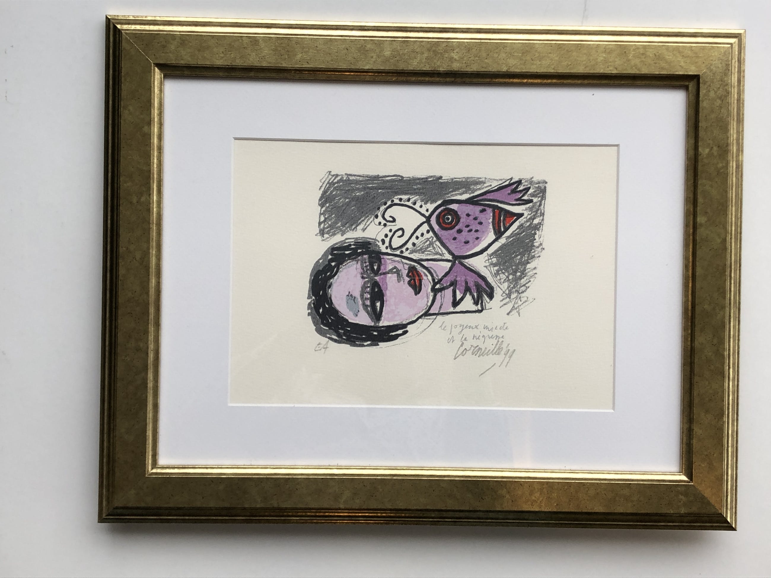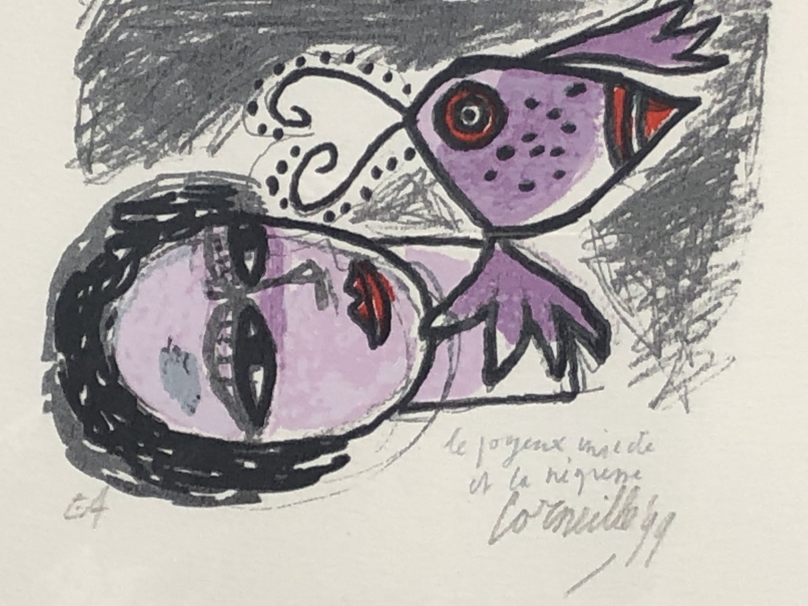 Mooie zeefdruk van CoBrA- kunstenaar Corneille. Het werk is in goede conditie.U kunt het werk vooraf komen bekijken in de Schatkamer van galerie Rotor in Gorcum, na aankoop afhalen of per aangetekende post toegestuurd krijgen. Het werk heeft een eenvoudig lijstje.De foto is door het venster van de lijst heen genomen.