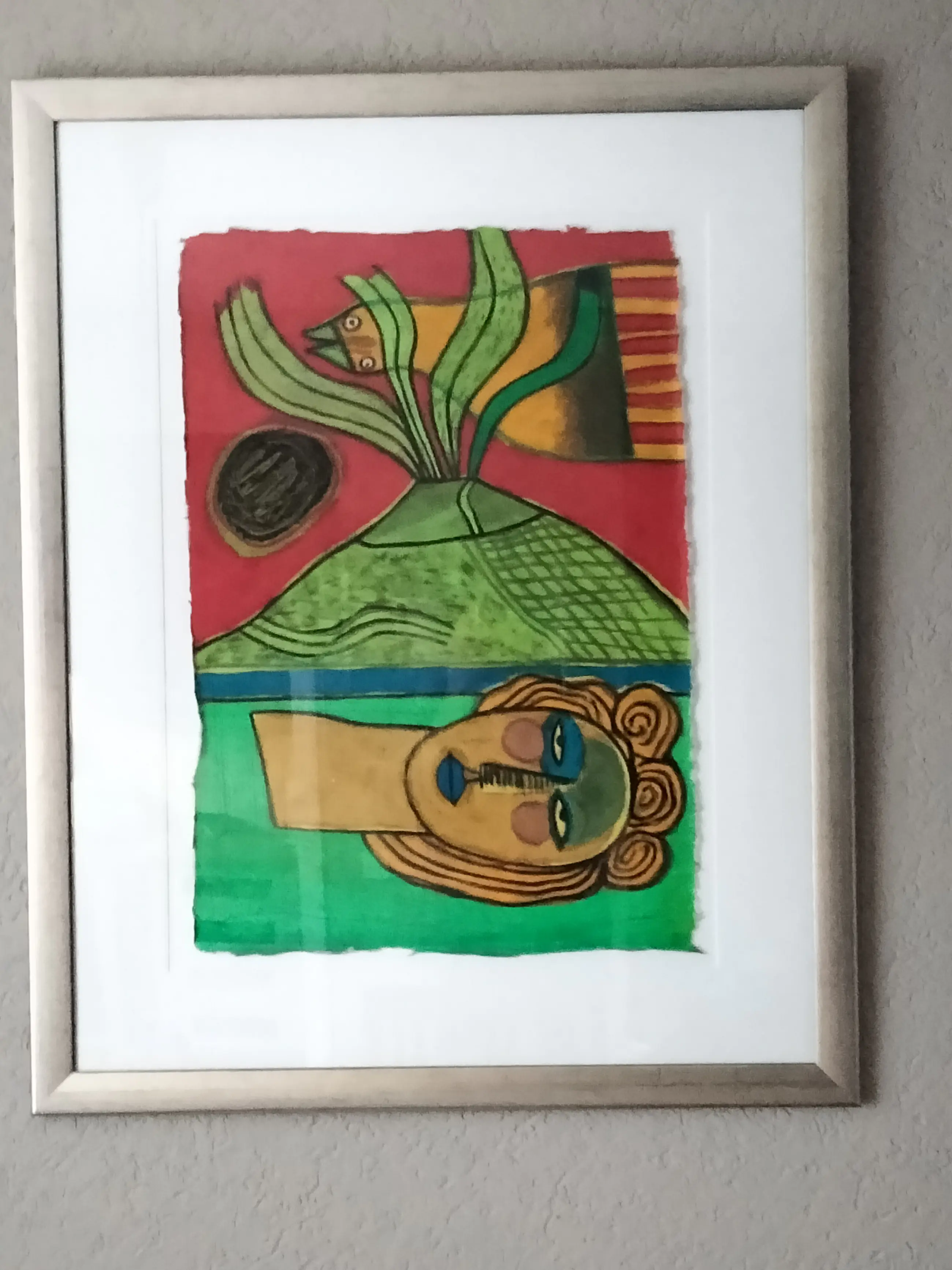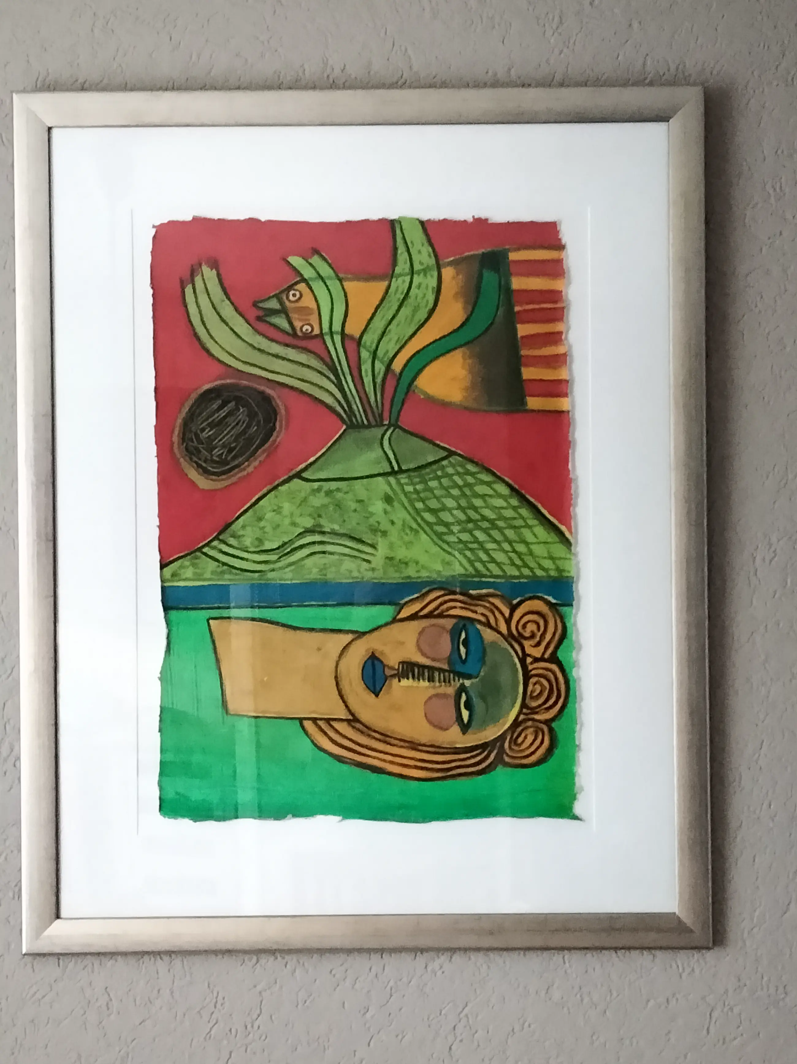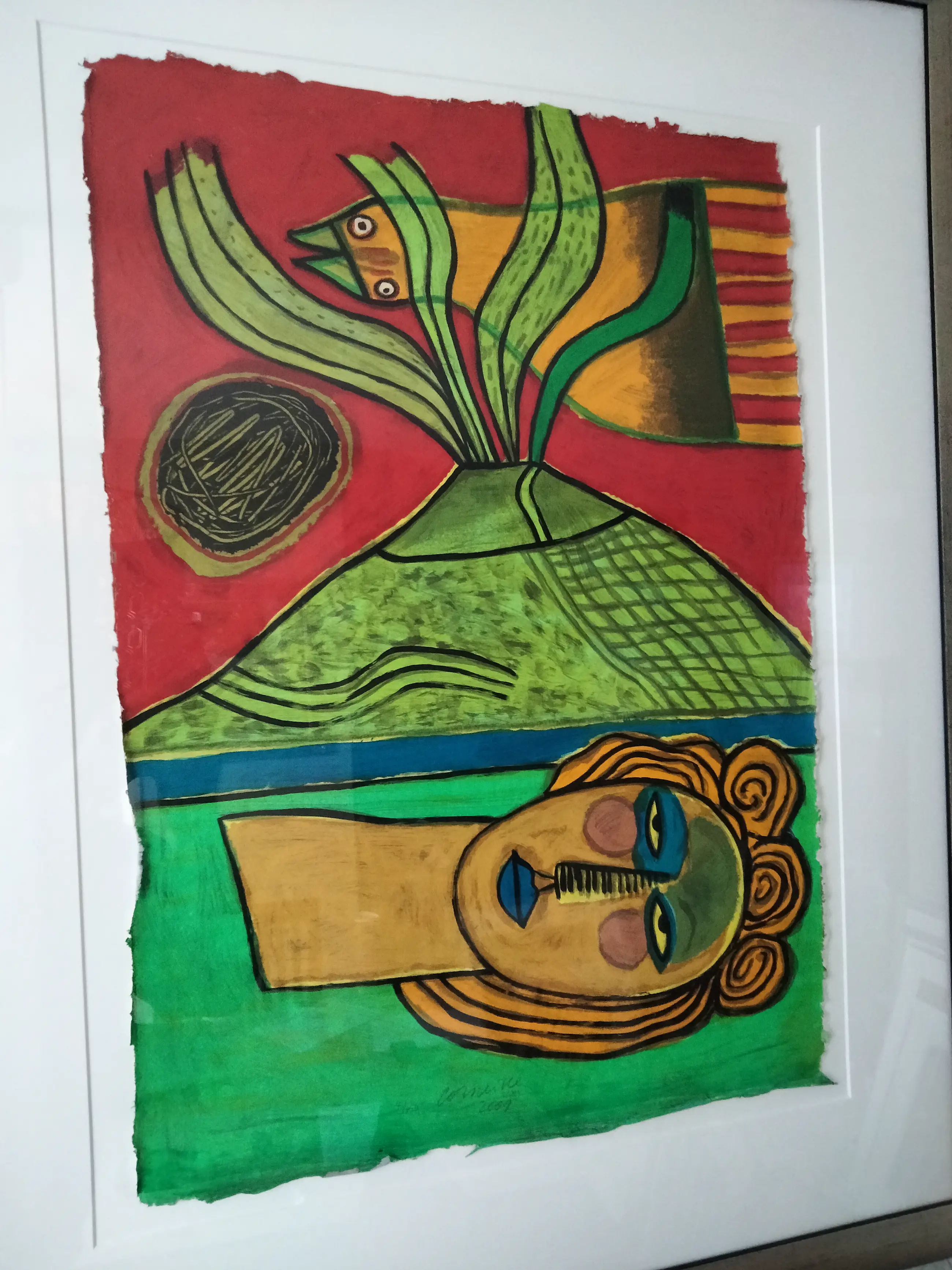 Zeer mooie kleurrijke zeefdruk van corneille op dun papier getiteld:Le Joyeux Vulcan uit 2001 De druk omvat het gehele papier tot aan de rafelige randen. Super mooi en strak ingelijst,ophangklaar. apart en uniek werk. Oplage nummer :35/150 Uiteraard potlood gesigneerd gedateerd en genummerd door corneille.