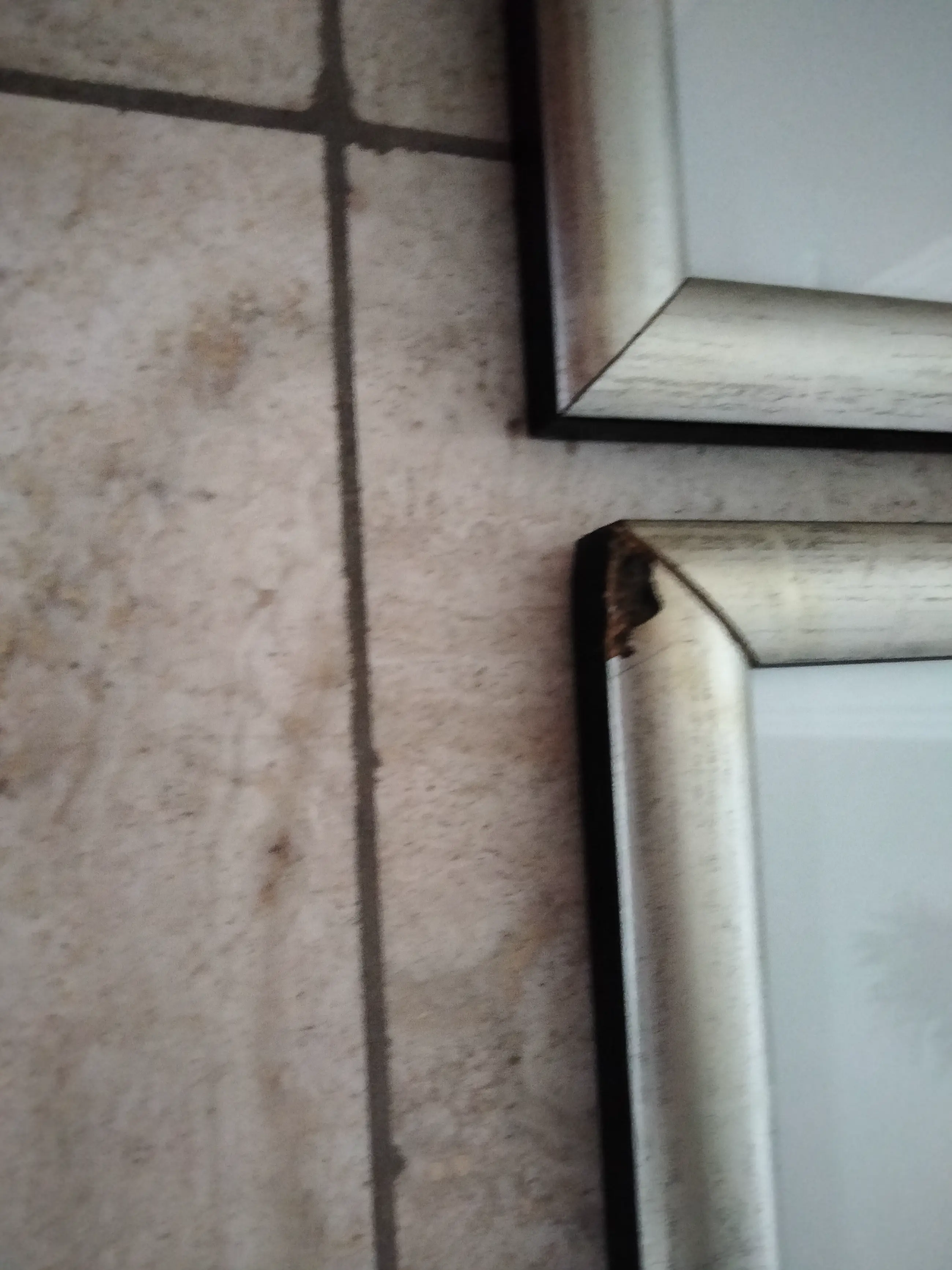 Een lijst is licht beschadigd,en heeft een zeer klein vocht plekje in het passe partout (nauwelijks zichtbaar) de werken zijn ophangklaar.