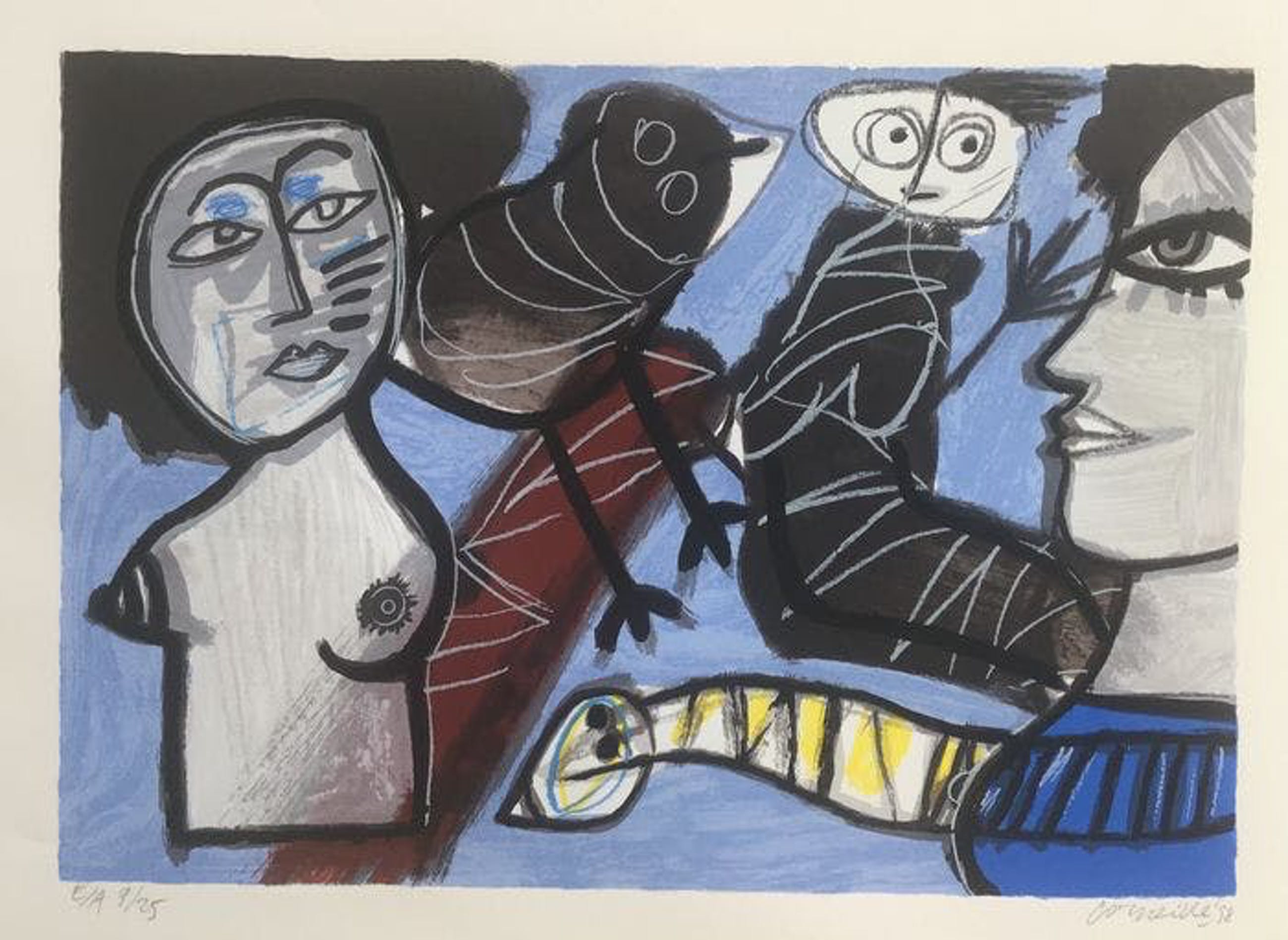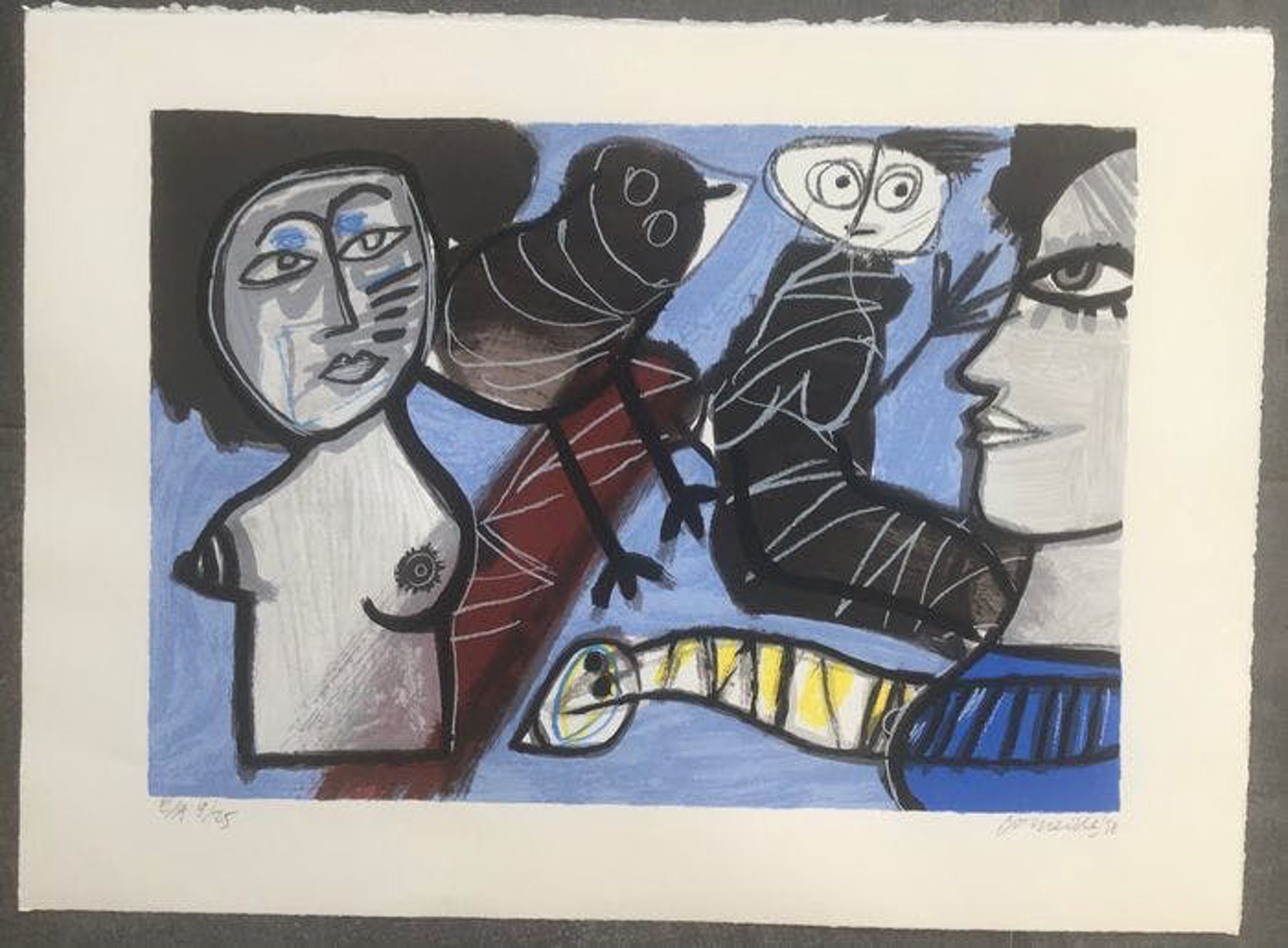 Guillaume Cornelis van Beverloo a.k.a Corneille (1922-2010) - ‘Le serpent jaune’ Chromolithografie Met potlood genummerd: E/A 10/25. Gesigneerd en gedateerd 1998 Afmeting: 46 x 63 cm Lijst afm: 70 x 50 cm
