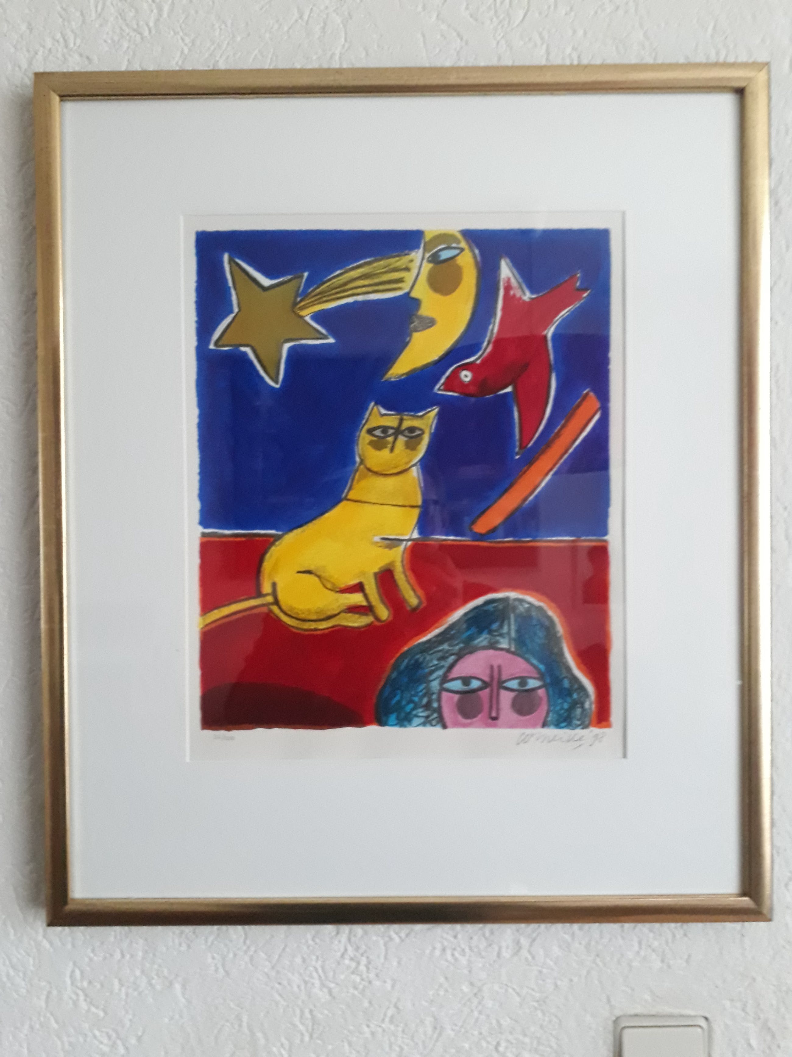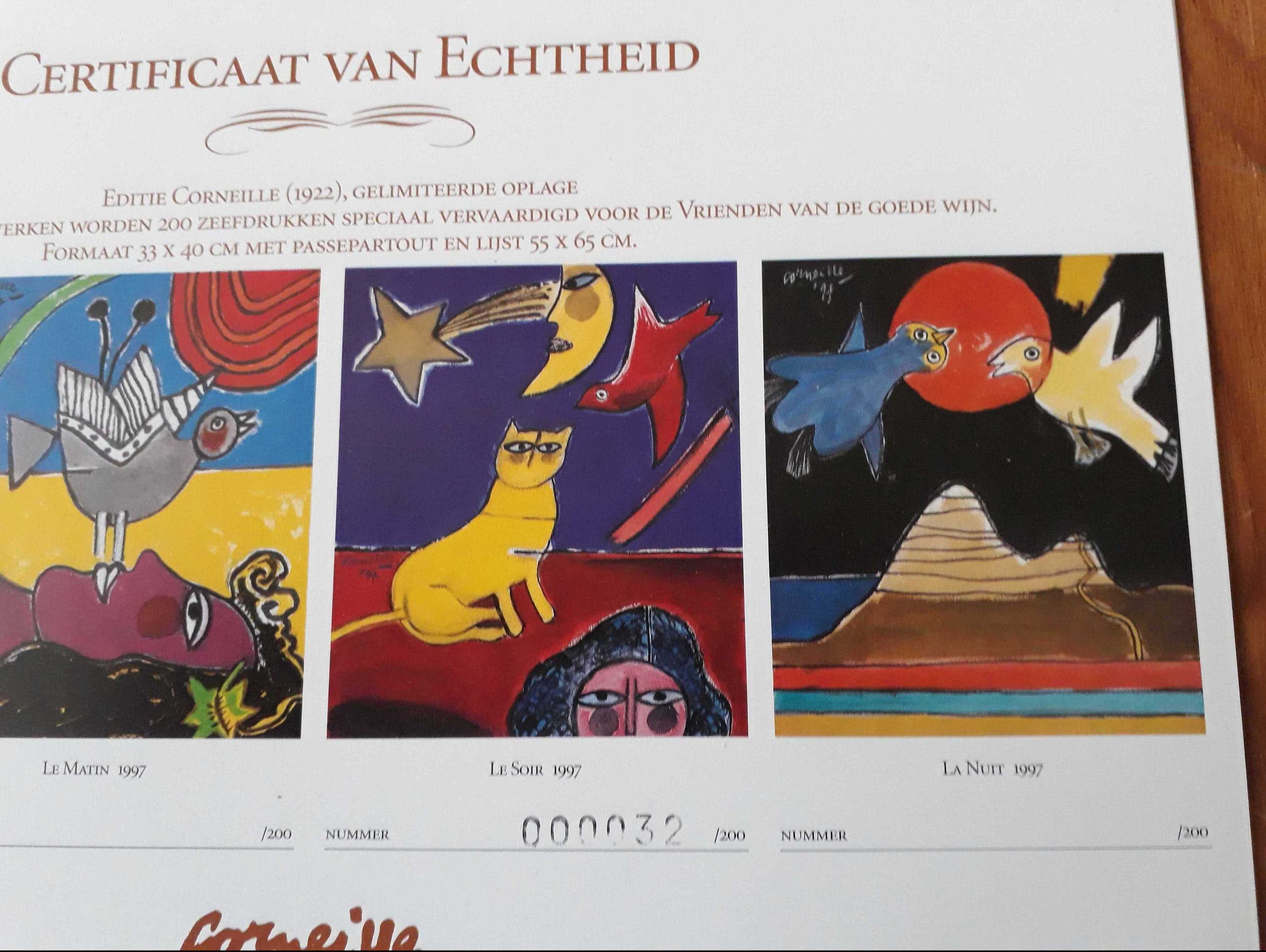 Zeer mooie zeefdruk in eigentijdse mooie lijst."le Soir" Speciale uitgave vervaardigd voor de vrienden van de goede wijn, oplage slecht 200 Compleet in nieuwstaat ,ophang klaar. 1998 Oplage nummer: 32/200 Komt met origineel echtheids certificaat Uiteraard potlood gesigneerd gedateerd en genummerd.