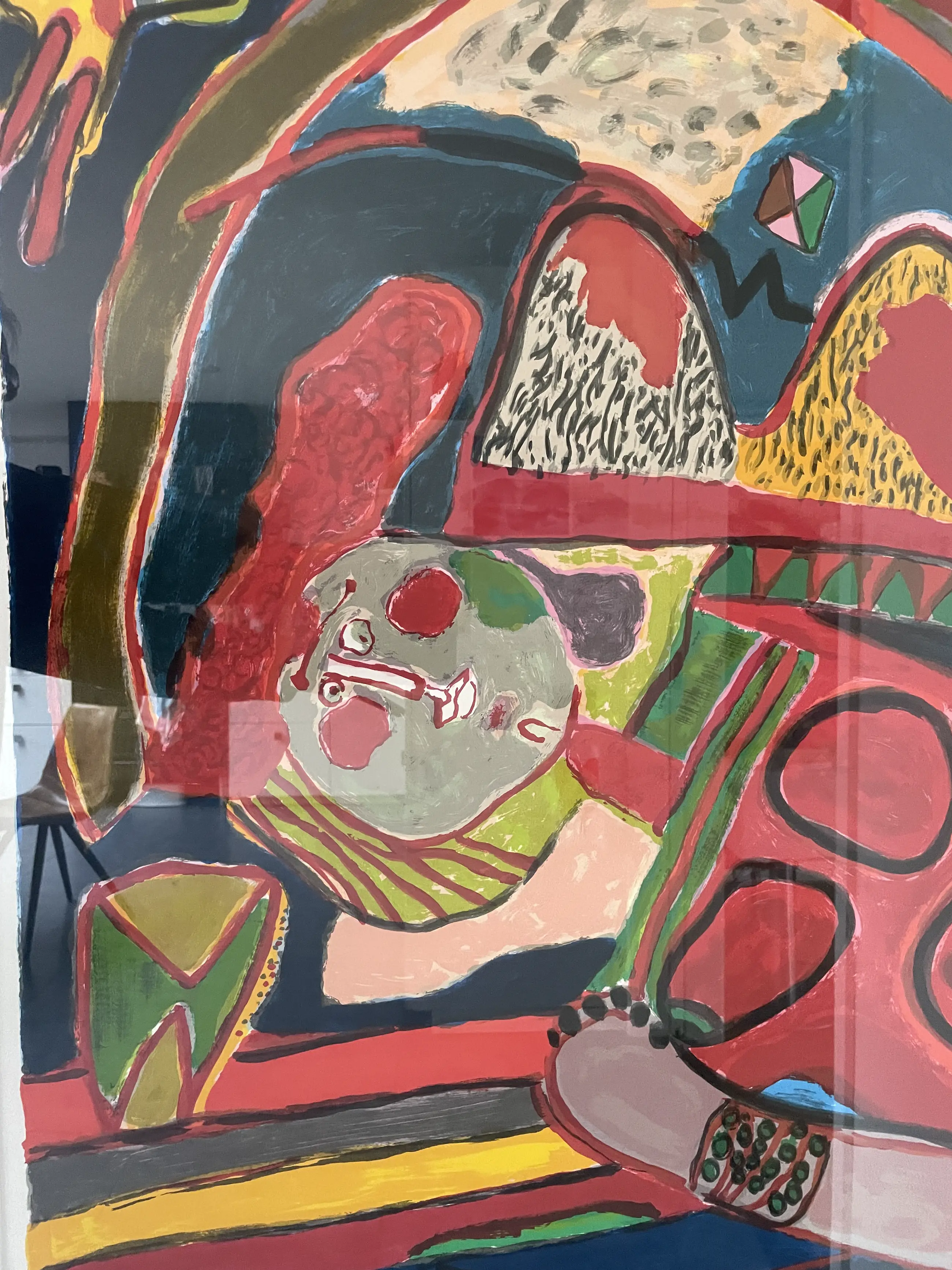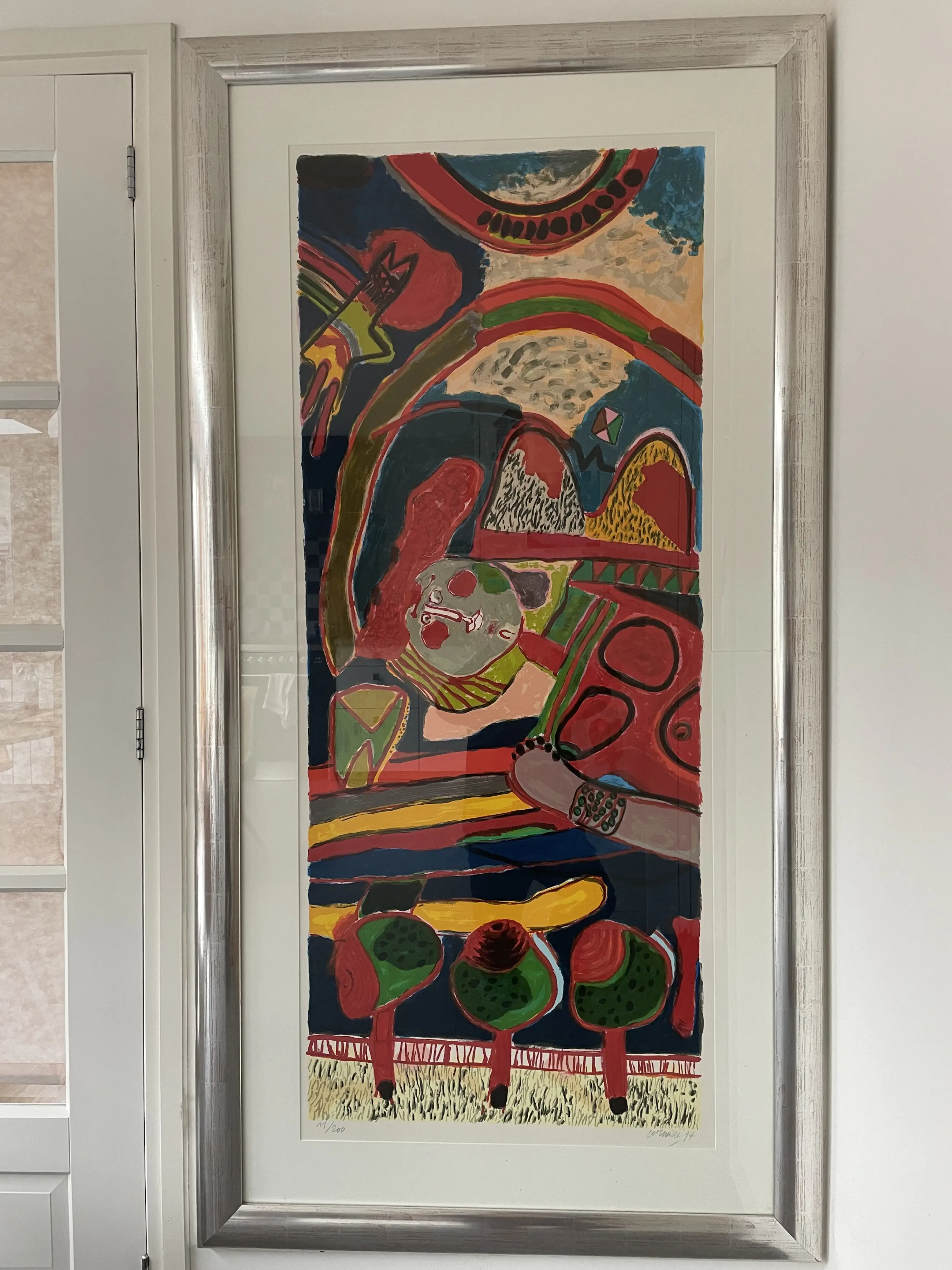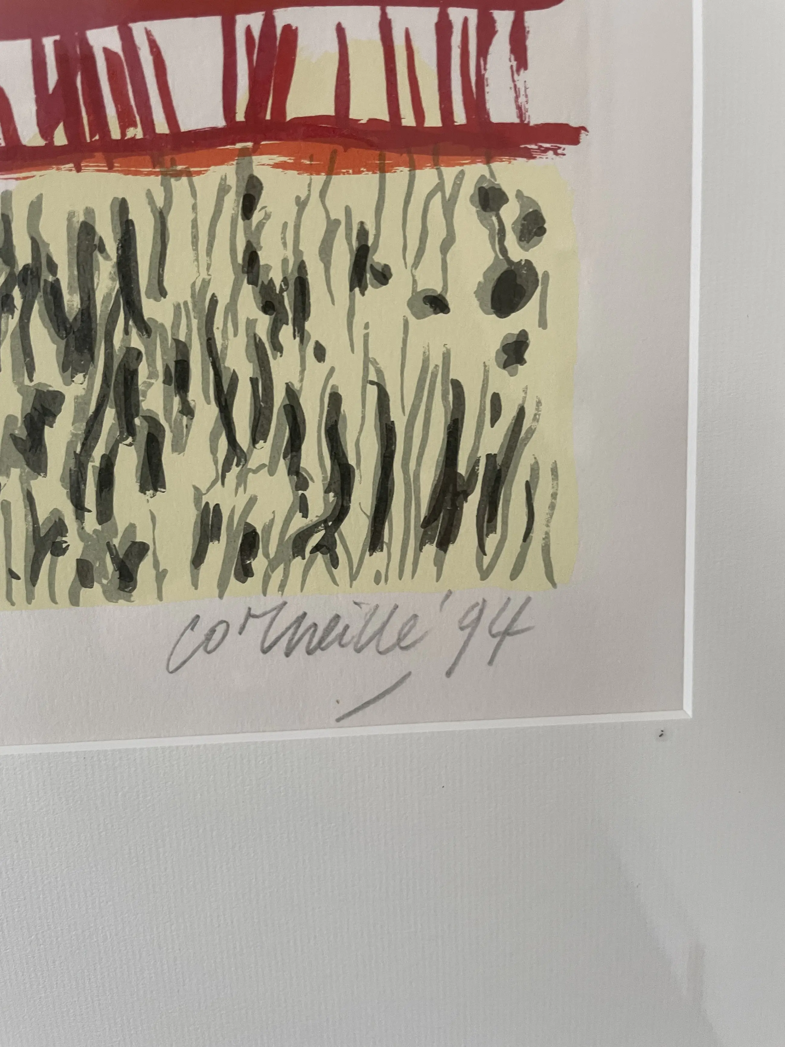 Grote lithografie "Les deux arcs", zeefdruk 11/200 van Corneille, gemaakt in 1994. Inclusief originele lijst en passepartout. Inclusief certificaat van echtheid.