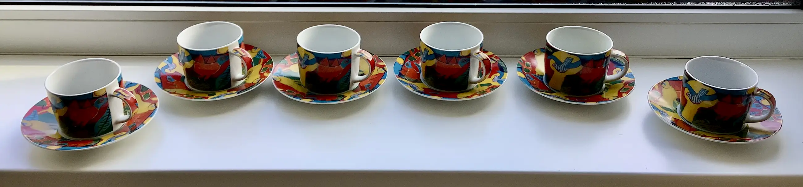 6 x kop en schotel. Kleurrijk en van zware kwaliteit.