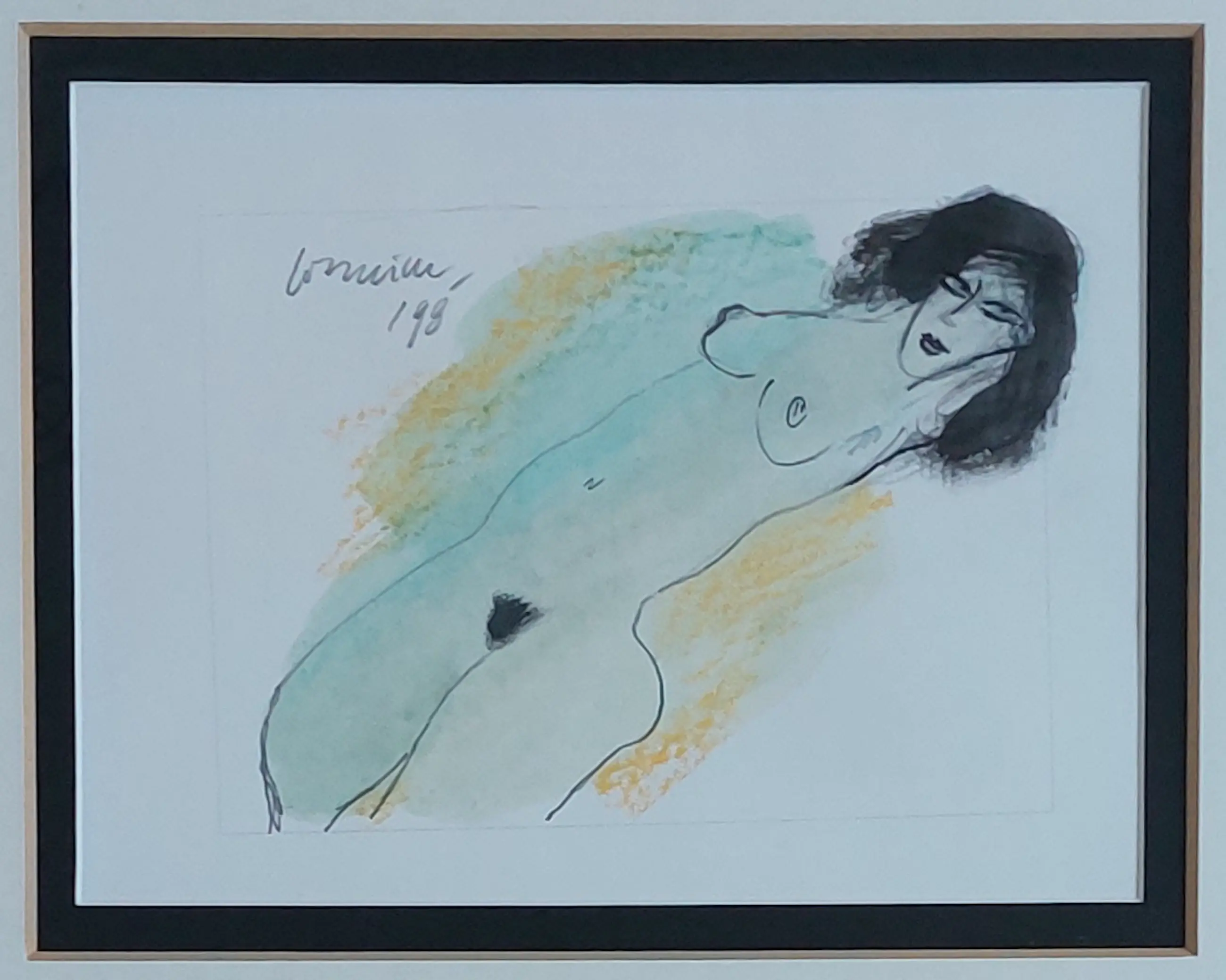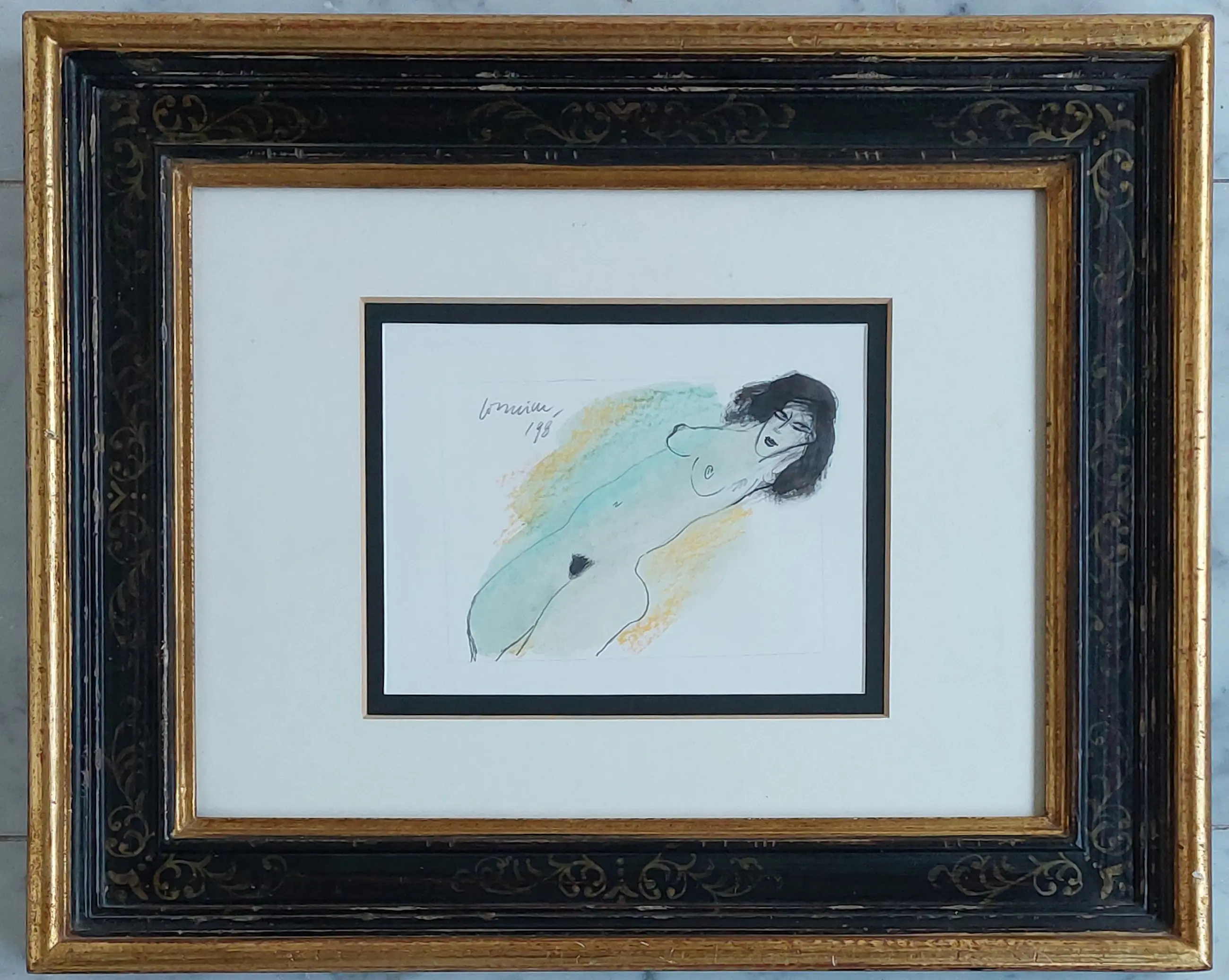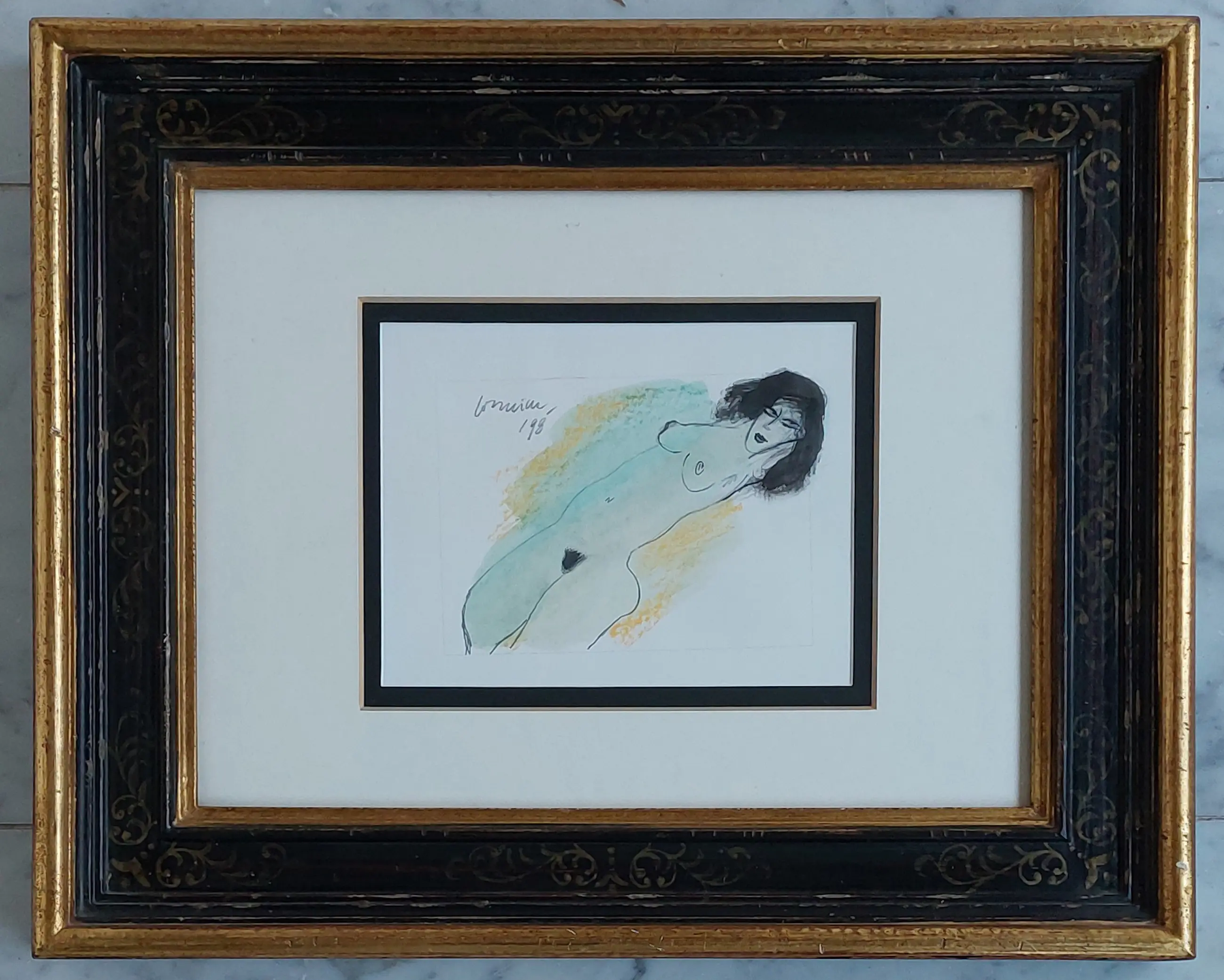 Gouache en inkt op papier Gesigneerd linksboven en 1998 Prachtige omlijsting Afmetingen zijn bij benadering