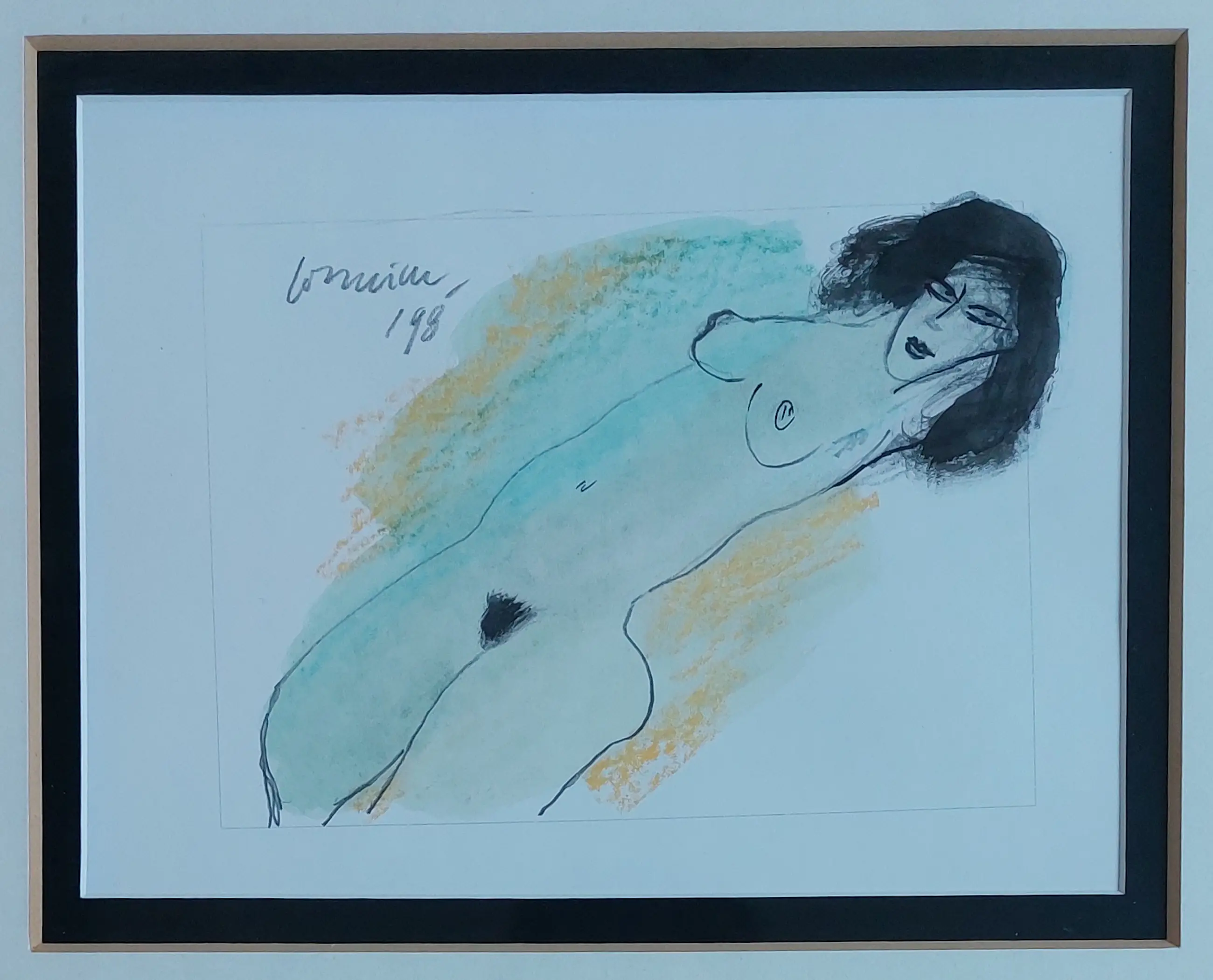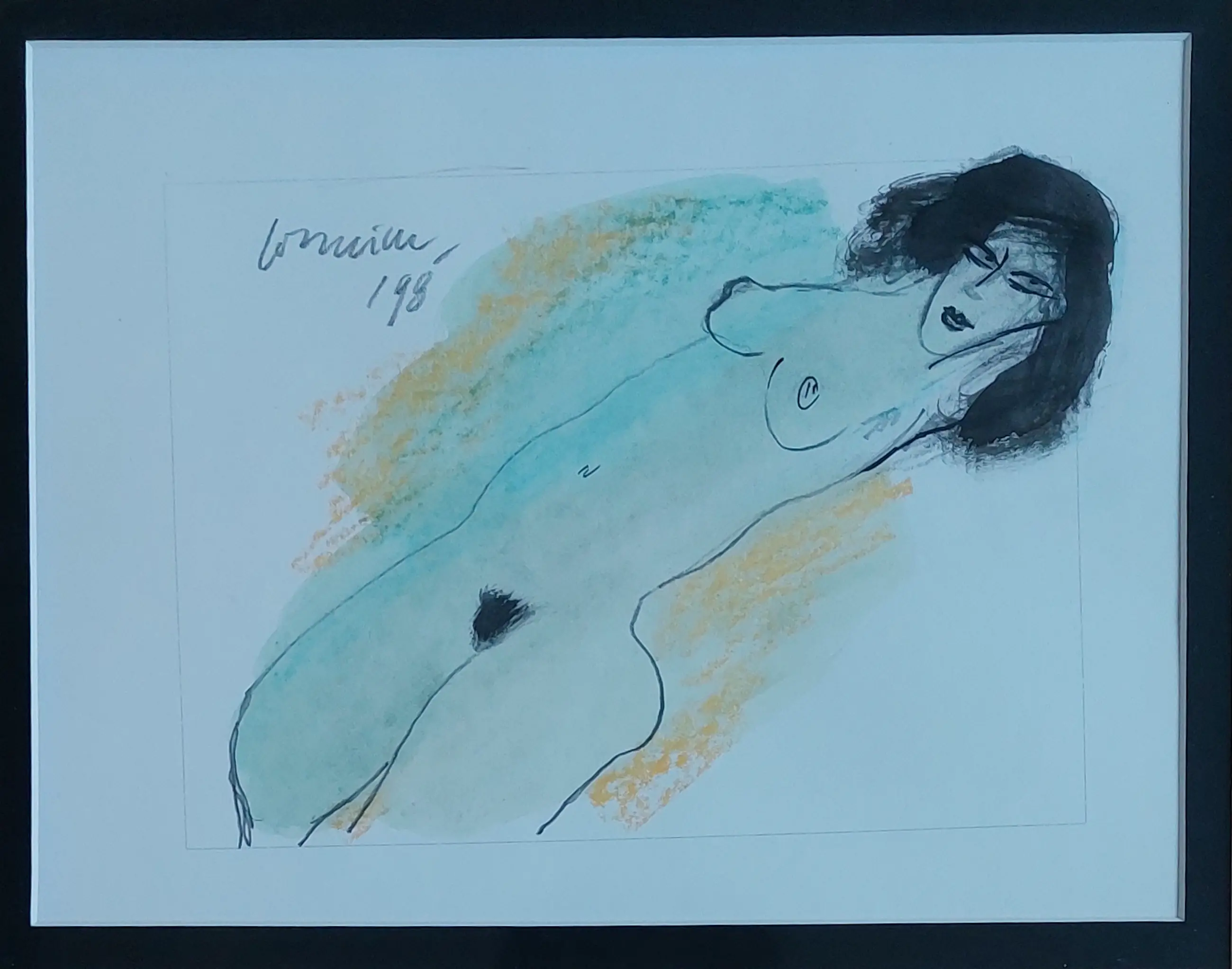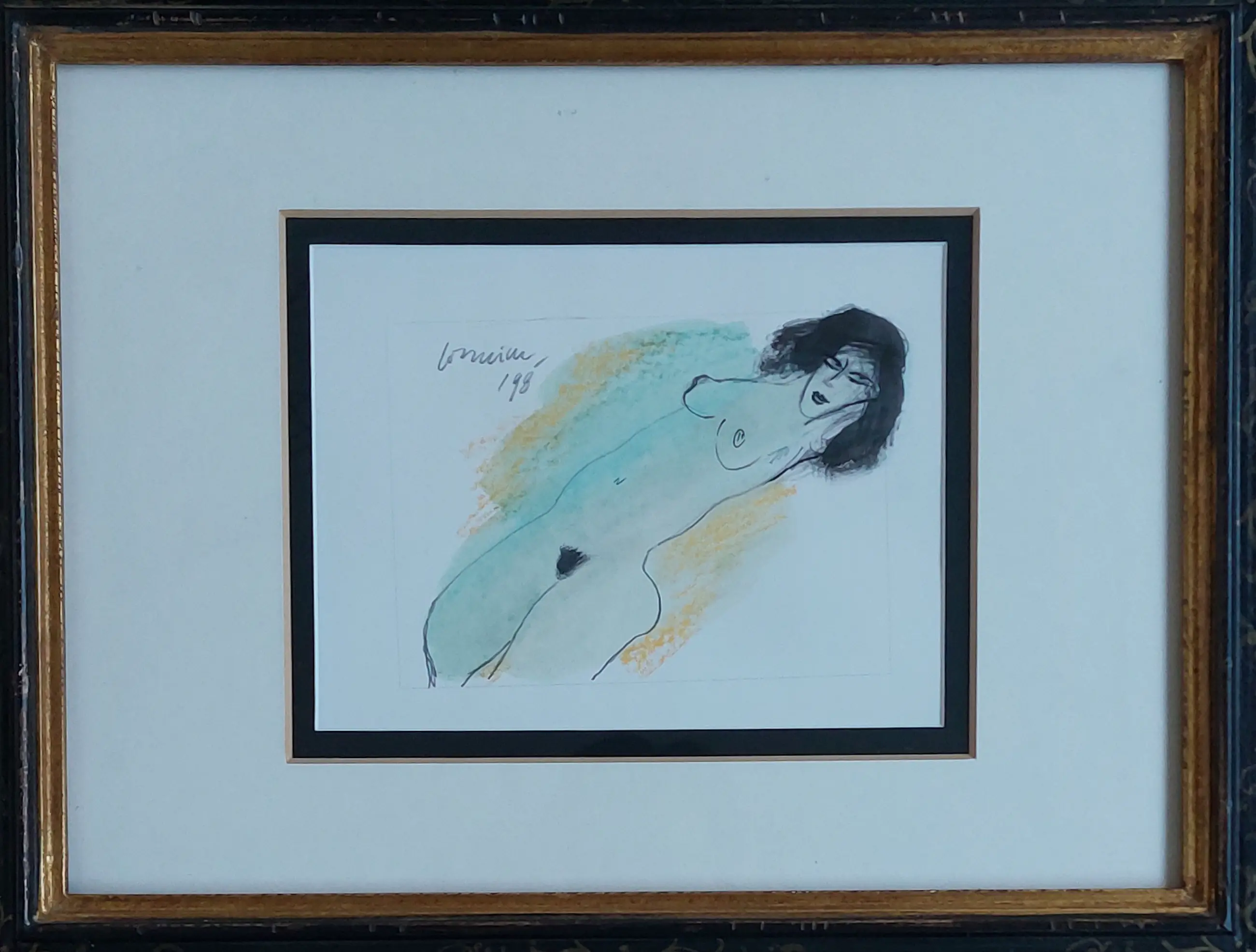 Gouache en inkt op papier Gesigneerd linksboven en 1998 Prachtige omlijsting Afmetingen zijn bij benadering