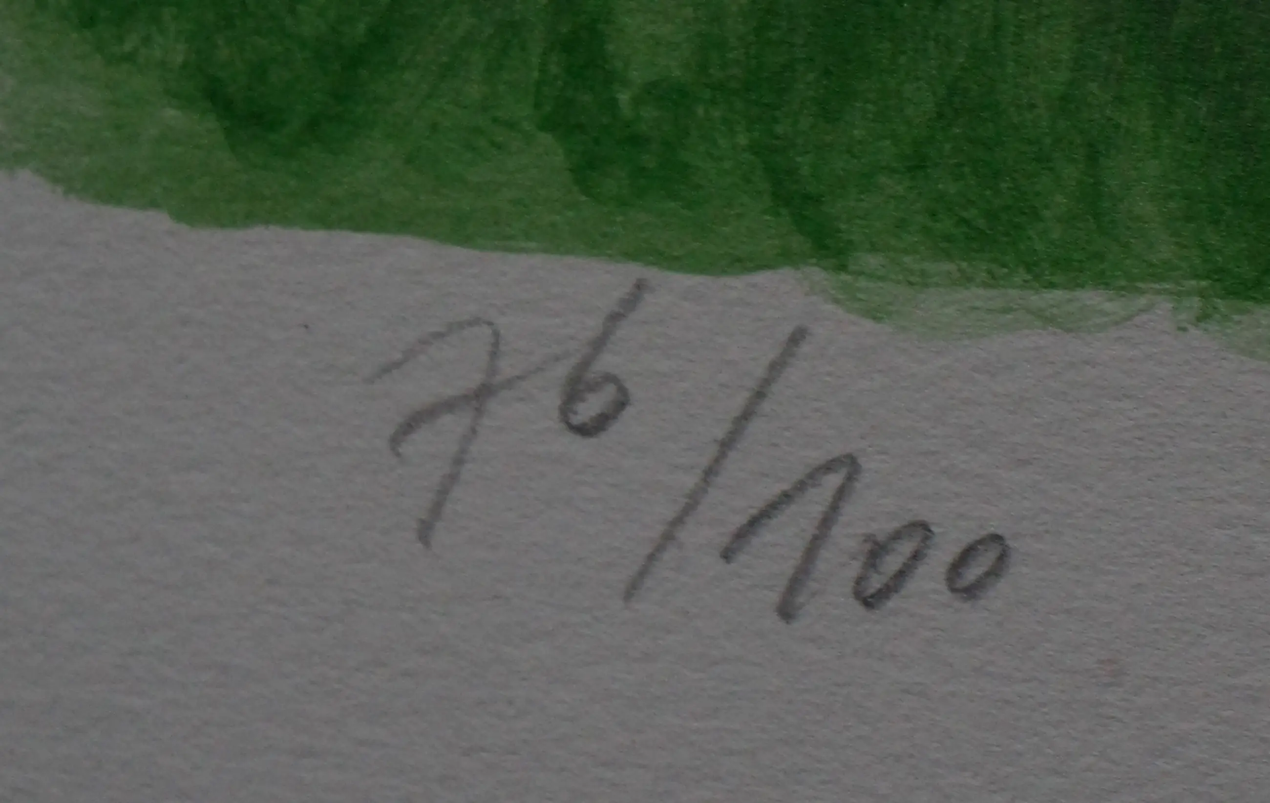 Passe-partout/lijsten: Beschadigingen aan een lijst worden niet beschreven. Indien het werk achter glas is ingelijst en het glas gebroken is, zal dit wel vermeld worden. Passe-partouts worden op geen enkele manier gegarandeerd en ook niet altijd meegezonden.