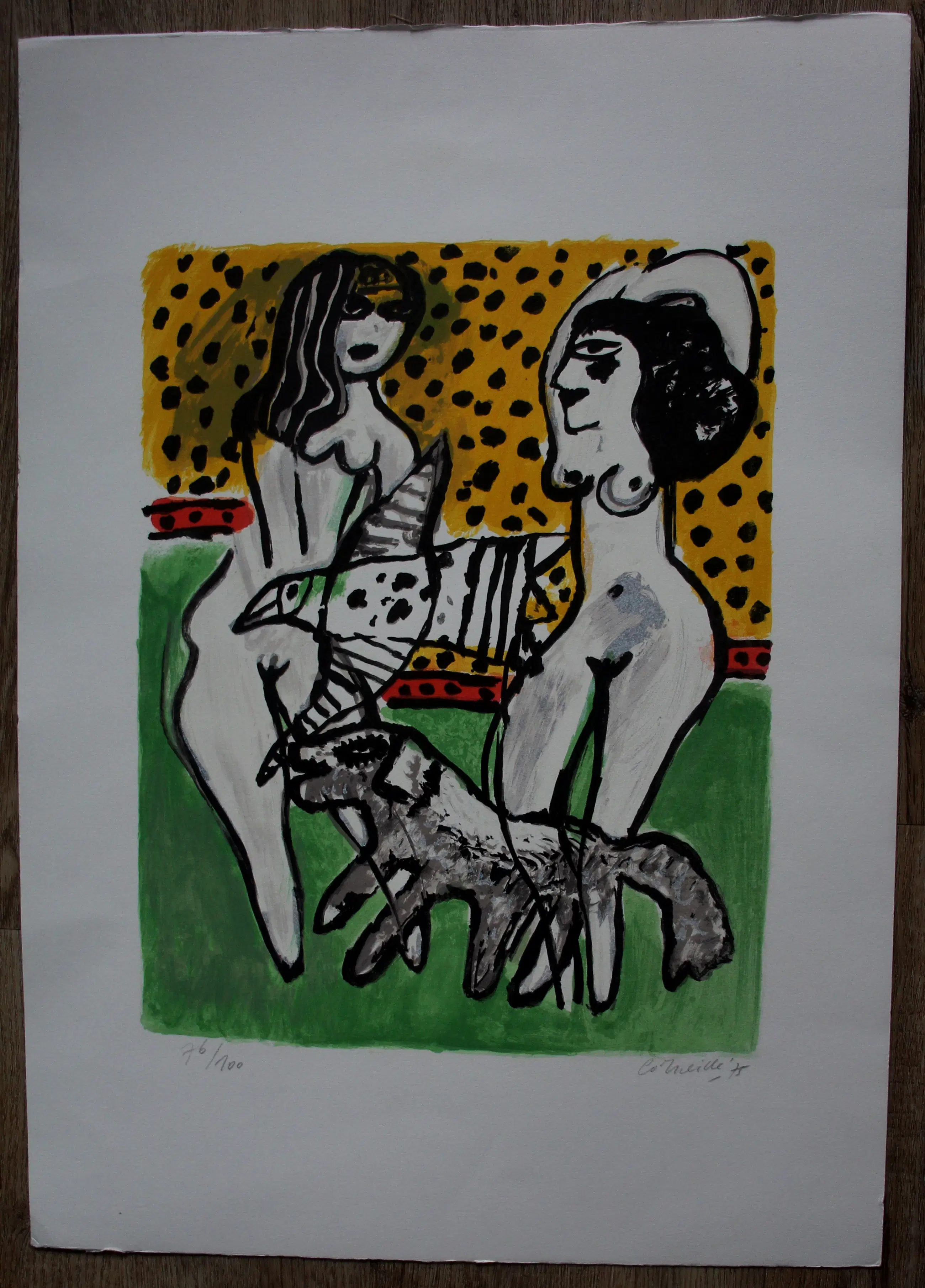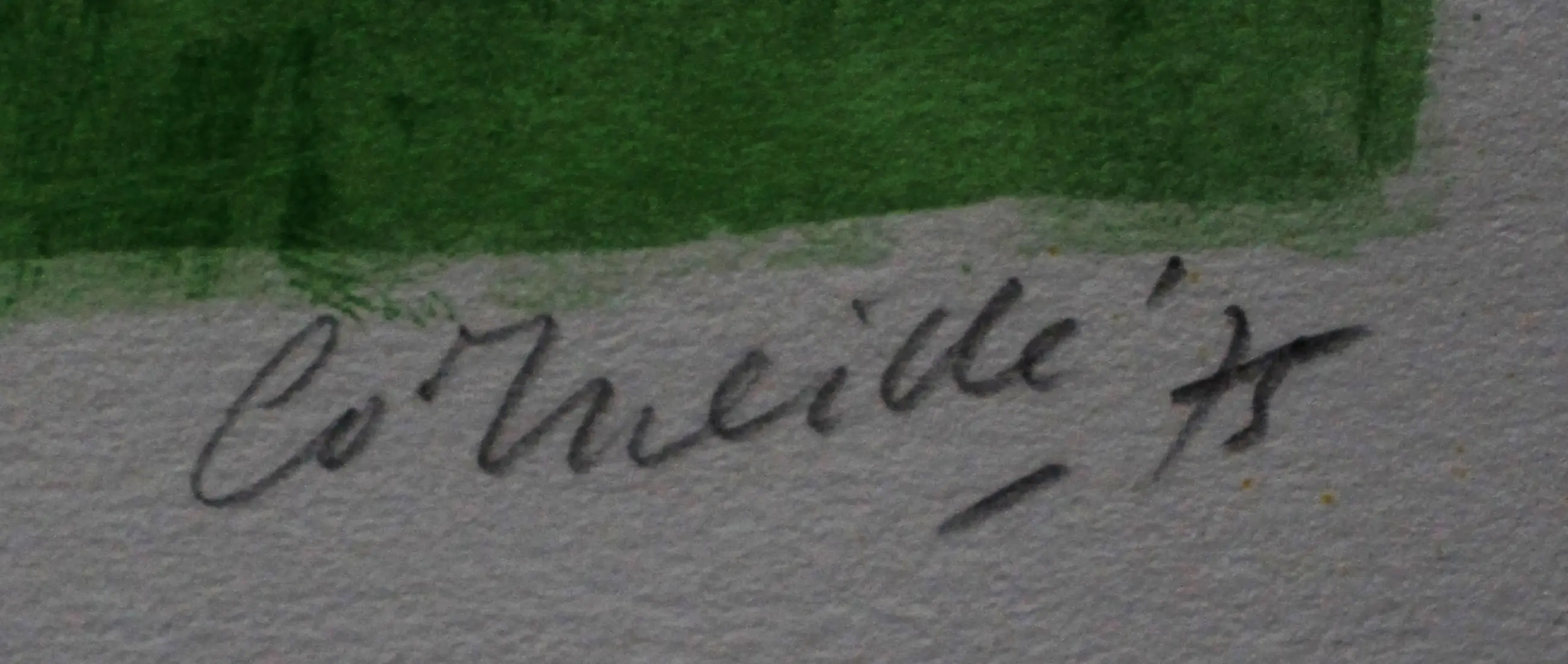 Litho van Corneille uit 1975. Oplage: 76/100. Het werk is rechtsonder, met potlood, gesigneerd en gedateerd door de kunstenaar. Afmetingen blad: H70 x b49.5cm. Afmetingen voorstelling: H45 x b36cm. De authenticiteit van dit werk wordt volledig gegarandeerd. Een certificaat van echtheid kan, op aanvraag, worden gemaild.
