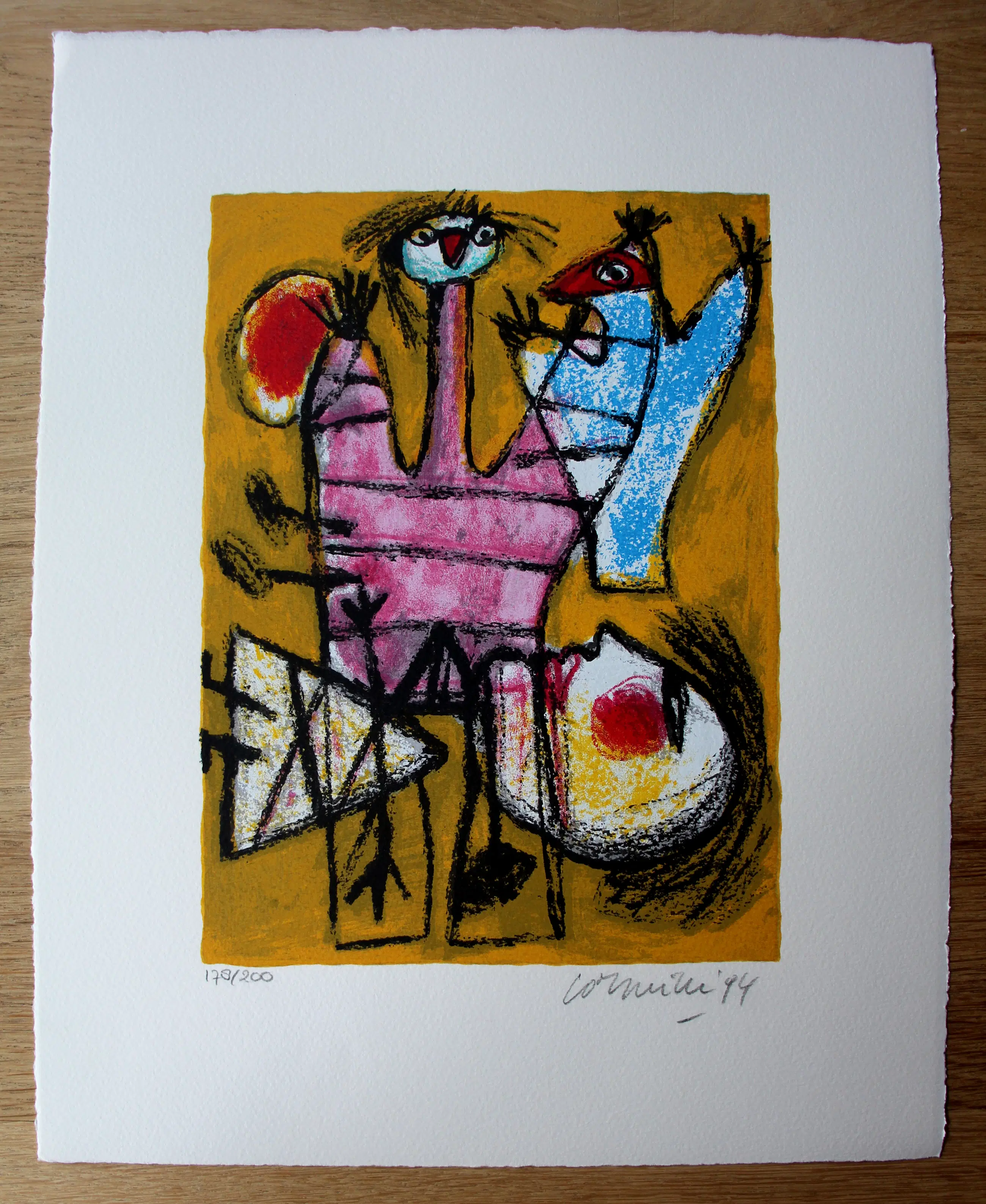 Litho van Corneille. Titel: onbekend. Jaar: 1994. Oplage:17 8/200. Afmetingen blad: H39,5 x b31.5cm. Afmetingen voorstelling: H26,5 x b19,5 cm. Het werk is, rechts onderaan, gesigneerd en gedateerd door de kunstenaar. De authenticiteit van het aangeboden werk wordt volledig gegarandeerd. Een certificaat van echtheid kan, op aanvraag, worden gemaild.